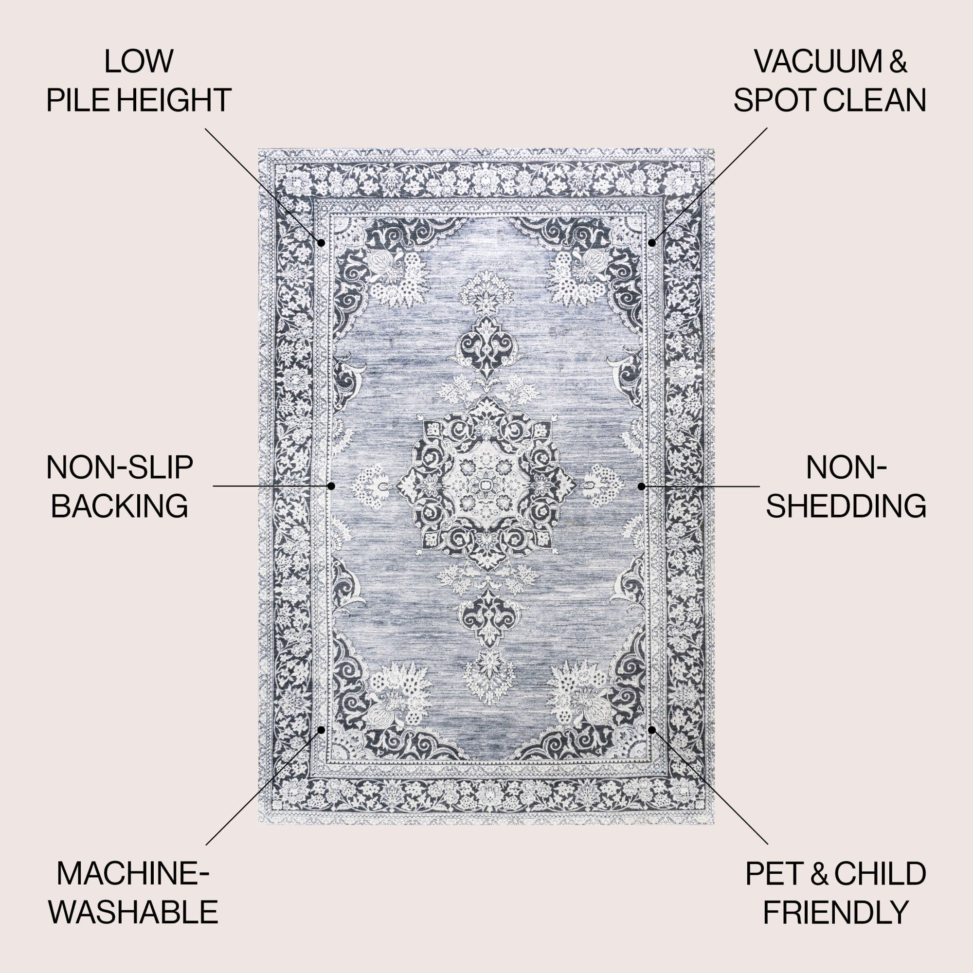 - Non slip cotton backing, use of rug pad is recommended for additional grip (sold separately)