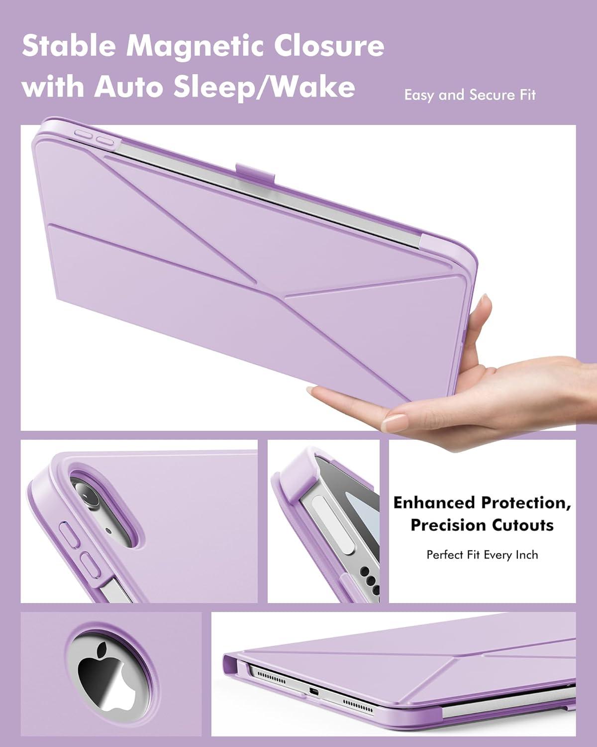 Case for iPad (A16) 11th Generation 11 Inch 2025, iPad 10th Generation 10.9 Inch 2022 – Slim Magnetic Origami Cover with Pencil Holder, Multi-Angle Stand, Auto Wake/Sleep (Lilac Purple)