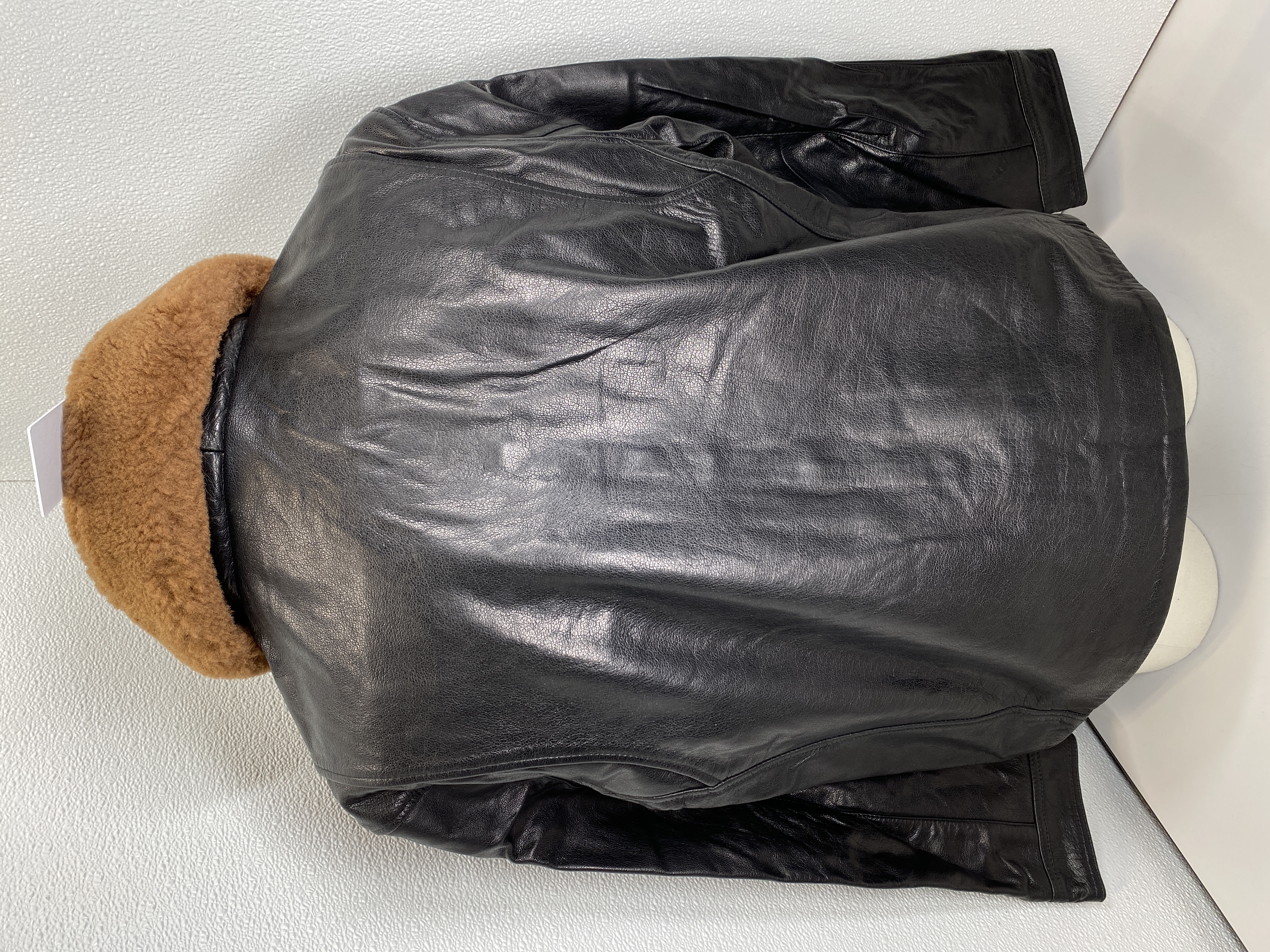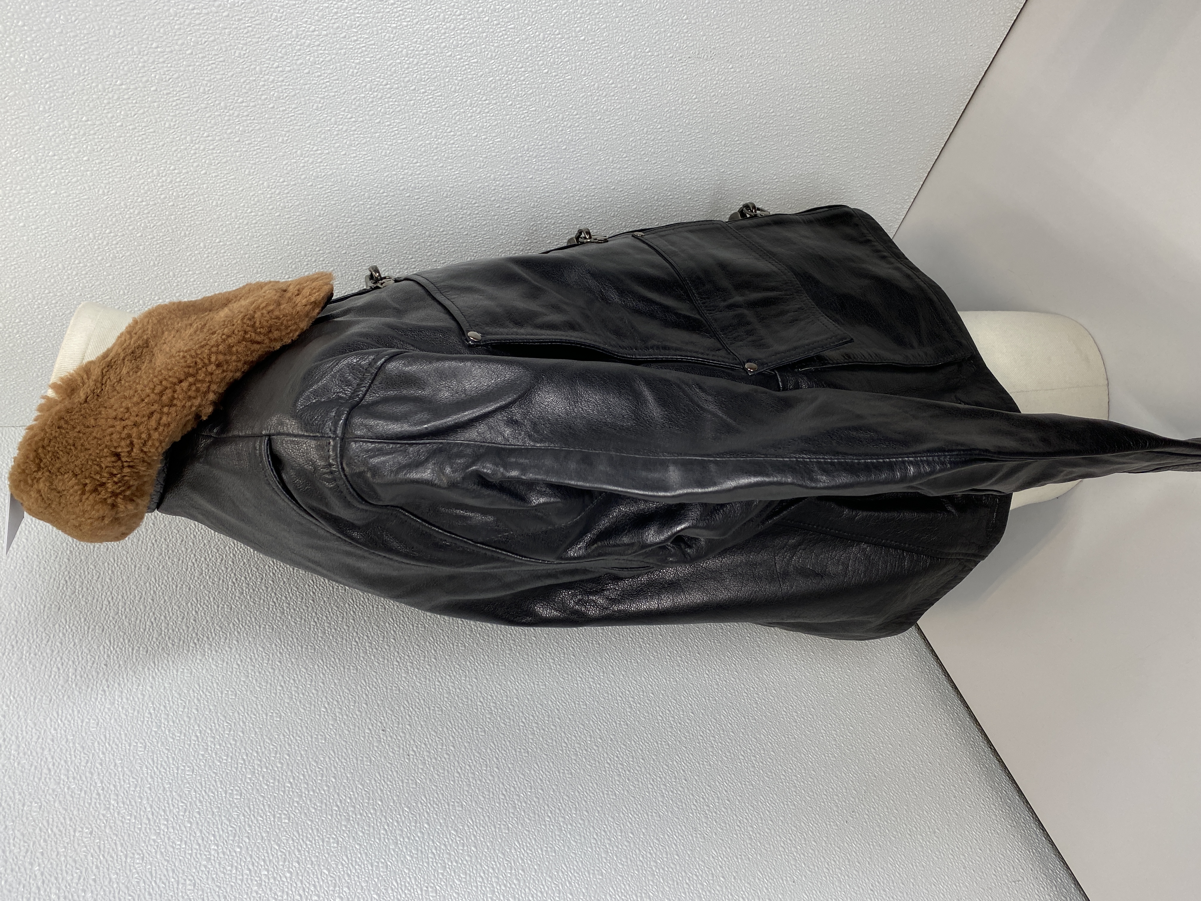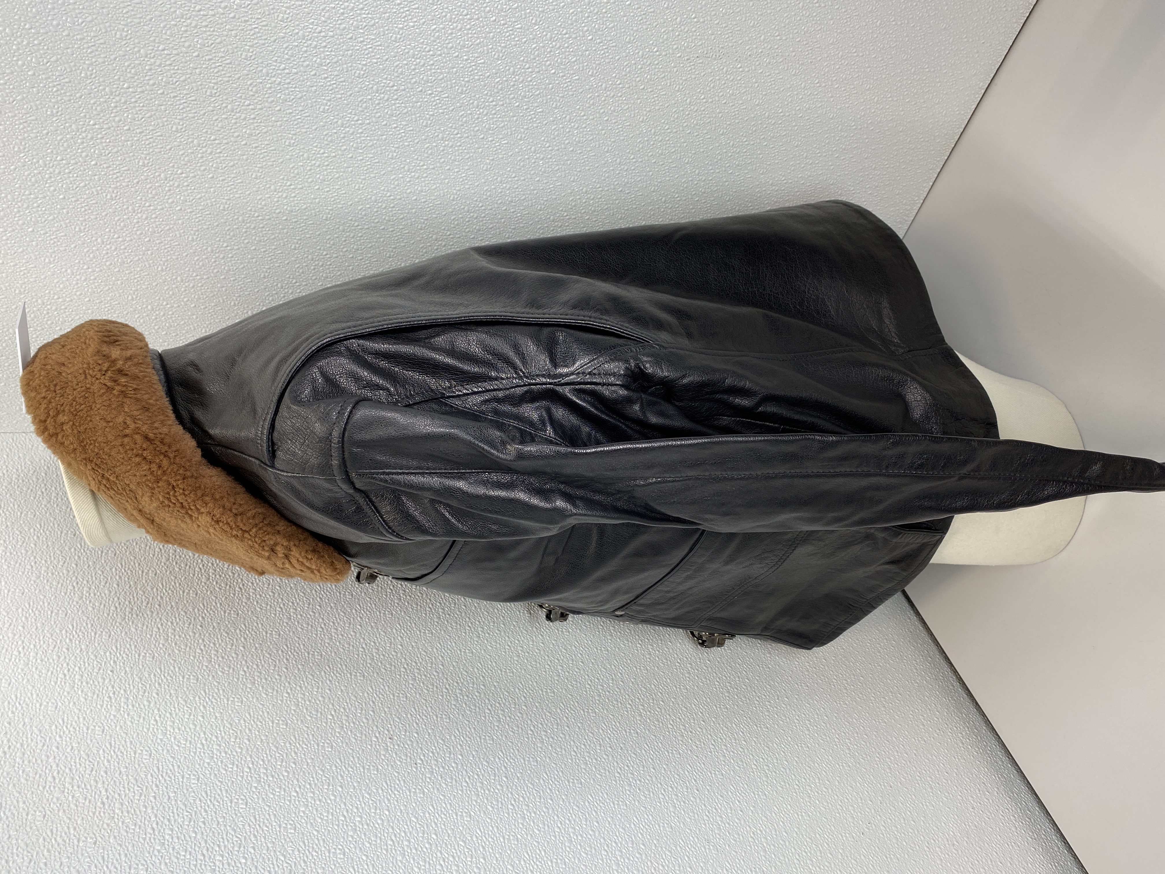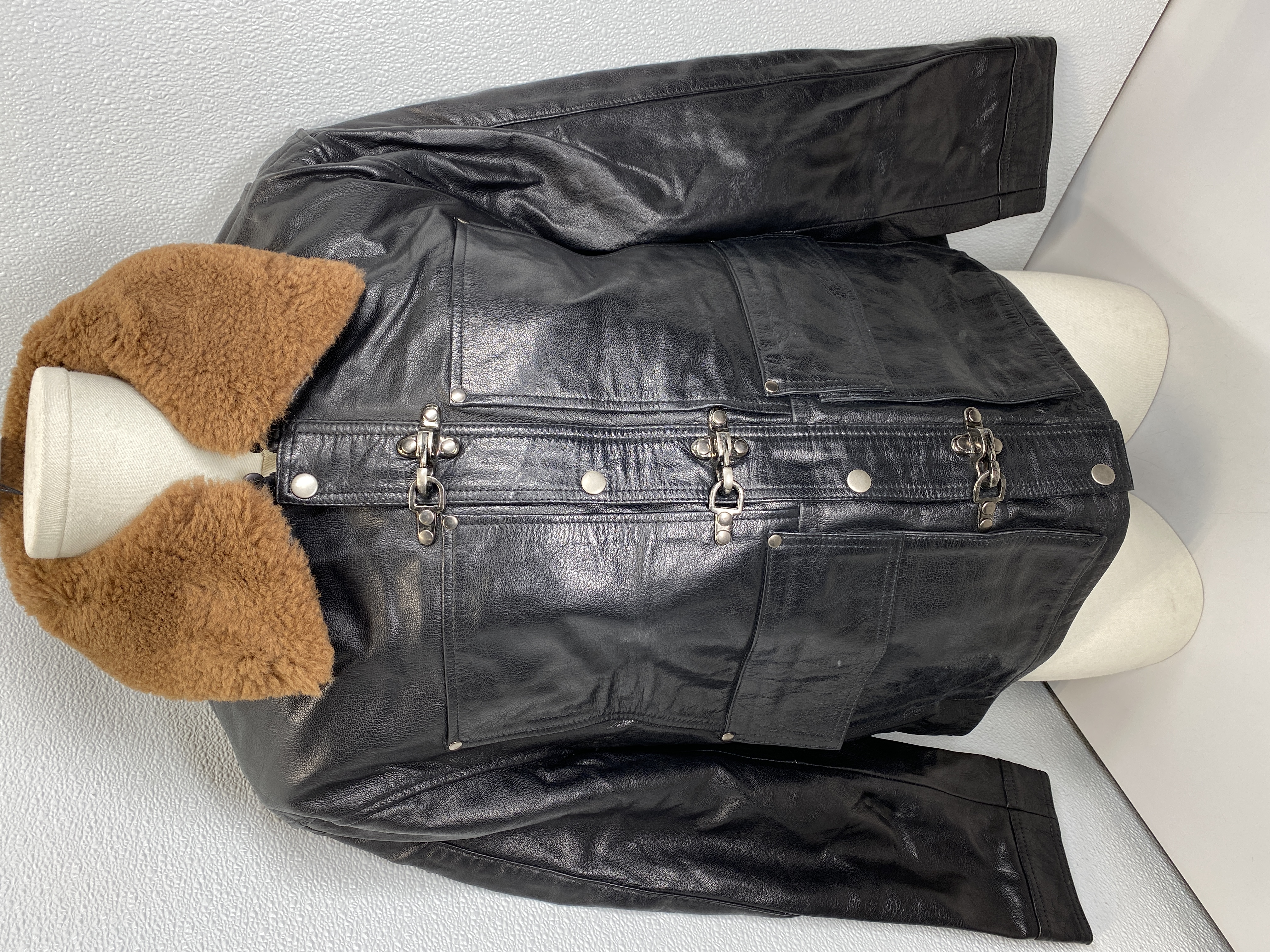 Found Men/Women Leather Coat Black Size M Sherpa Collar Fireman Utility Jacket