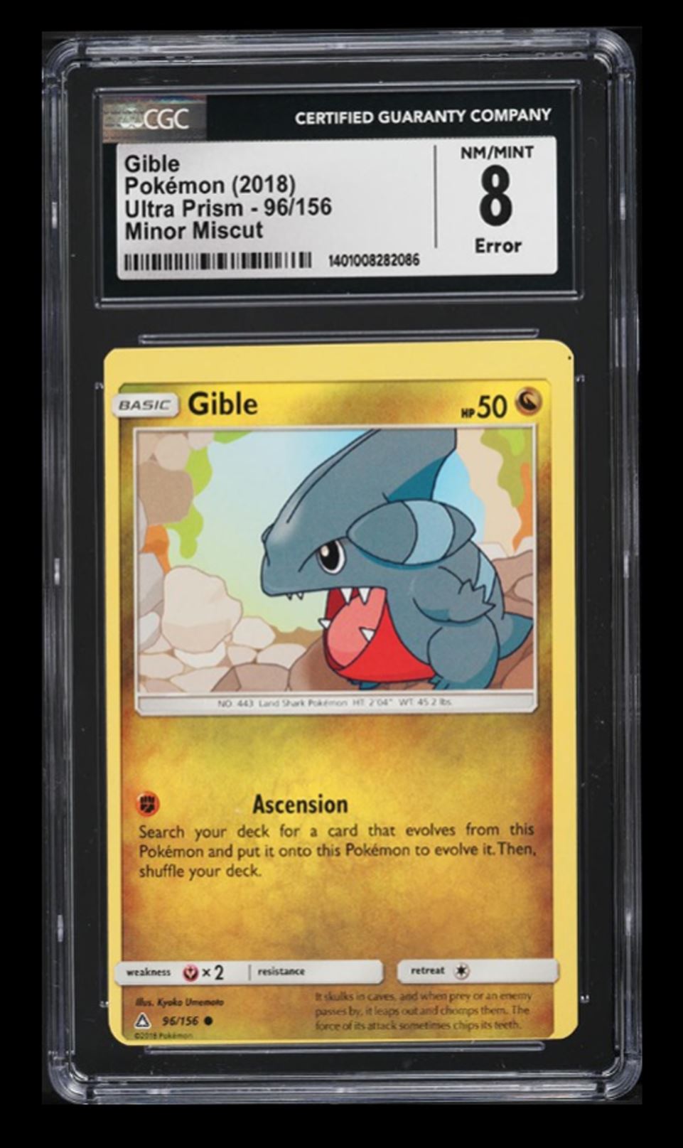 | 2018 Pokemon Ultra Prism Gible CGC 8 English #96 Minor Miscut (MC) Error |