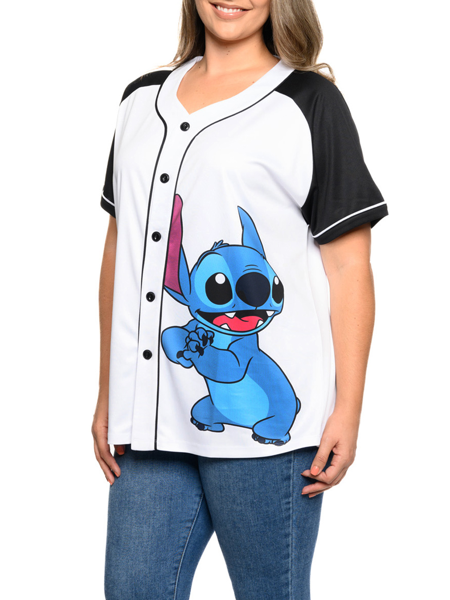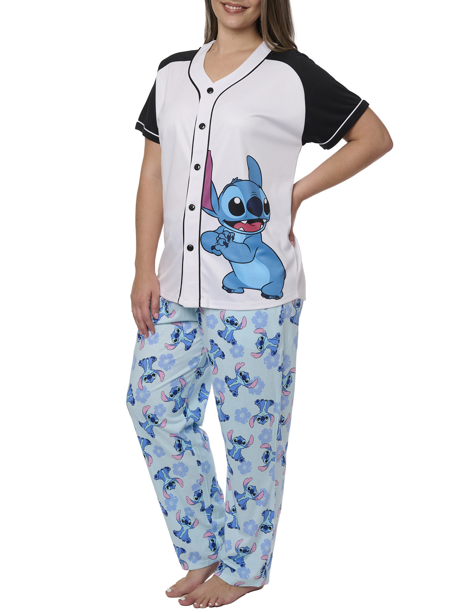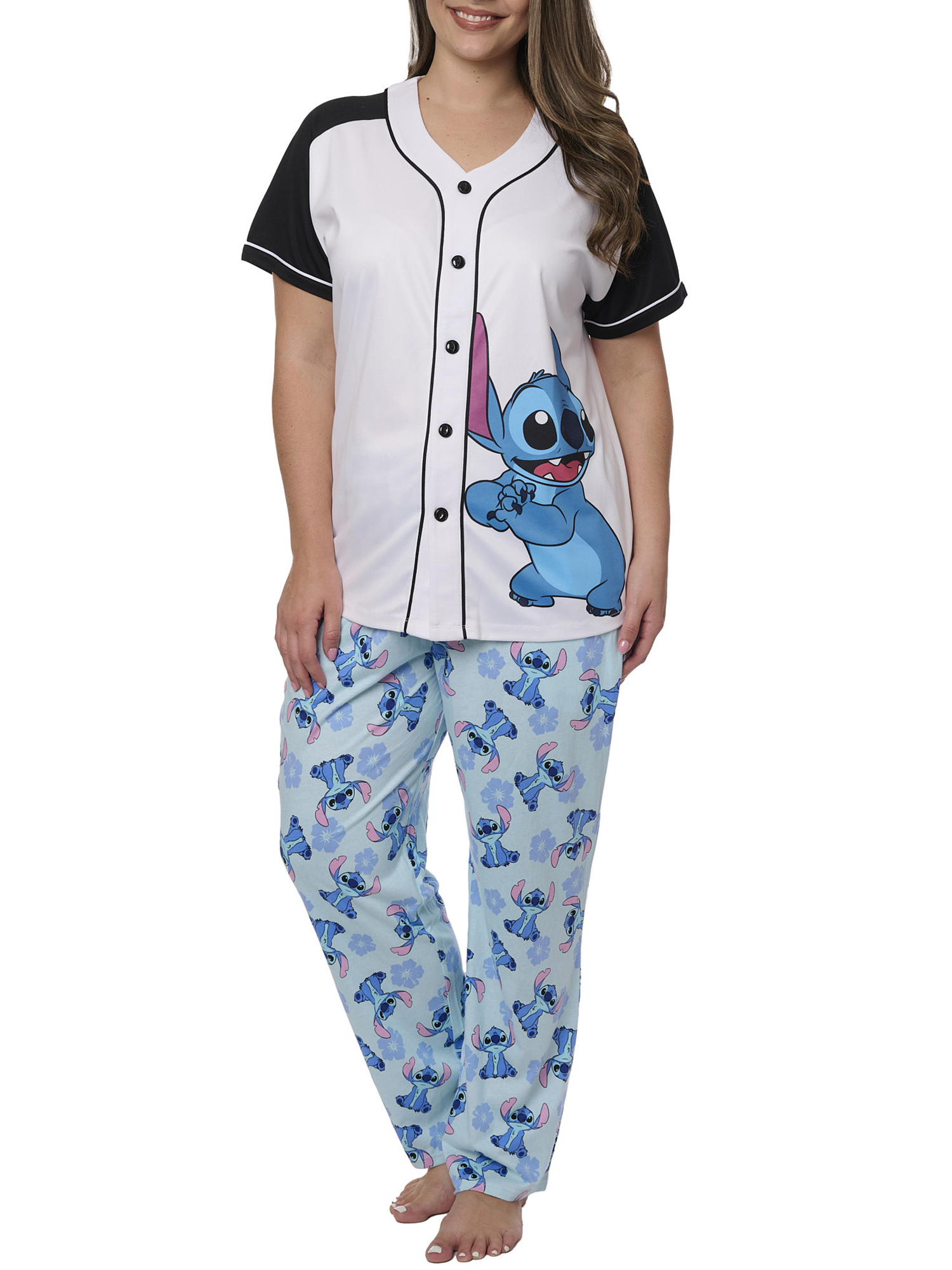 - Set Includes: (1) Disney Stitch Baseball Jersey Button Down Shirt White Women's Plus Size & (1) Disney Stitch Lounge Pajama Cotton Pants Hibiscus Floral Womens Plus Size