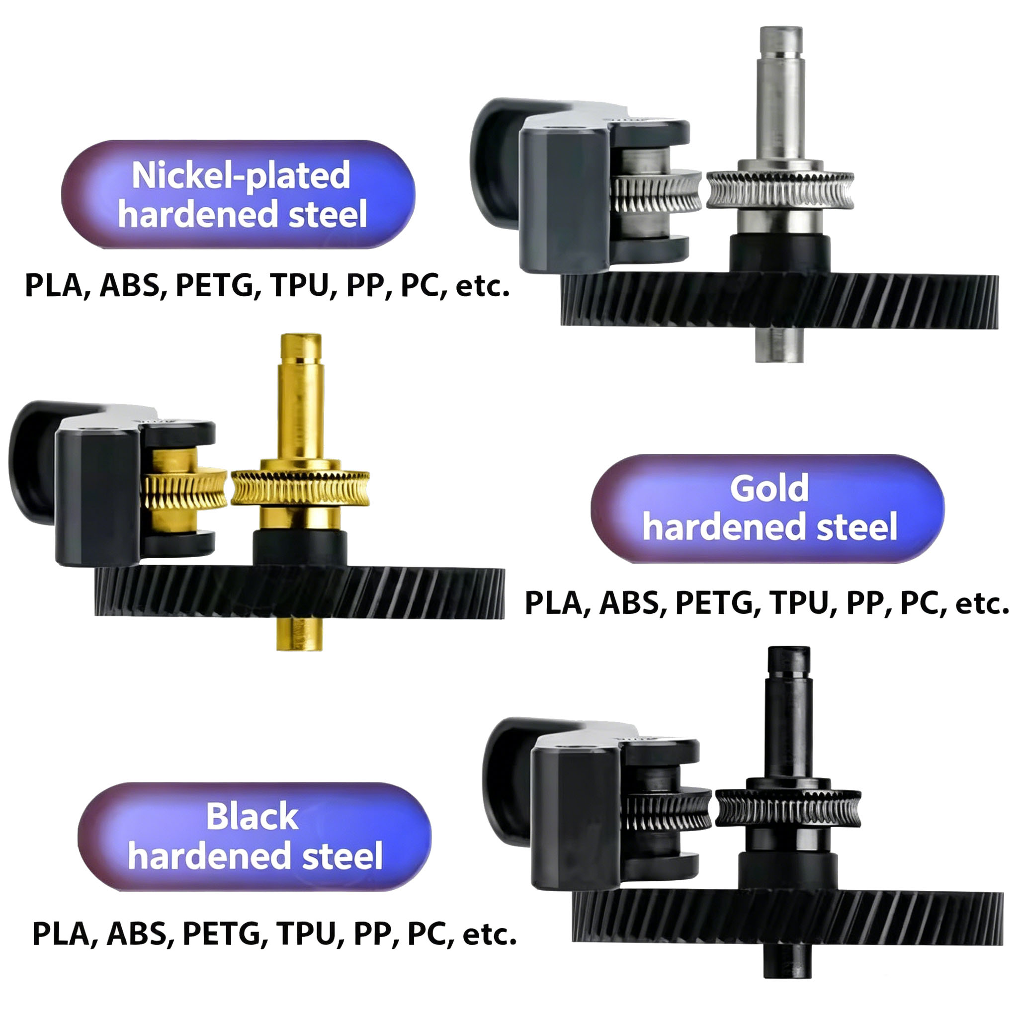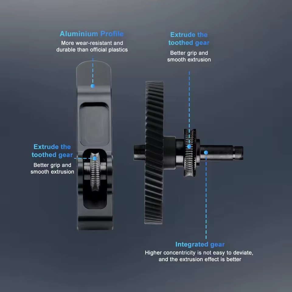 1) The integrated shaft design ensures better concentricity of the gear, reduces the eccentric rotation of the gear due to assembly, and ensures that the gear delivers filament more evenly;