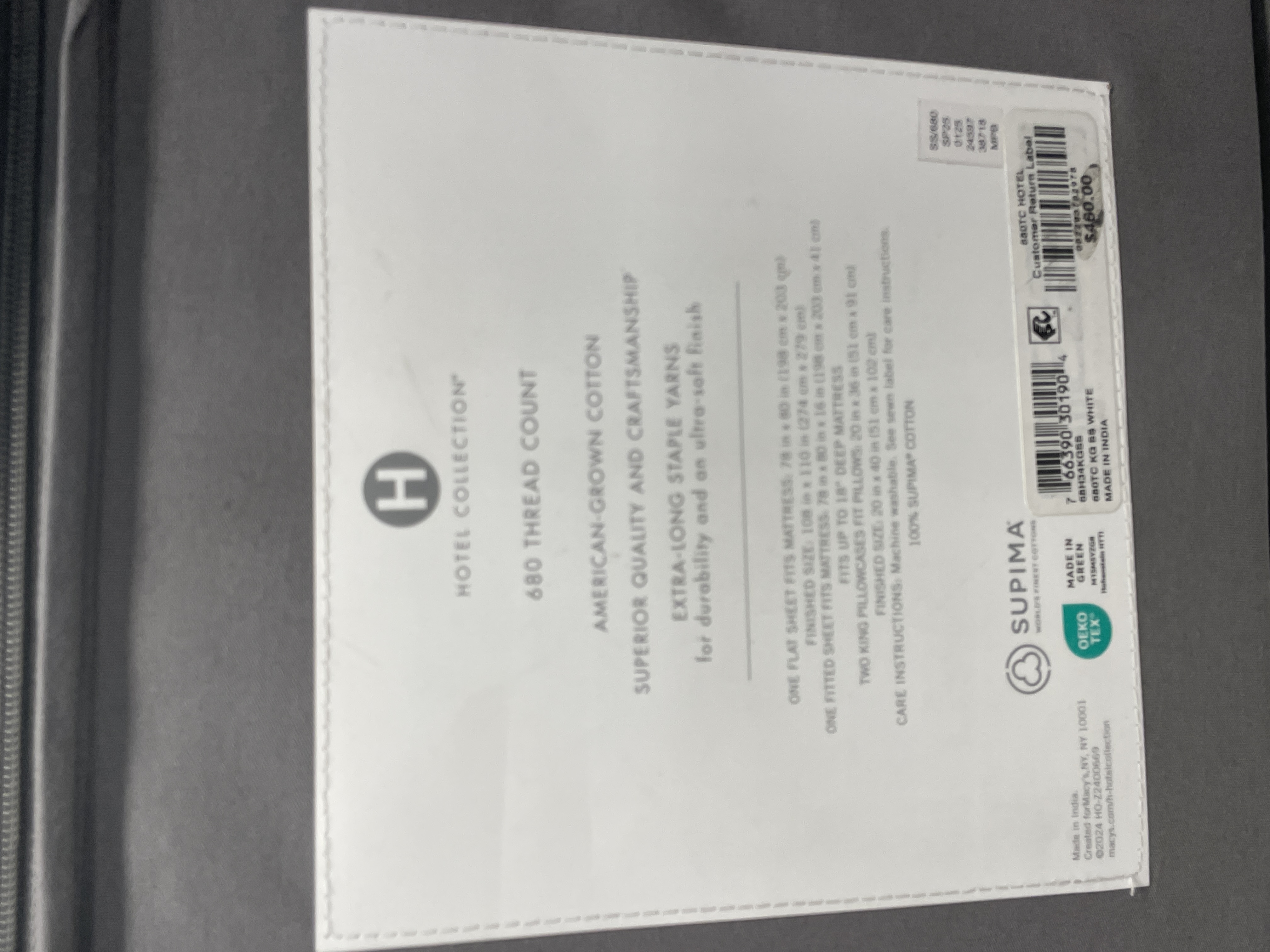 Hotel Collection King Sheet Set 100% Supima Cotton White Sealed