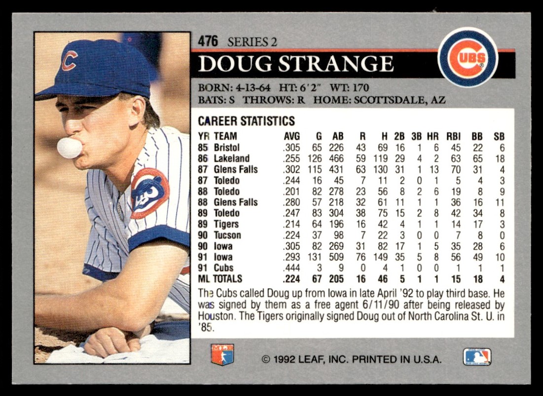 1992 Leaf Doug Strange Chicago Cubs #476