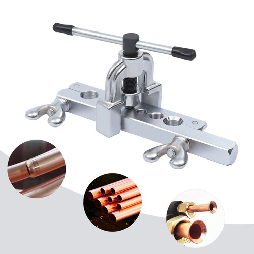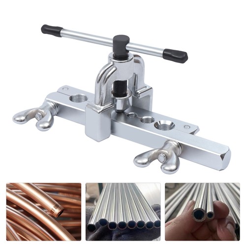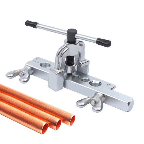 This is a flaring tool kit made of high-quality ductile iron and 45 gauge steel, which is robust and durable. This reamer is suitable for reaming copper, aluminum, and flexible steel pipes in areas such as air conditioning and cooling. With this flaring tool kit, your repair work efficiency will be greatly improved.