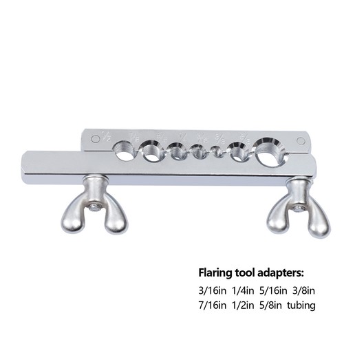 High Adaptability: Our flaring clamp has multiple sizes of holes, so they can fit 3/16 inch, 1/4 inch, 5/16 inch, 3/8 inch, 7/16 inch, 1/2 inch, and 5/8 inch pipes. Such a multi-hole design makes this flaring tool kit applicable to a wider range.
