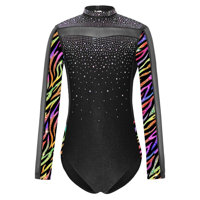 The long-sleeve backless bodysuit design is both fashionable and functional, showing off a trendy and modern look while offering enough flexibility for gymnastic or skating moves.