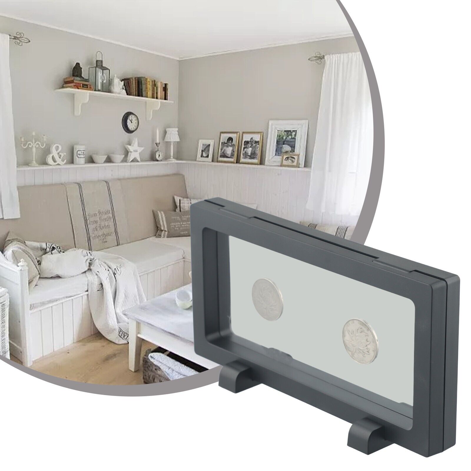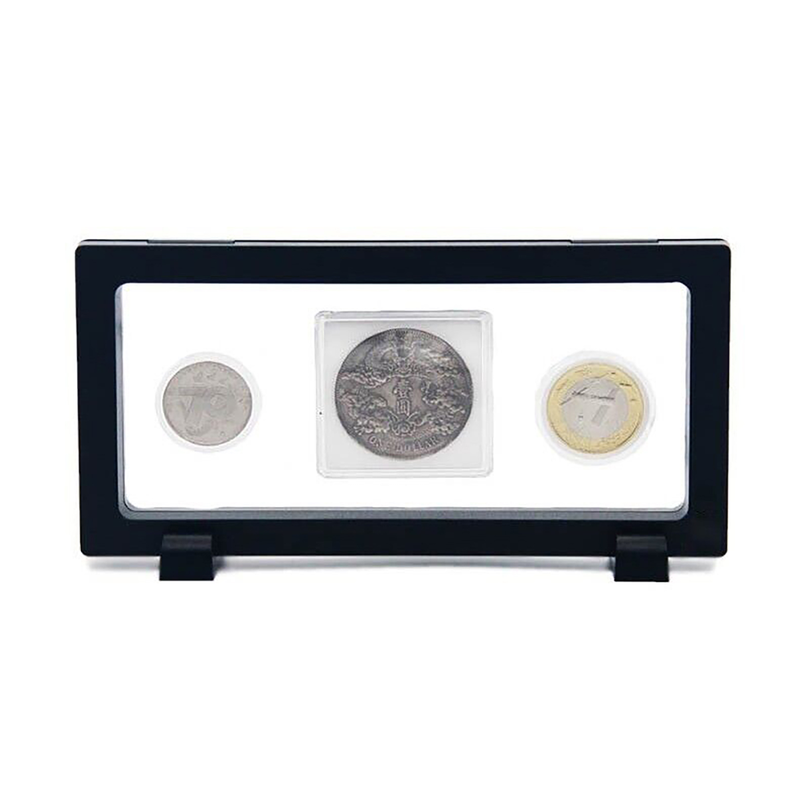 2Pcs 3D Floating Coin Display Frame Box Jewelry Holder Case with Stand Black