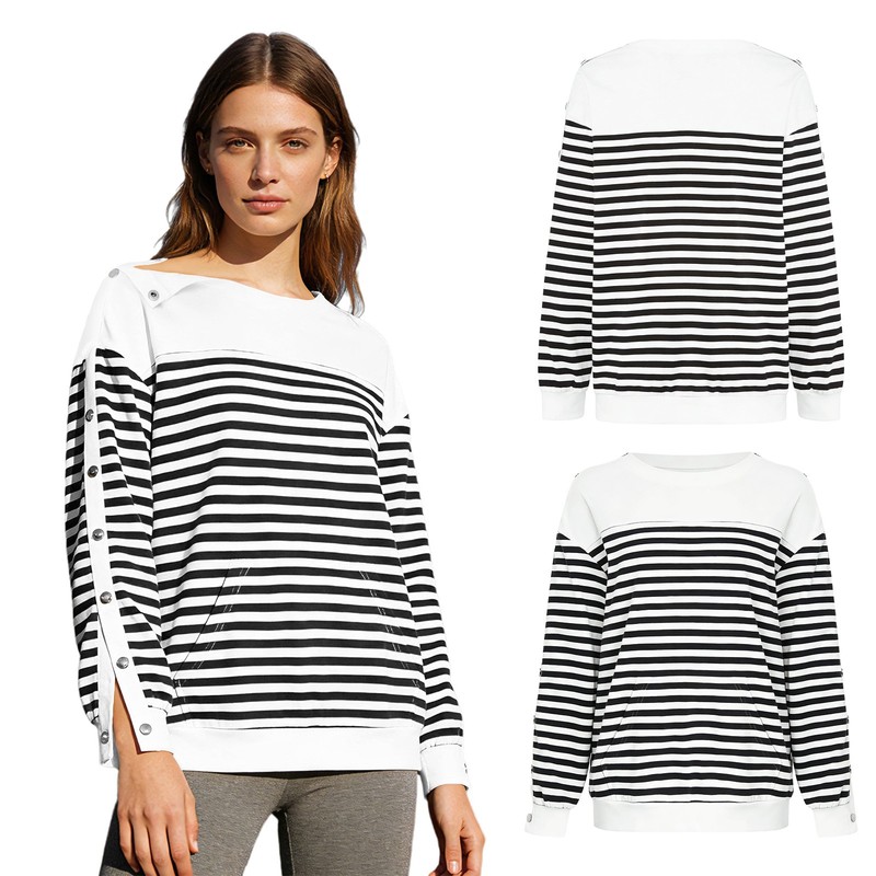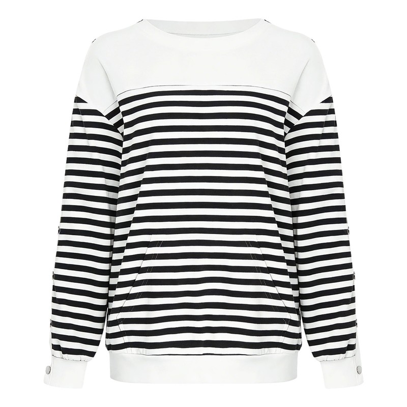 Long sleeves and striped pattern give the sweatshirt a stylish and trendy look, following the current fashion trends.