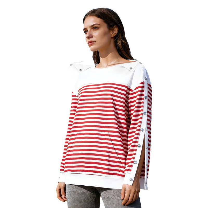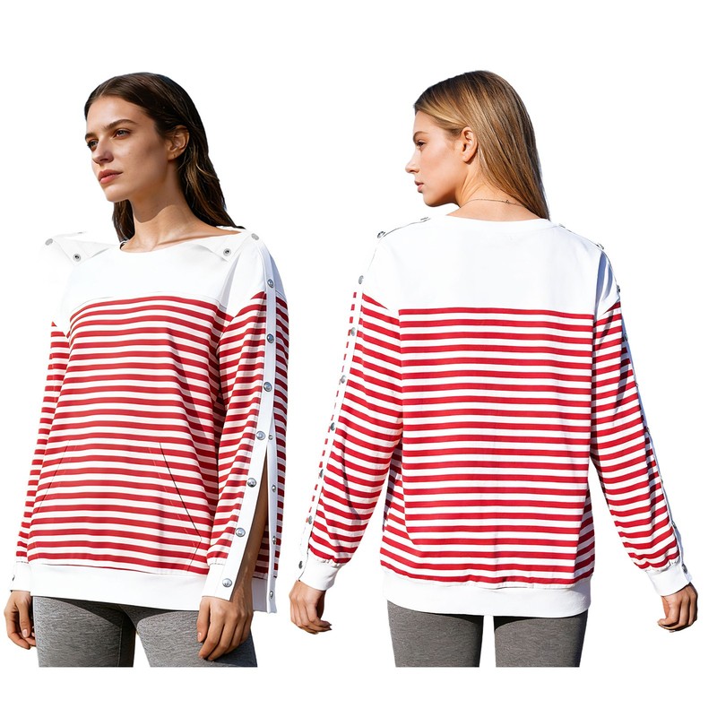 This sweatshirt is a versatile piece, suitable for yoga, fitness, outdoor activities, casual daily wear, or post surgery.
