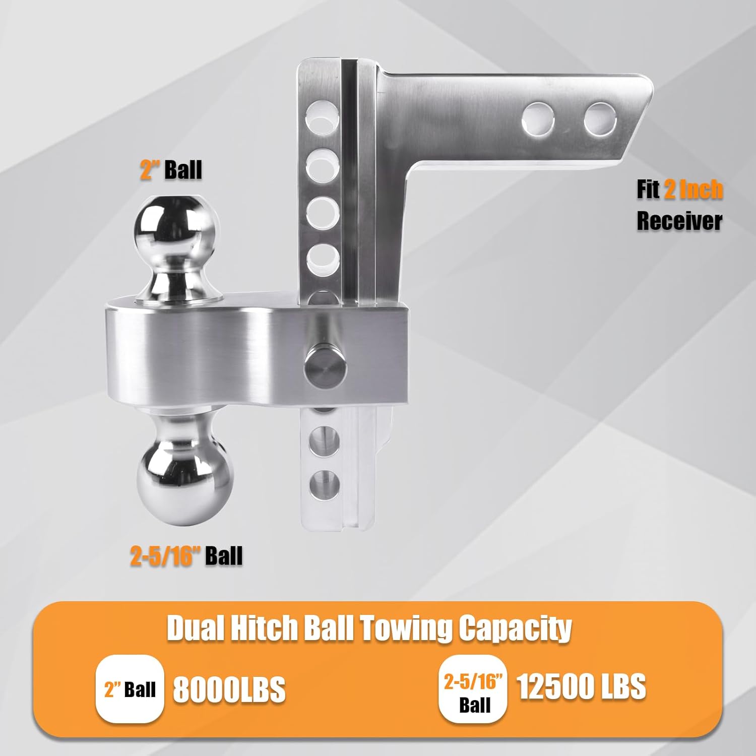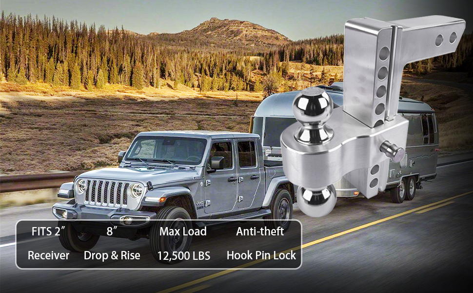 Universal fit for 2” & 2-5/16” trailer couplers, and all standard 2-inch receiver hitch can perfectly fit any connector of trailer, rear bumper, agricultural machines and dual receiver extender with the same size. Anyways this tow hitch is ideal for towing and hauling boats, trailers, truck, campers, livestock trailers, recreational vehicle trailers, dirt bikes, ATVs, motorcycles, etc.