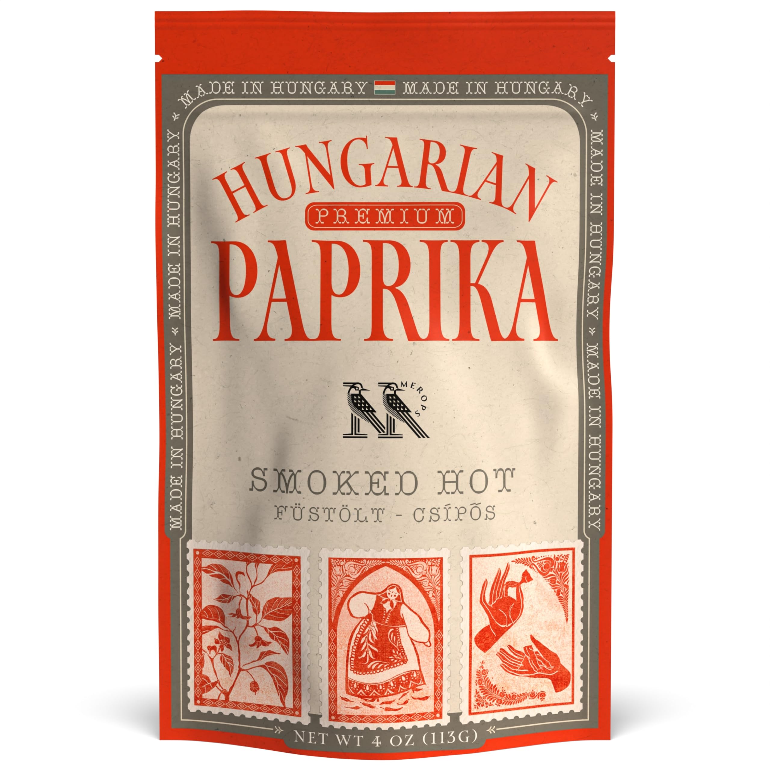 Premium SMOKED HOT Hungarian Paprika Powder (4 oz) - Non-GMO - Vibrant Deep Red Color - Origin: Szeged Region, Hungary - Authentic Seasoning Spice in Resealable Bag by MEROPS