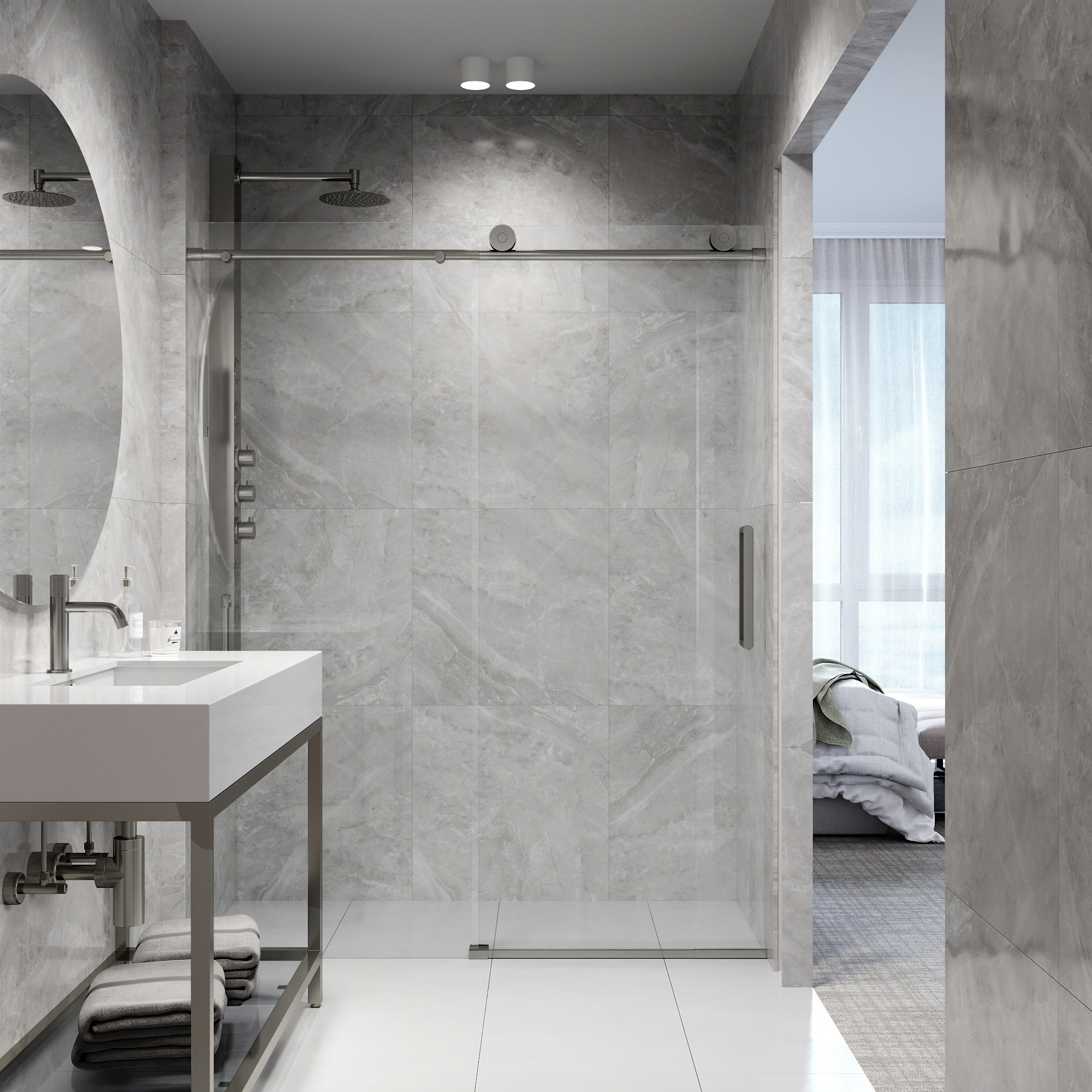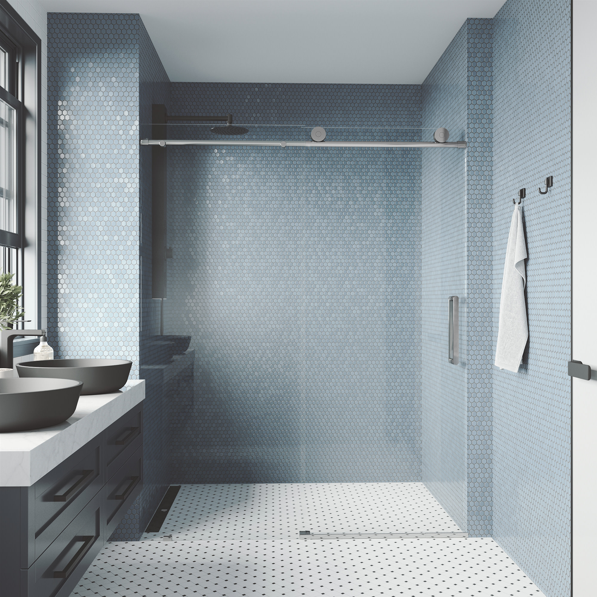 Item DescriptionThe Elan Frameless Sliding Shower Door featuring VMotion is a modern door that prioritizes an innovative soft-closing technology for a silent and extraordinary shower experience. This soft-closing door is crafted with high-quality steel and brass hardware to resist rust and tarnish, ensuring long-lasting durability. Setting it apart within the classic Elan shower door collection, this door comes equipped with specially designed sliders to ensure a gentle closure to eliminate any potential for disruptive door slamming