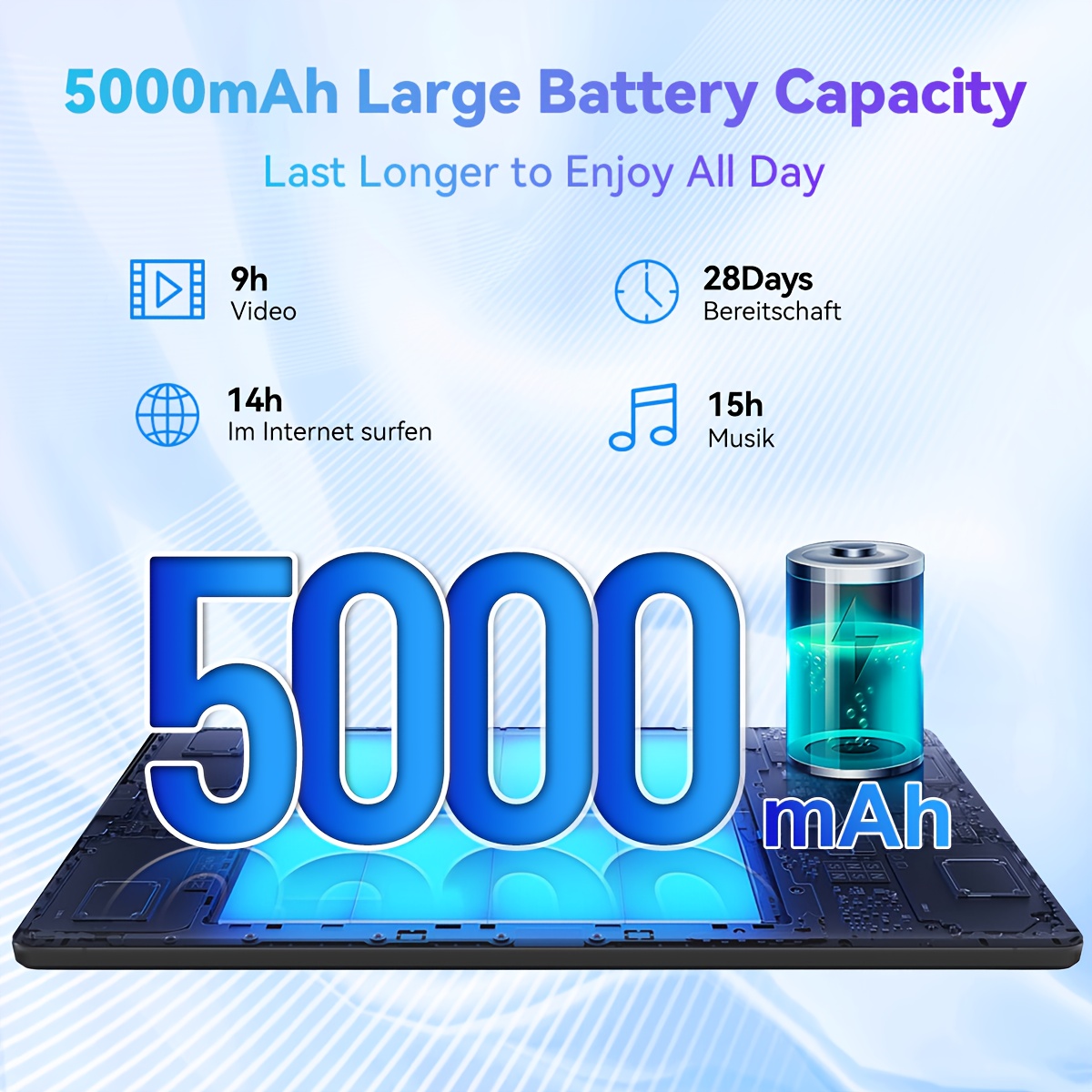 【Large-capacity Battery with Extended Endurance.】The large 5000mAh battery fuels up to 12 hours of video or 8 hours of gaming on a single charge. When you need power fast, USB-C gets you back to 50% in just 90 minutes (5V/2A).This electronics tablet is your perfect partner for travel, campus life, or just getting work done anywhere.