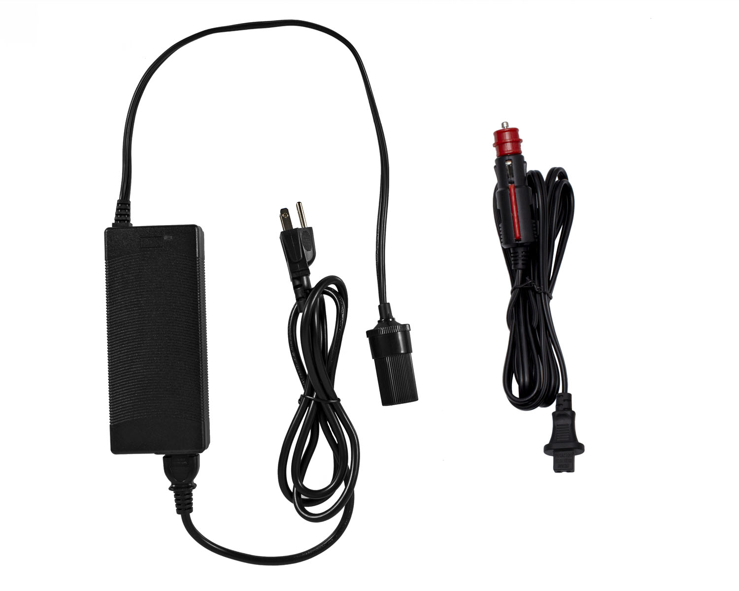 - Includes connections for both a 12/24V auxiliary power outlet and an adapter/cord for 110V outlets