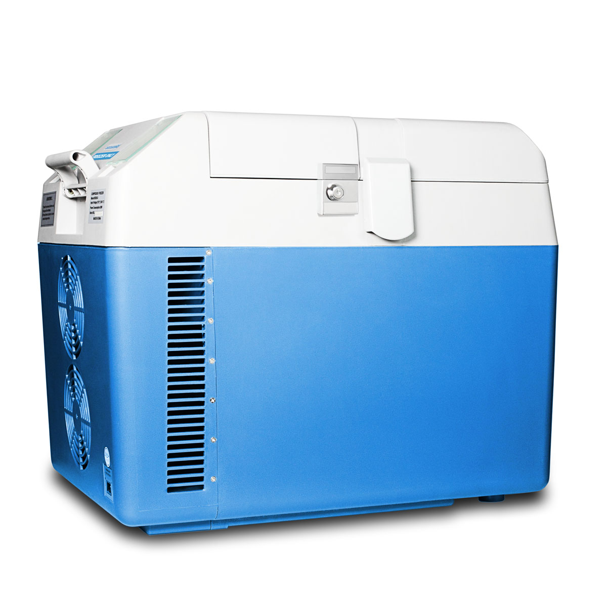 - Portable 12V/24V compressor-powered freezer for the safe storage of vaccines, pharmaceuticals, and other materials