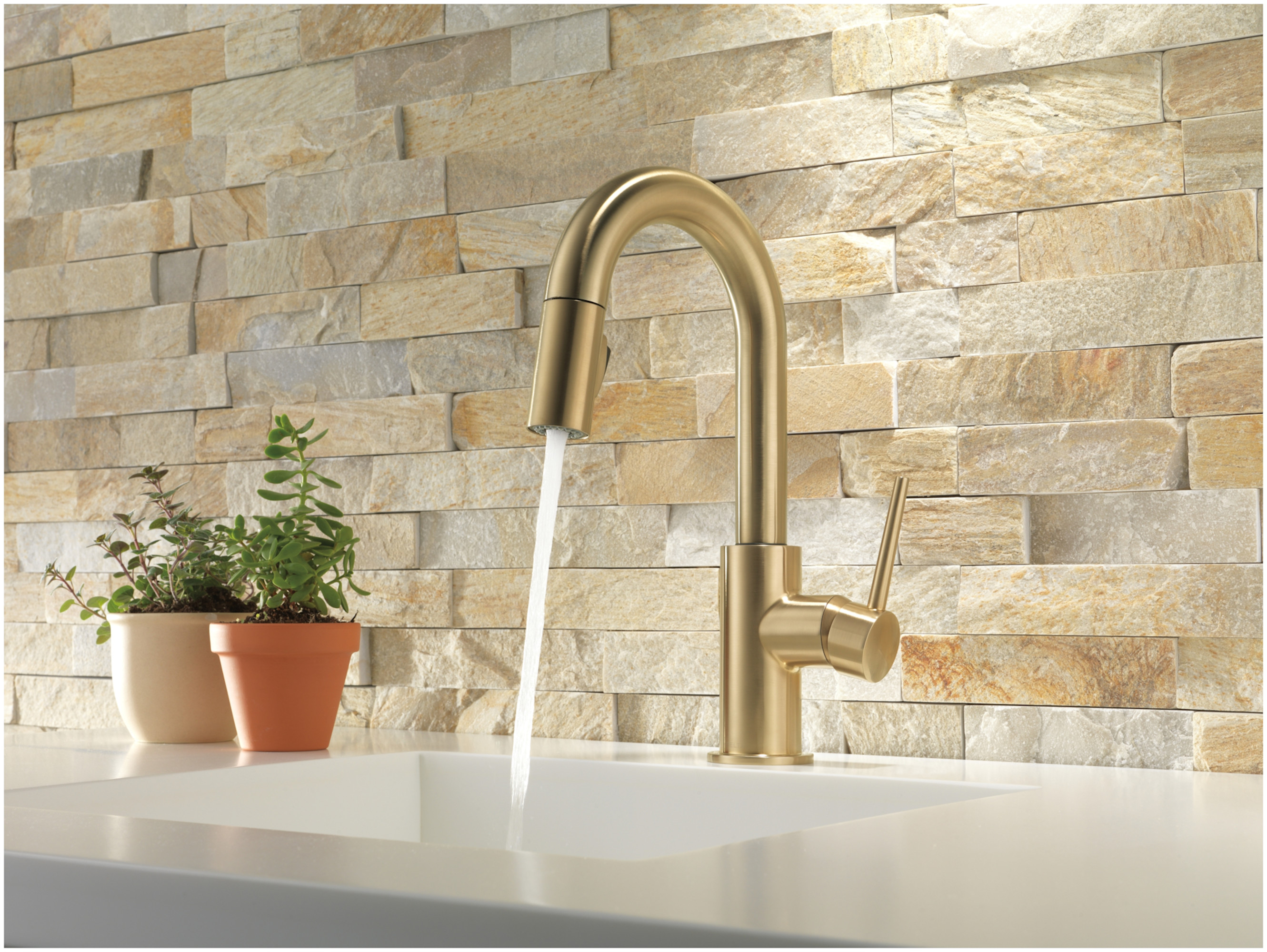 Kitchen Version w/ Touch2O TechnologyDelta is driven by its quest for innovation—and this applies to its kitchen and bathroom faucets and fixtures. From Touch2O technology (which turns the faucet on and off with just a touch) and MagnaTite technology (which eliminates droopy pull-down spray heads), to H2Okinetic showers (for a warmer and more luxurious shower experience), your life is simplified through innovations. And if you’re searching for a product to offer an eye-catching focal point, while providing durability and reliability for a lifetime, look no further than Delta.