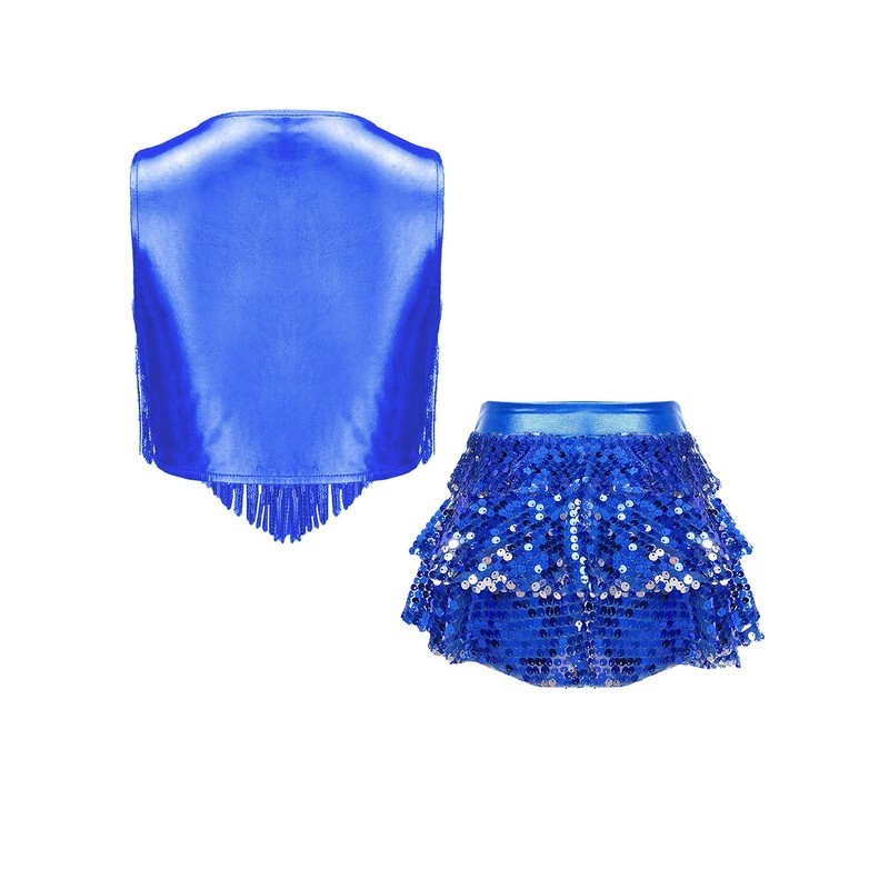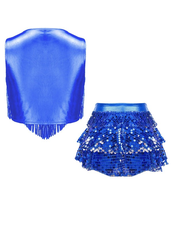 Crafted from a blend of polyester, PU, sequins, and spandex, the costume is not only stretchy but also has a shiny appearance, offering a comfortable and fashionable fit for girls.