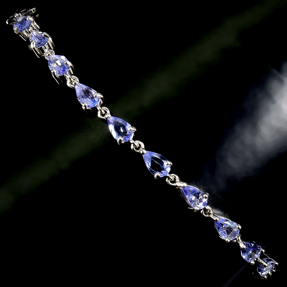 925 Sterling Silver Bracelet Pear Tanzanite 5x3mm Natural Gemstone Jewelry 7.5