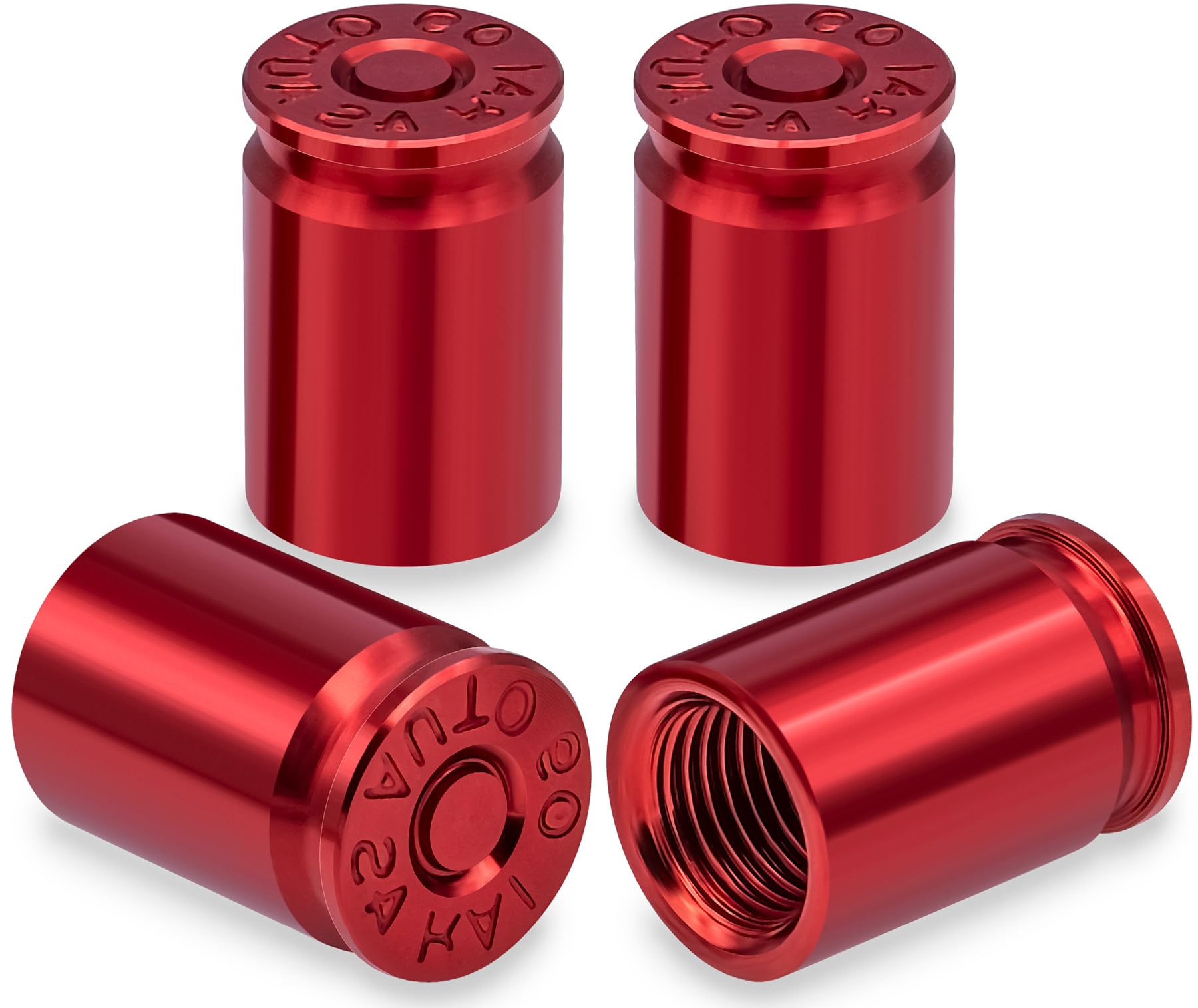 MEAJOO 4PCS Bullet Shell Tire Valve Stem Caps, Aluminum 4 pcs, Bullet-Red
