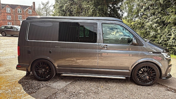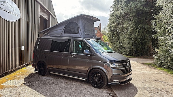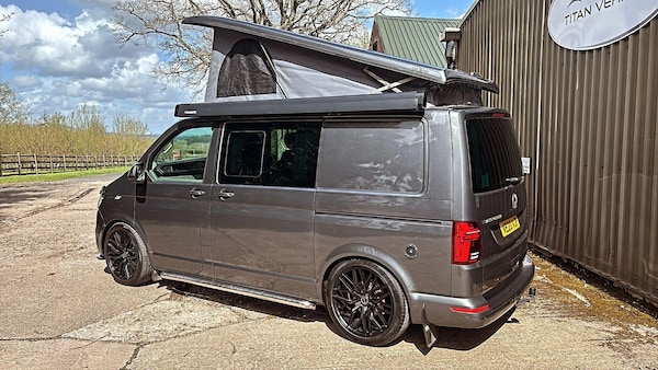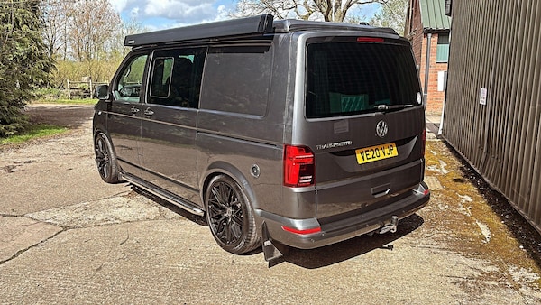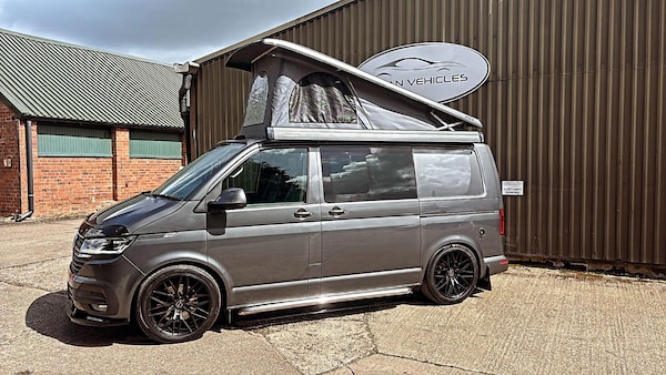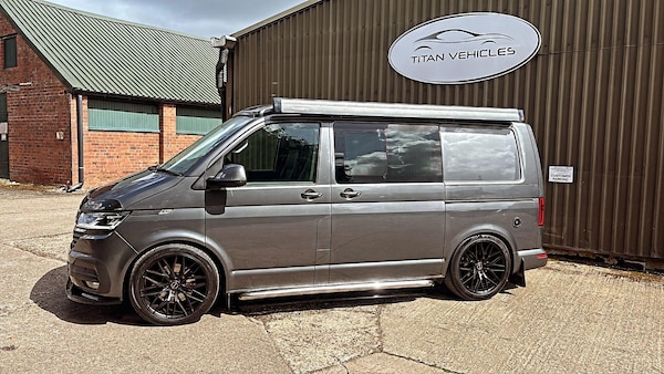 We are proud to present this excellent condition 2020 Volkswagen Transporter 2.0 BiTDI T32 Highline Crew Van FWD Euro 6 (s/s) 5dr DSG Auto with full camper conversion including pop top roof.Finished in metallic Indium grey with 20? Inovit Satin Black alloy alloy wheels which set the camper off nicely. Also privacy glass in the side and rear windows.2 owners from new with 66,000 miles and comes with Full VW Service History. Very good tyres and brakes