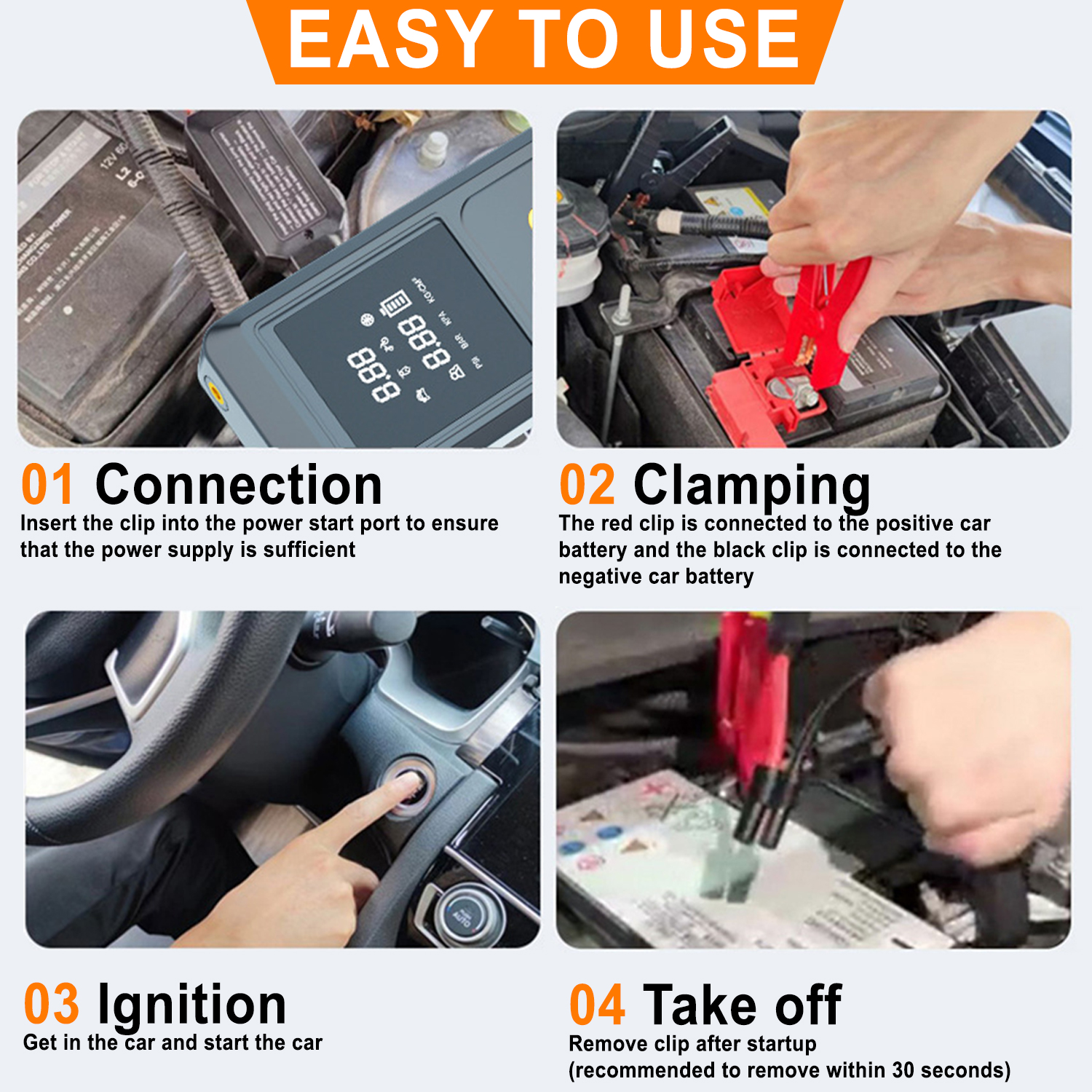7. Simple Operation: Easy-to-follow operation steps - connect, clamp, ignite, and remove - ensuring hassle-free usage for users of all levels.