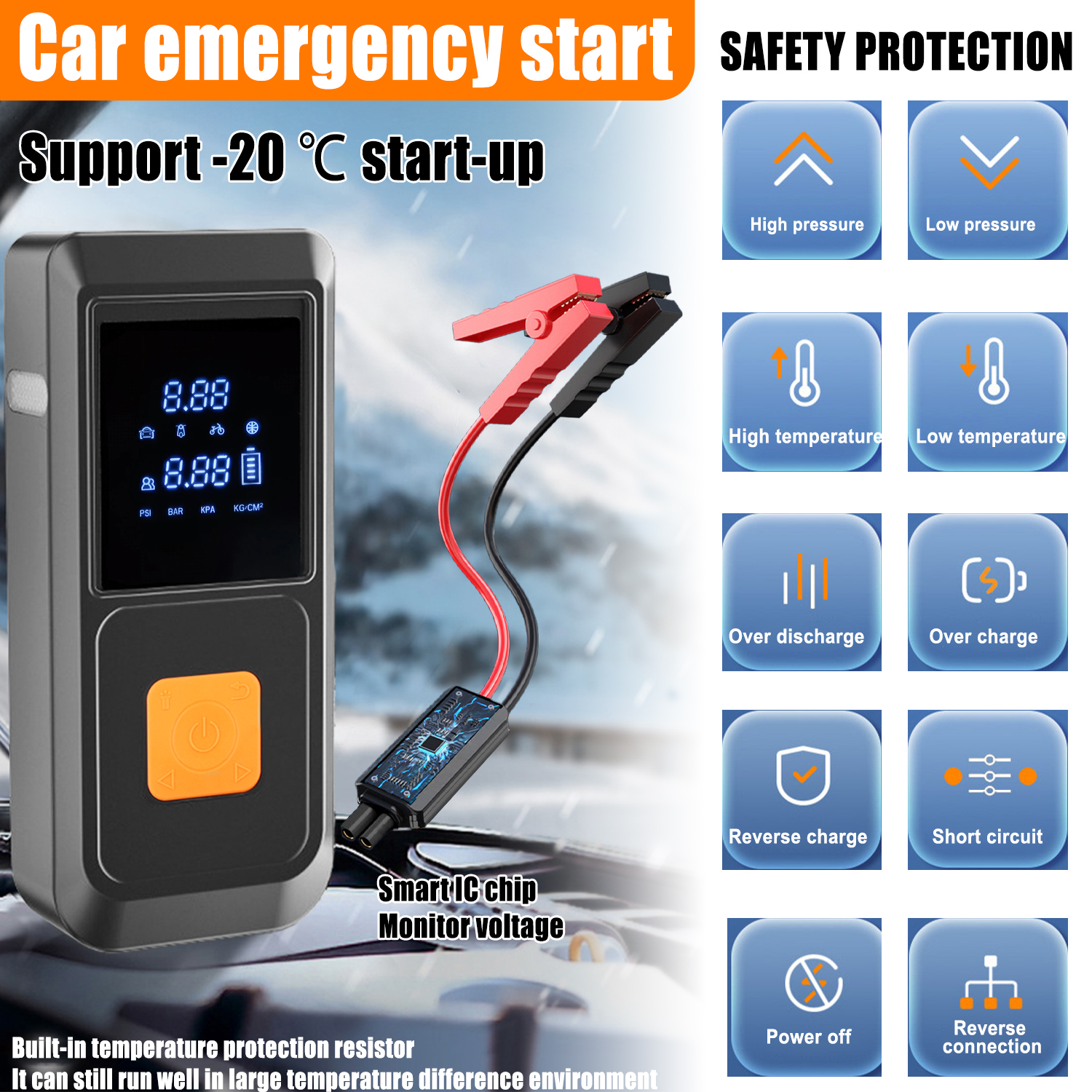 3. Smart Anti-reverse Battery Clamp: Featuring a smart anti-reverse battery clamp with 12 layers of safety protection, ensuring safe and secure operation during use.