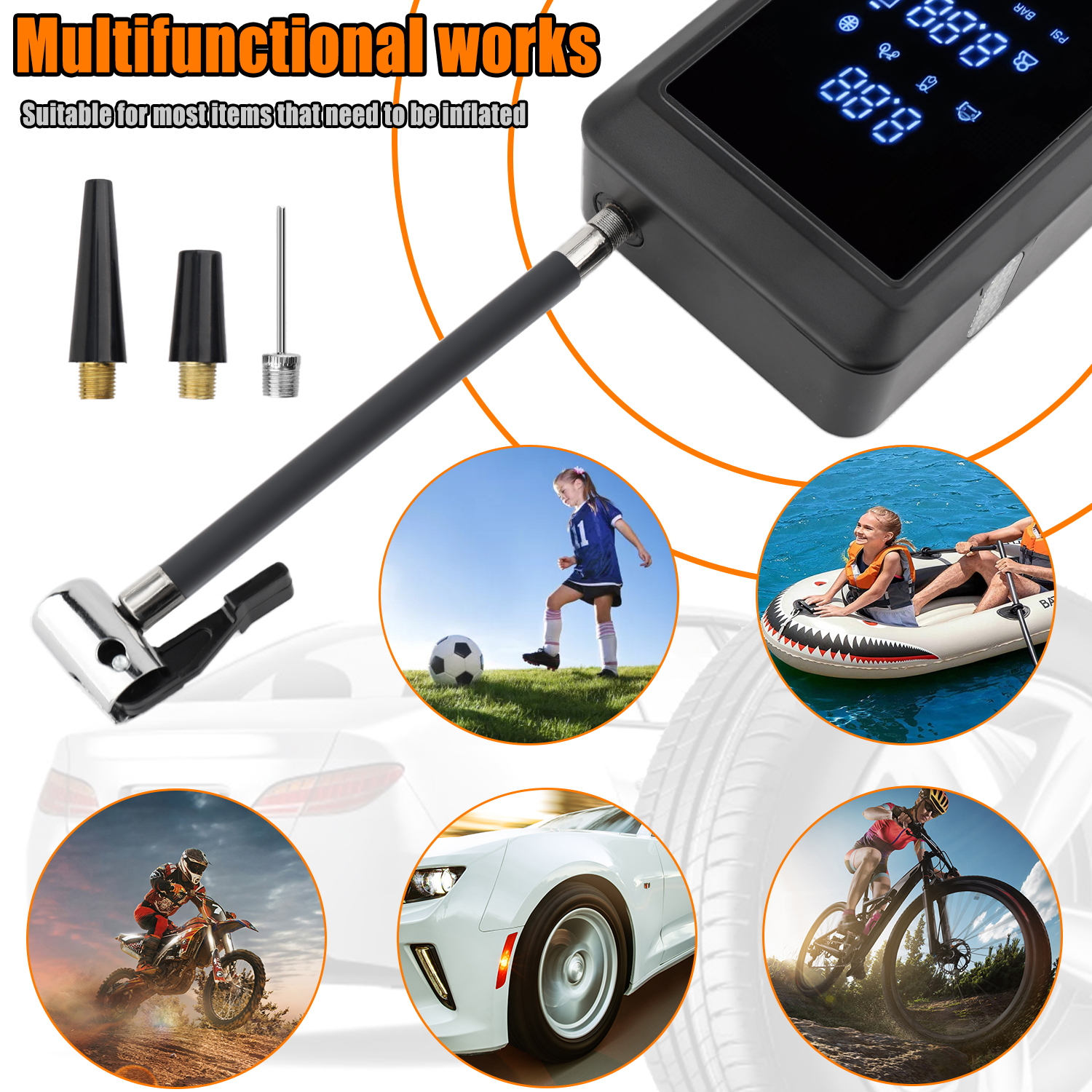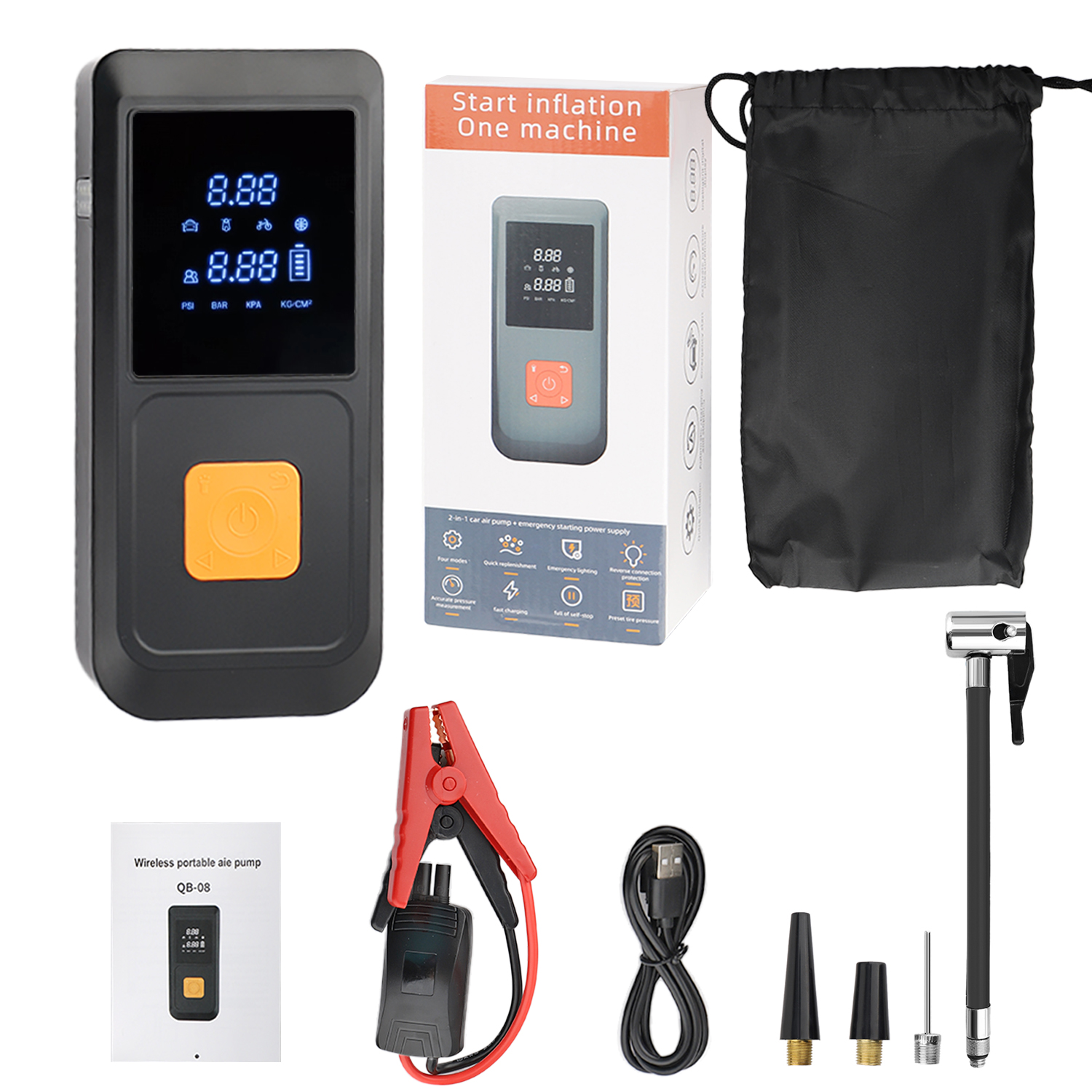 1. Emergency Power Supply & Air Pump Integration: This device combines an emergency power supply with an air pump, allowing for instant power recovery and rapid tire inflation during emergencies.
