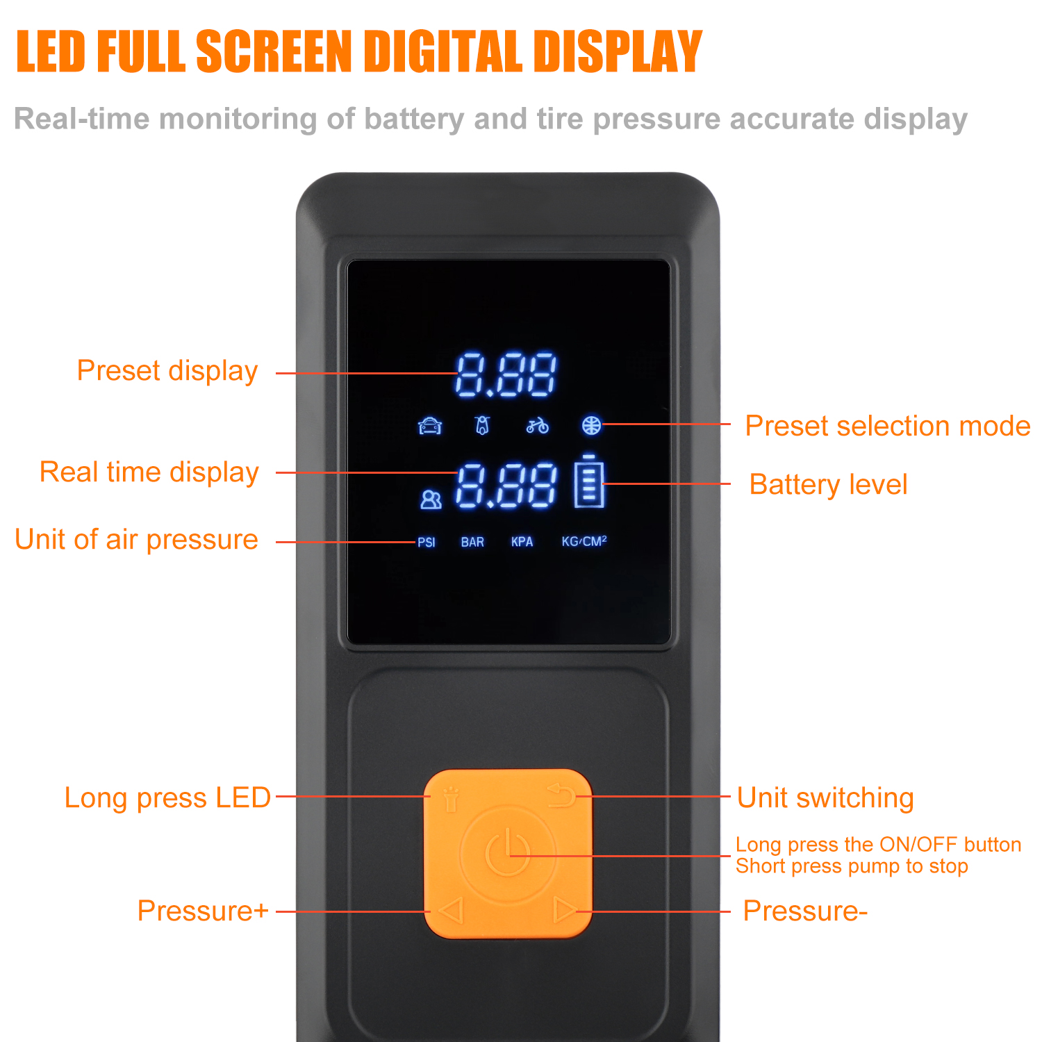 - Pressure Units: PSI, KPA, KG/c㎡