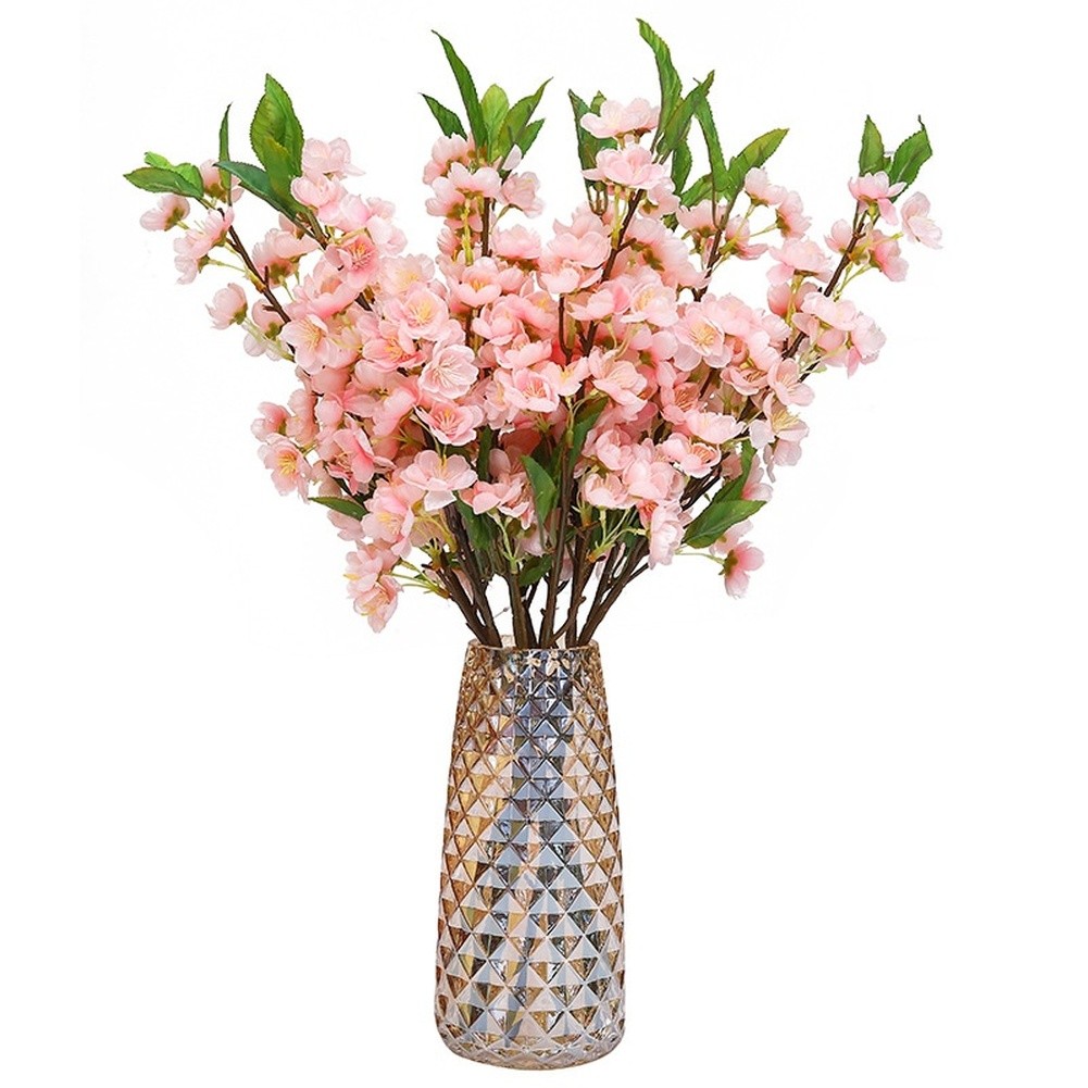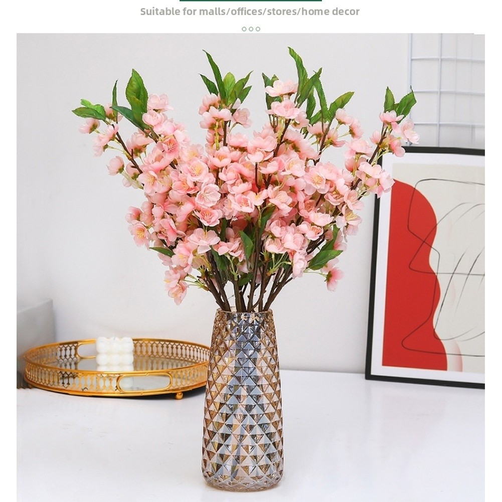 Silk Artificial Peach Blossom Branch for Wall Shelf Mantel Decor Display
