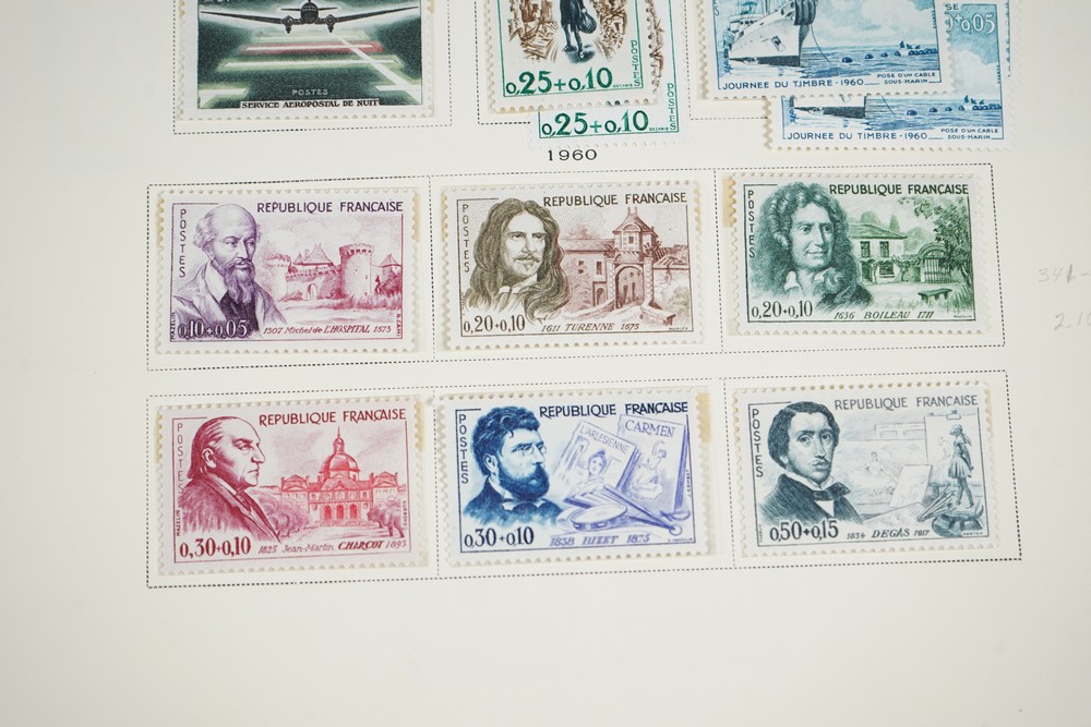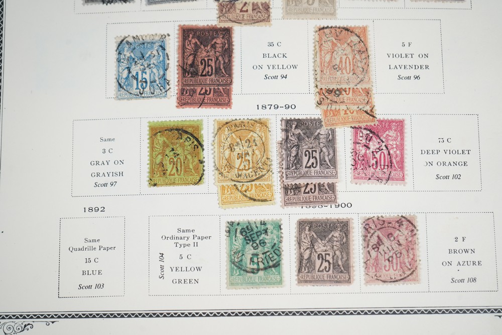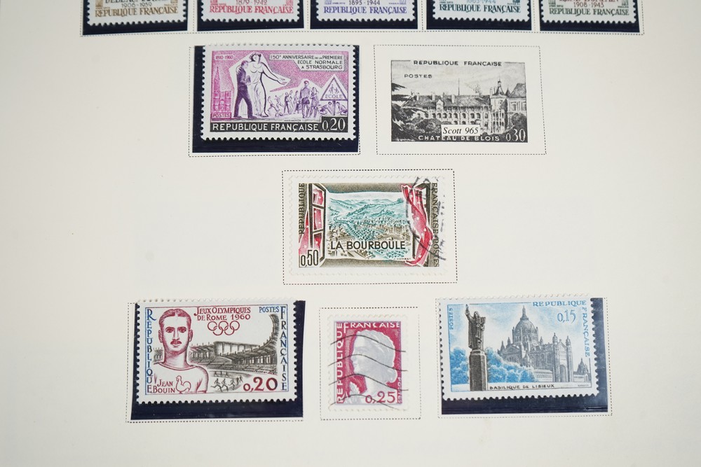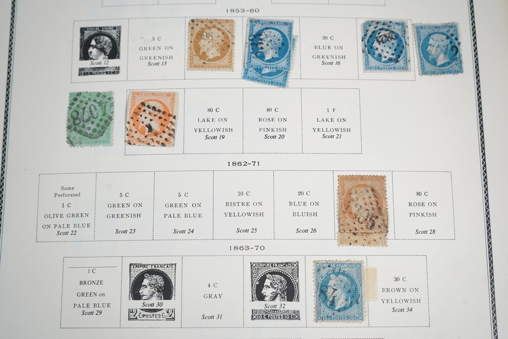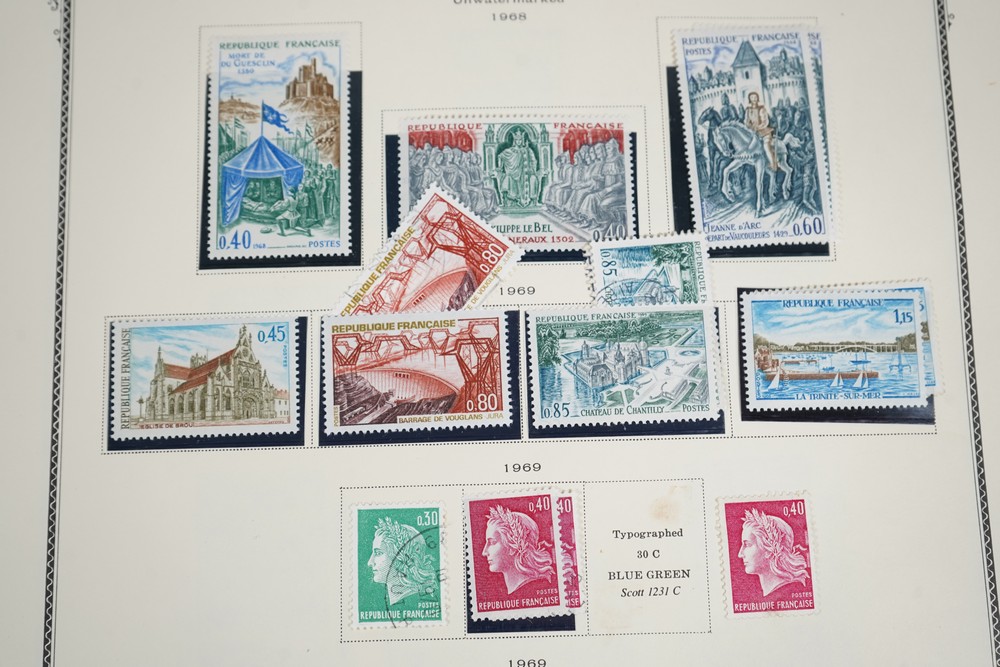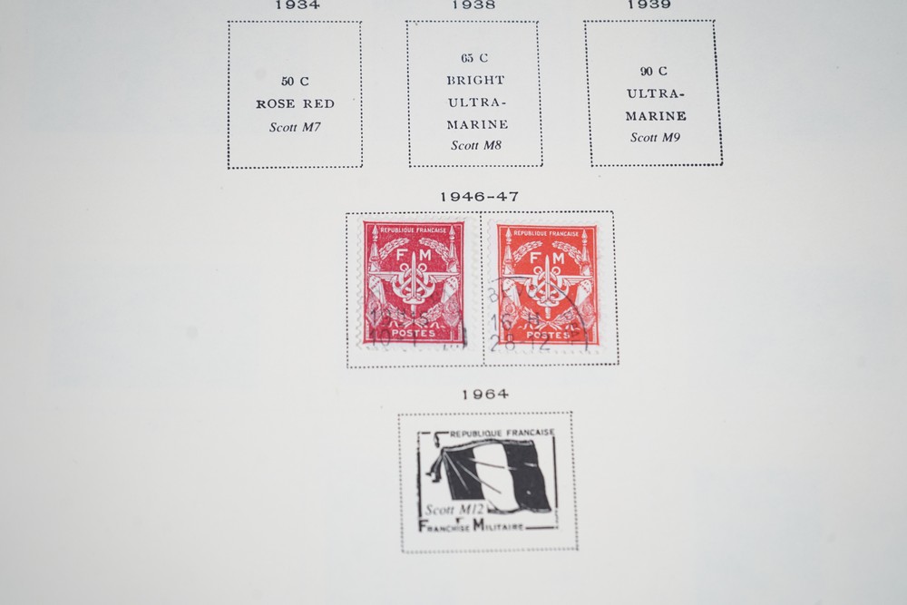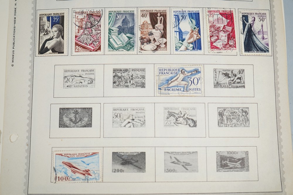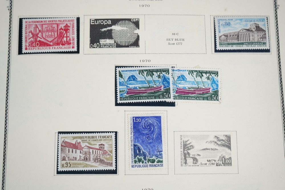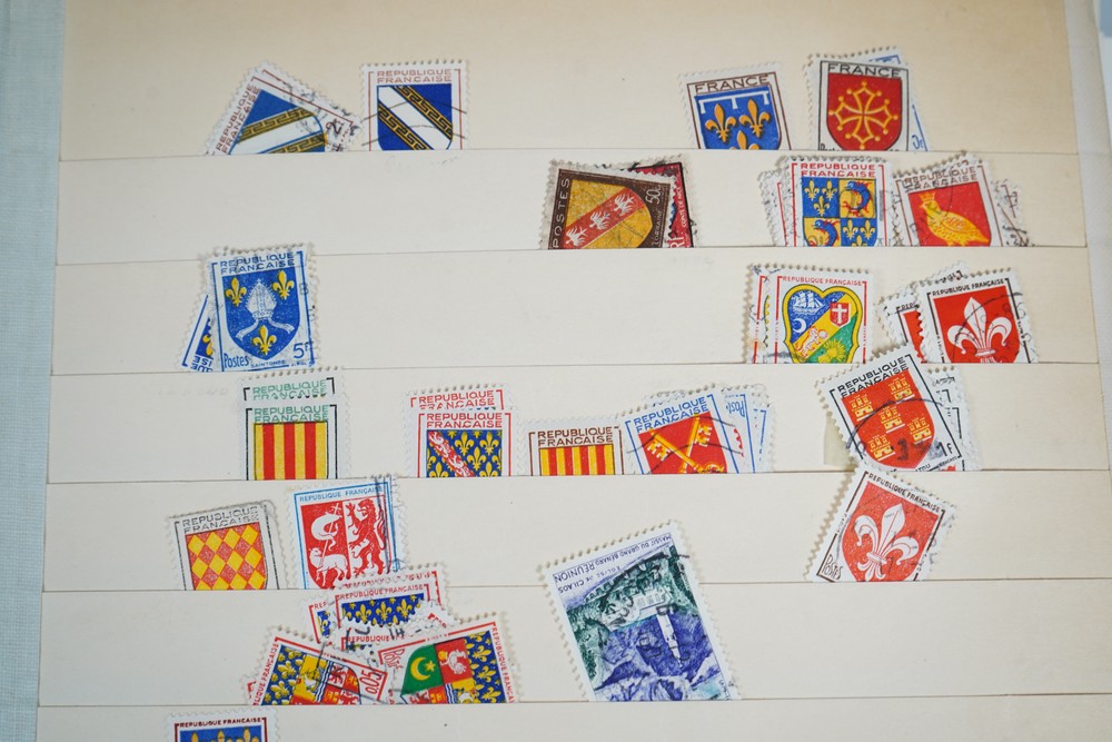 FRANCE 1850s-1970 COLLECTION OF 2,100+ STAMPS MINT & USED STORED ON ALBUM PAGES. INCLUDES SCOTT BINDER BUT THERE ARE NO PINS OR PEGS TO ATTACH PAGES TO.