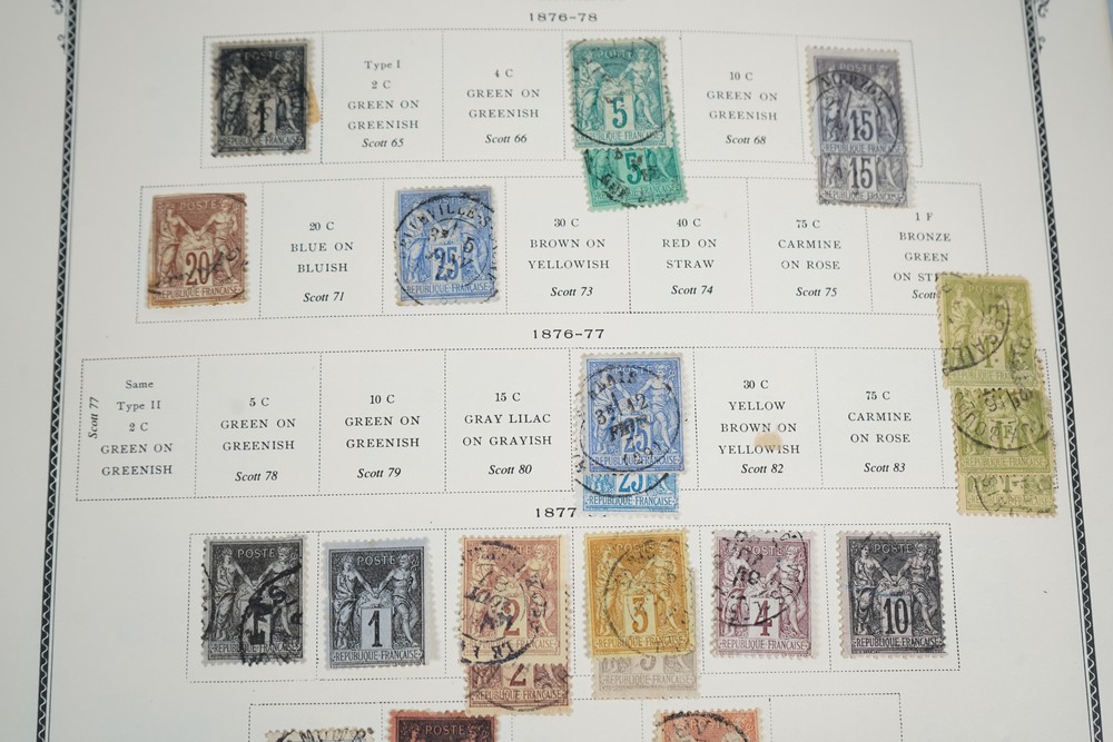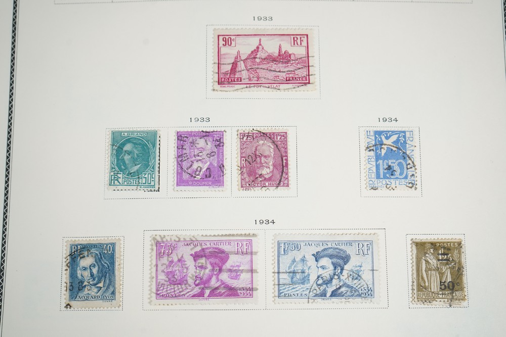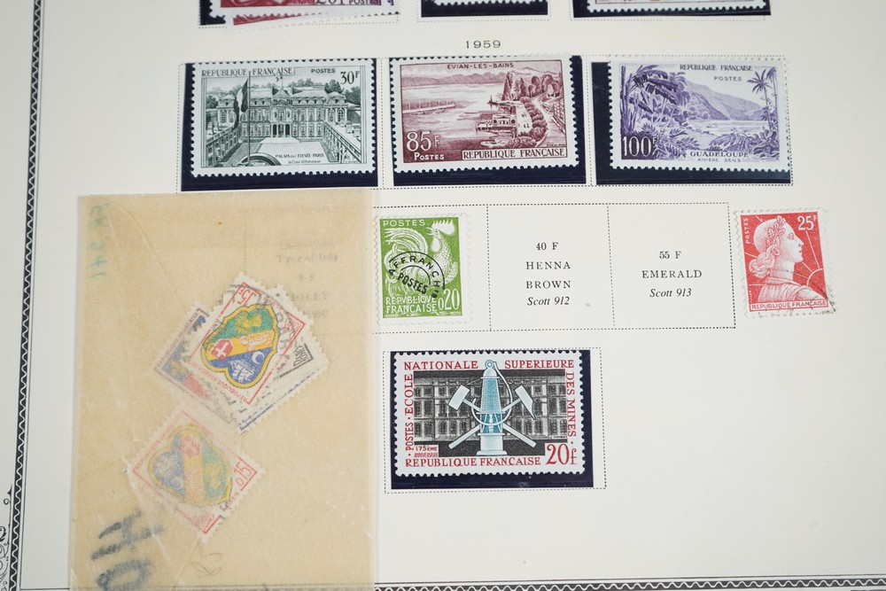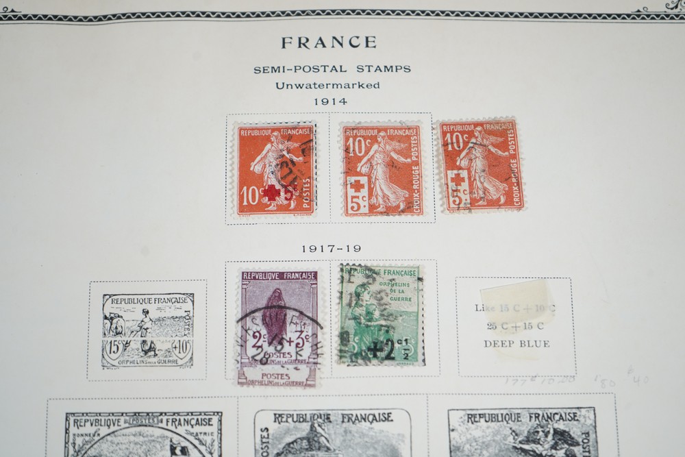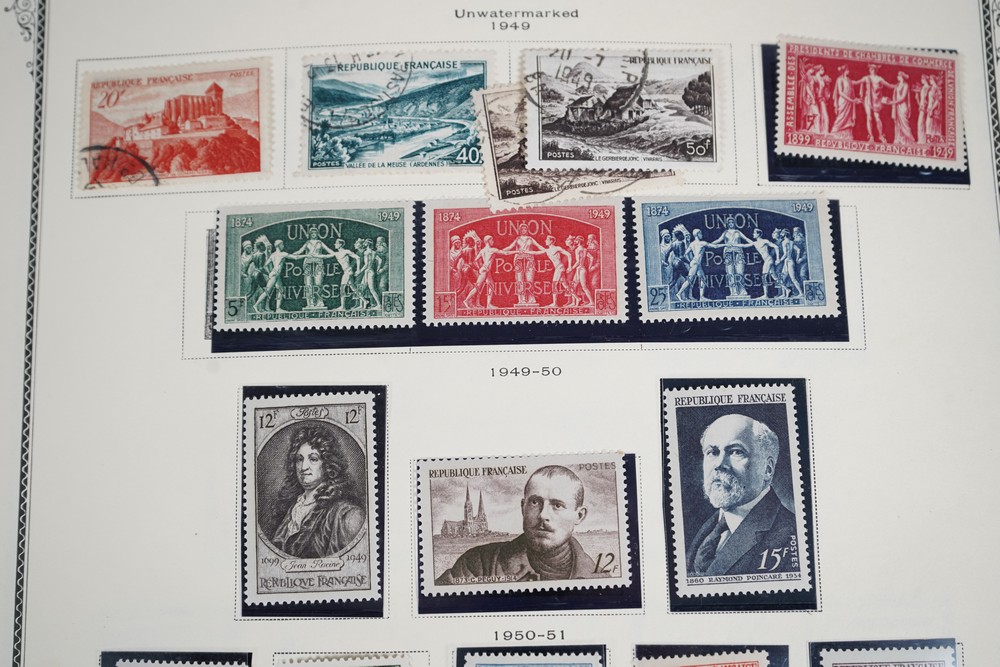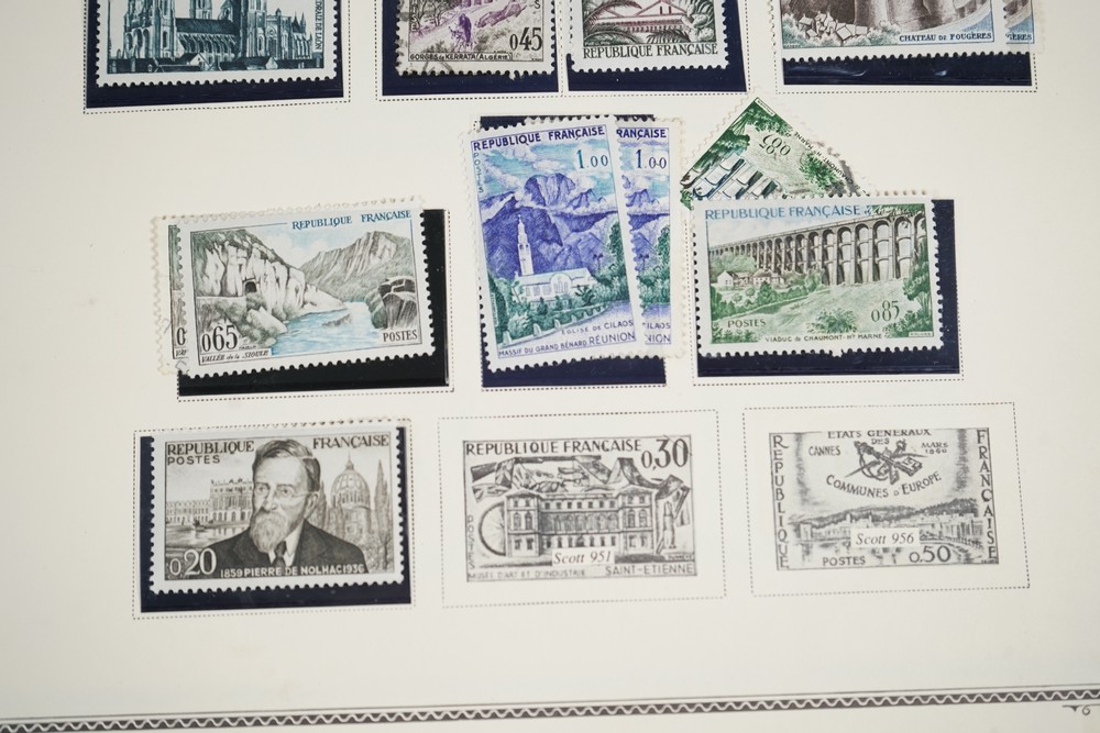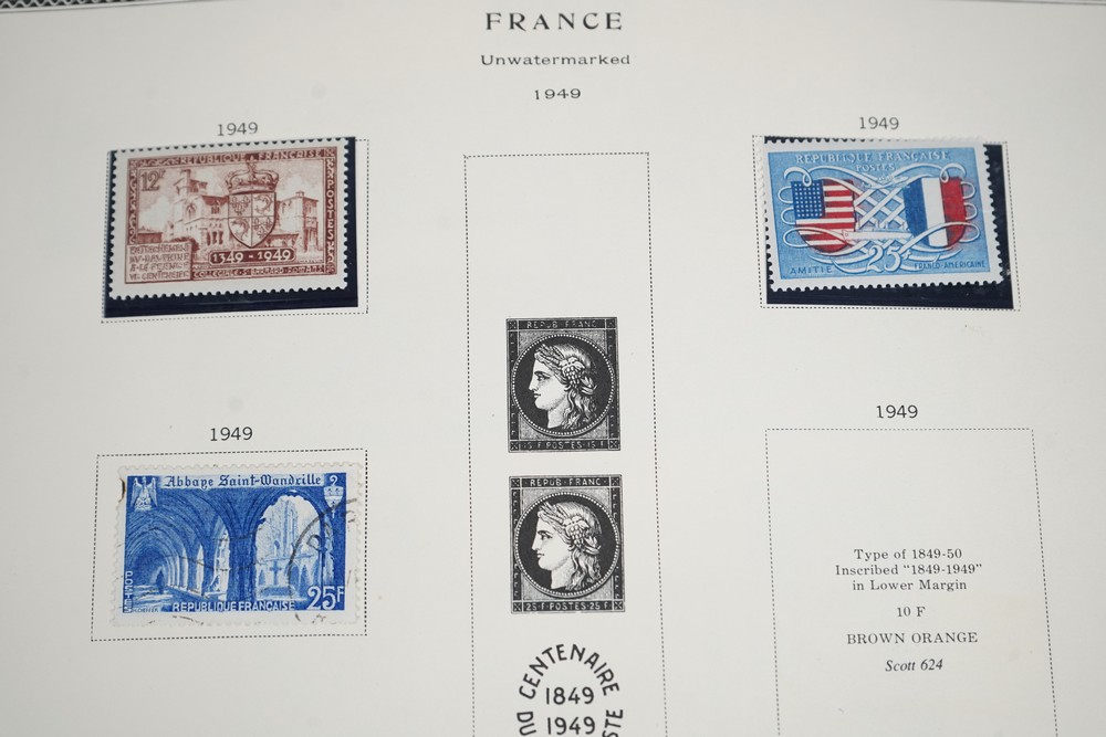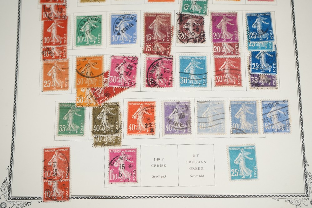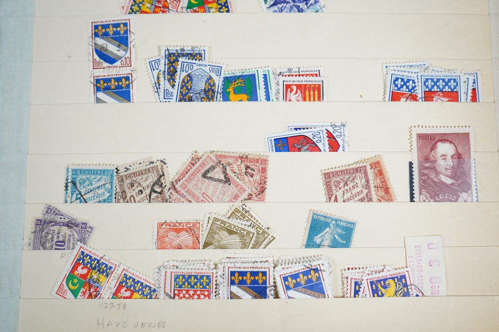 FRANCE 1850s-1970 COLLECTION OF 2,100+ STAMPS MINT & USED STORED ON ALBUM PAGES. INCLUDES SCOTT BINDER BUT THERE ARE NO PINS OR PEGS TO ATTACH PAGES TO.