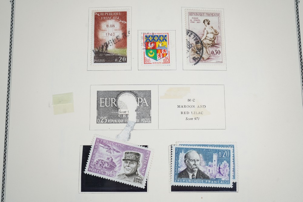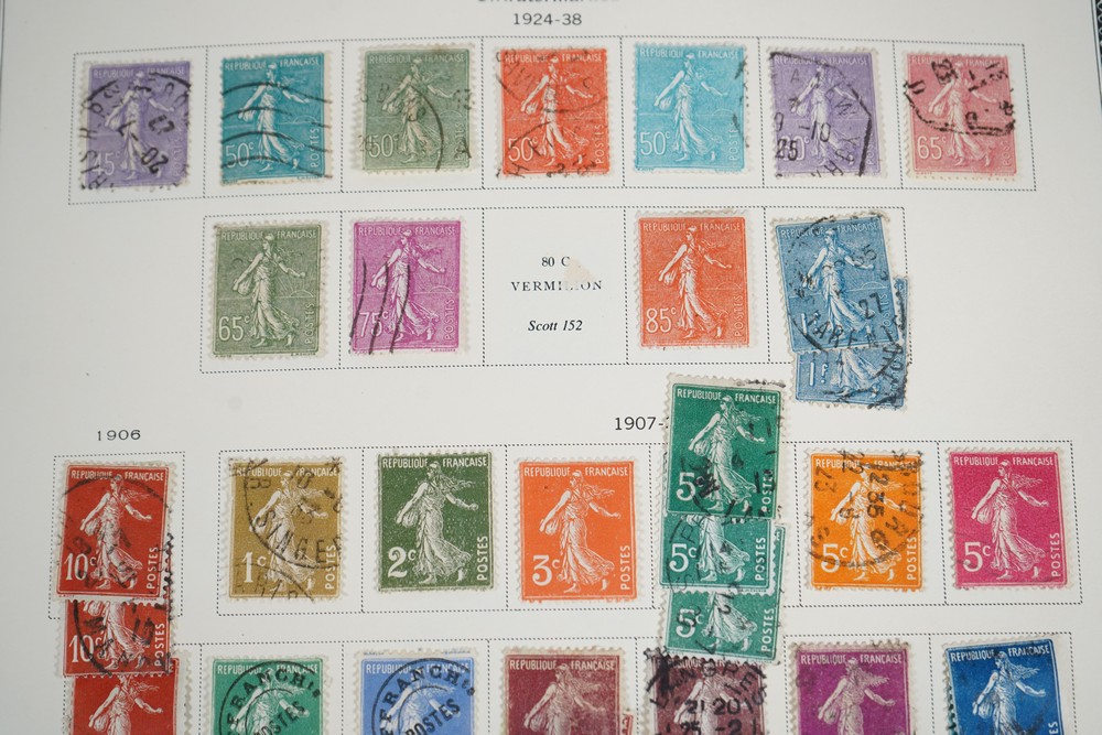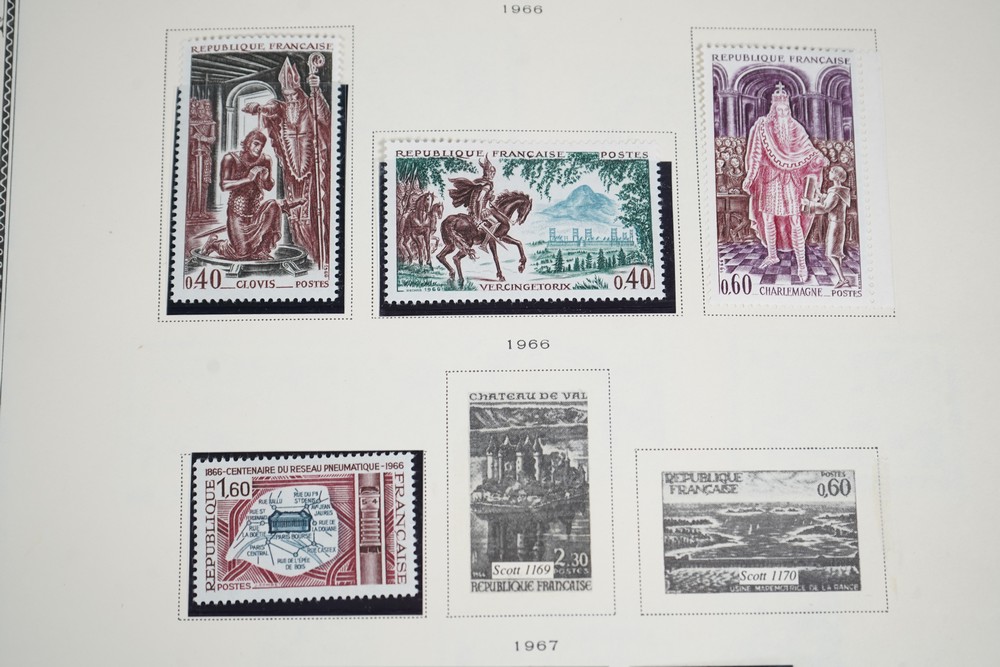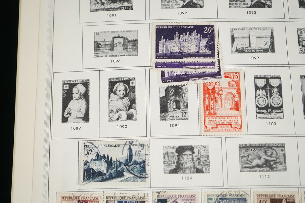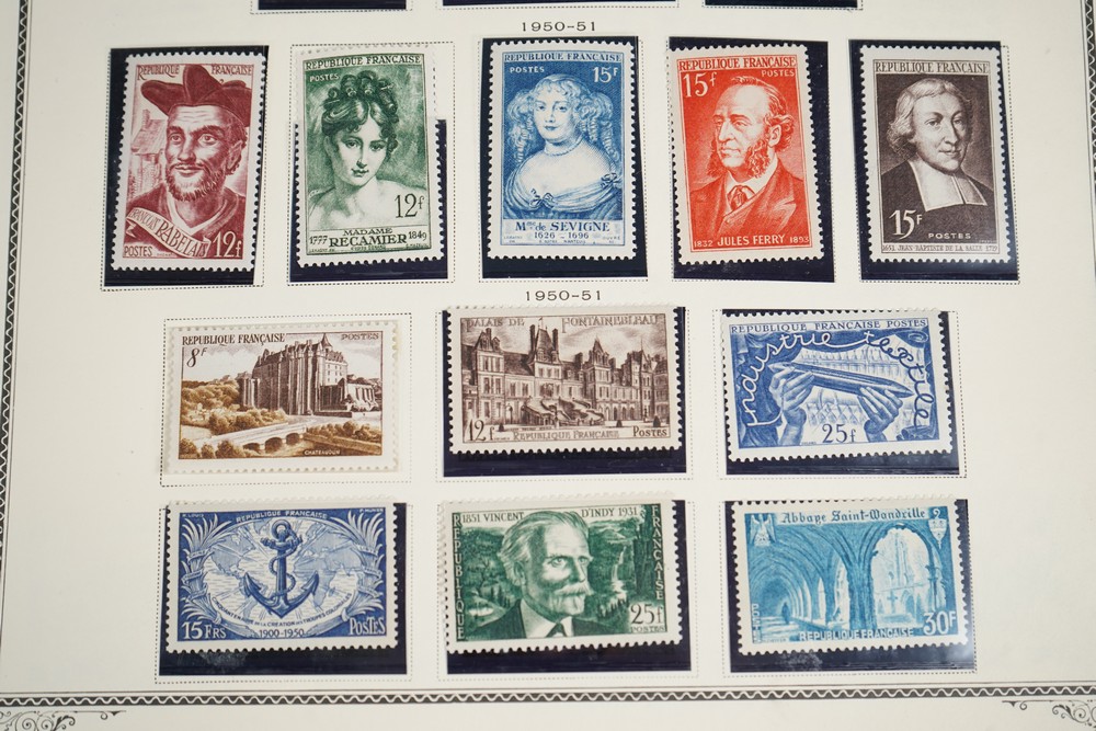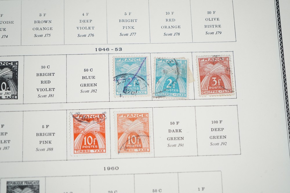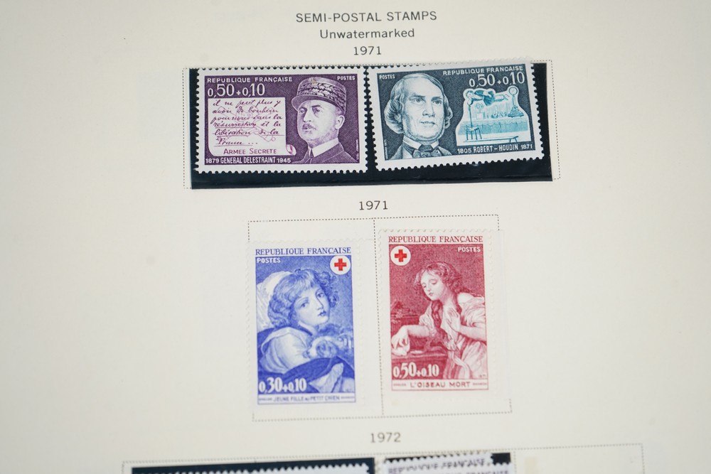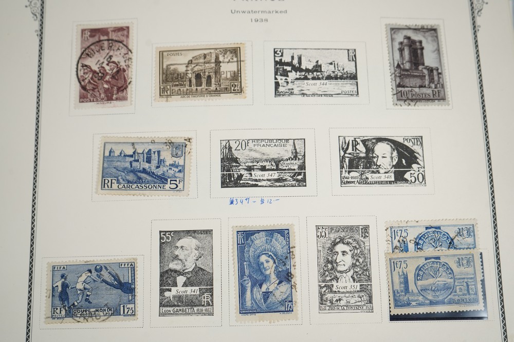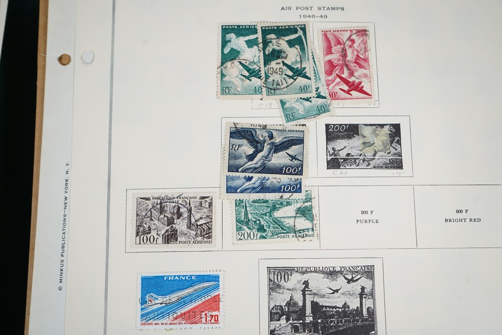 FRANCE 1850s-1970 COLLECTION OF 2,100+ STAMPS MINT & USED STORED ON ALBUM PAGES. INCLUDES SCOTT BINDER BUT THERE ARE NO PINS OR PEGS TO ATTACH PAGES TO.