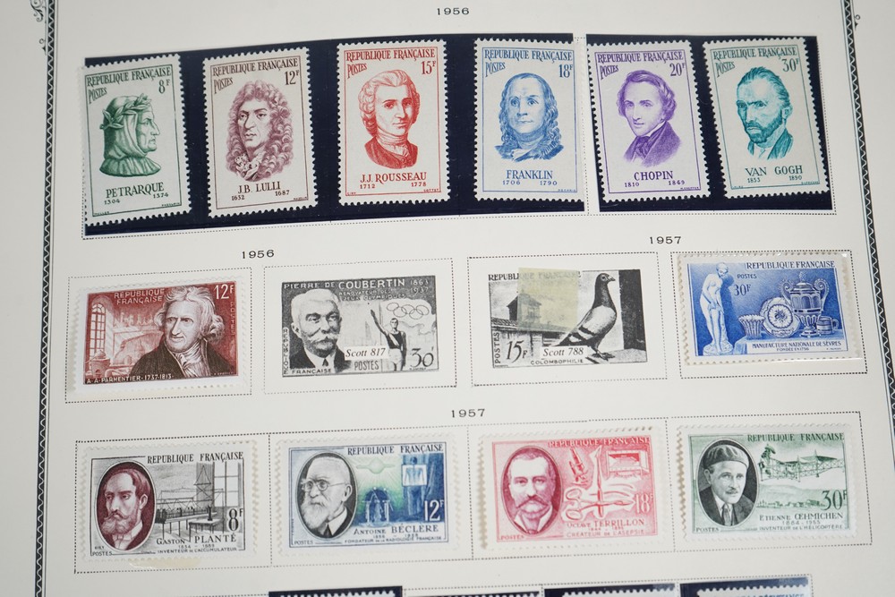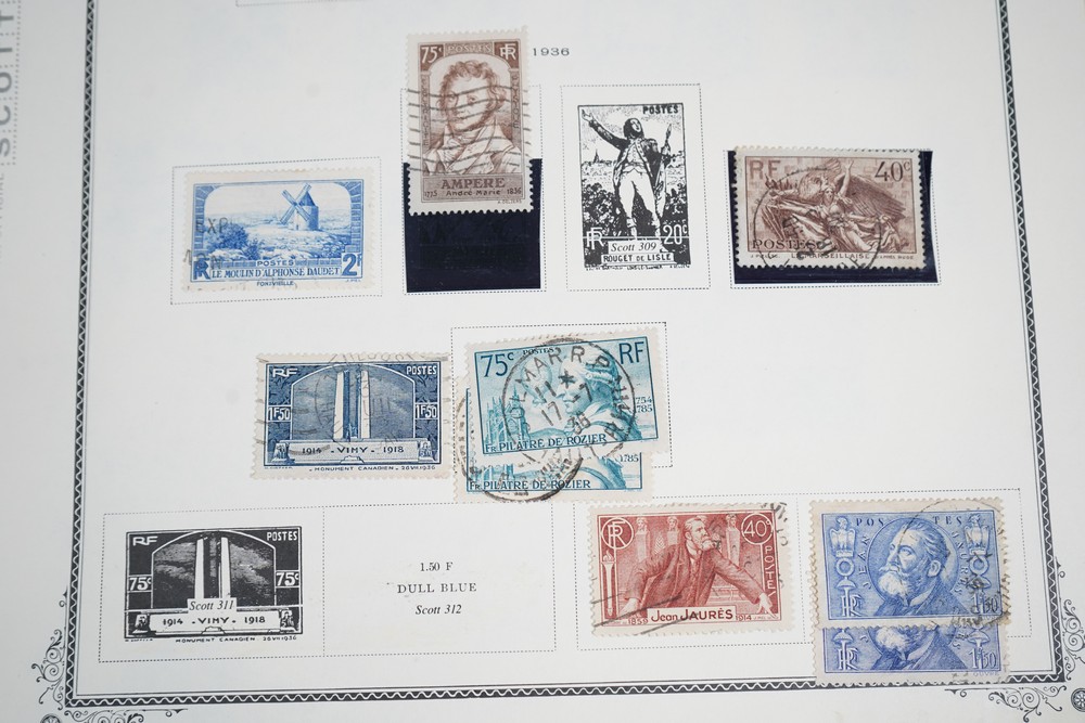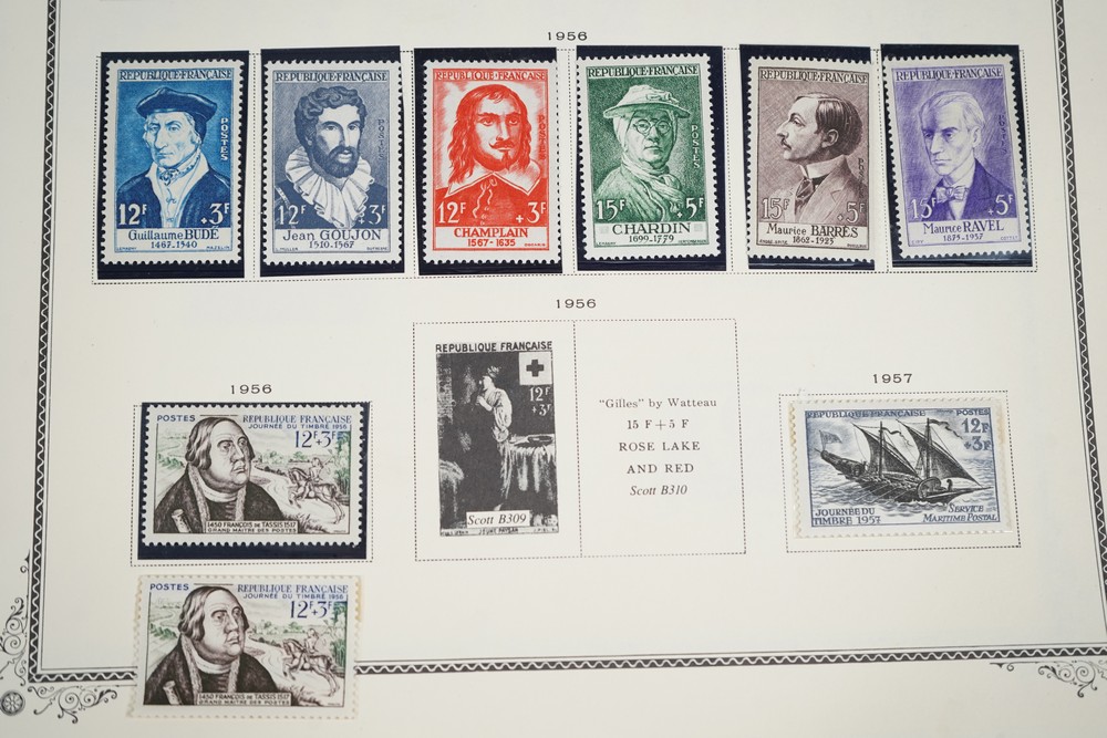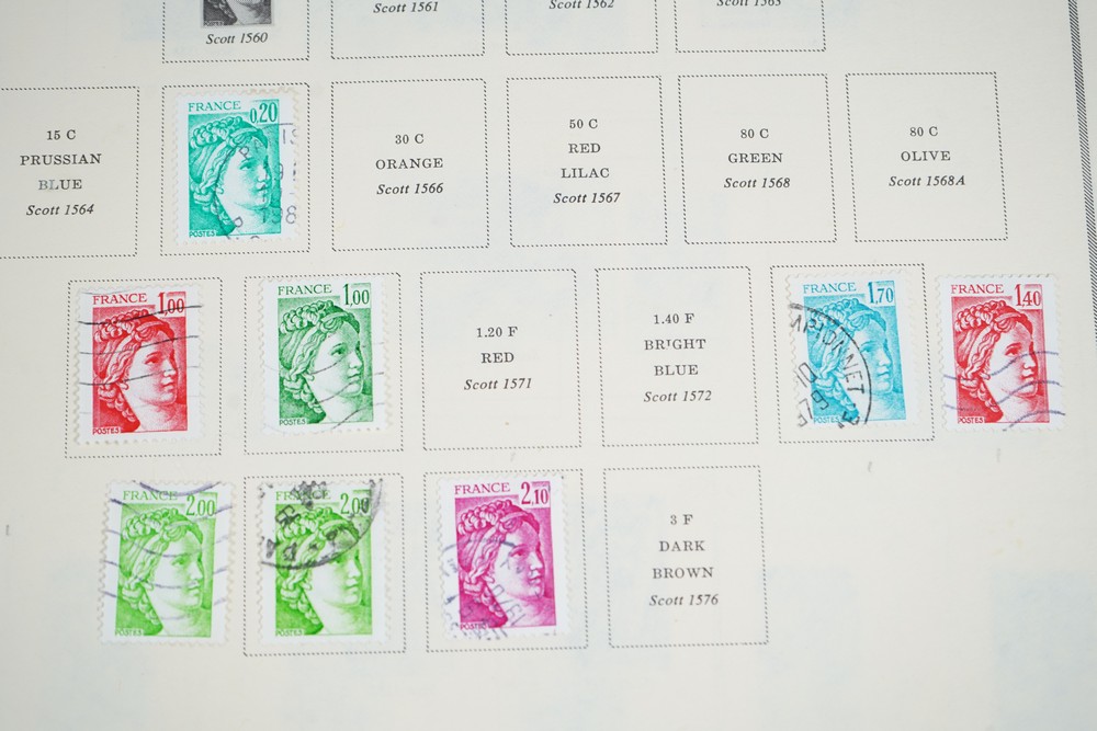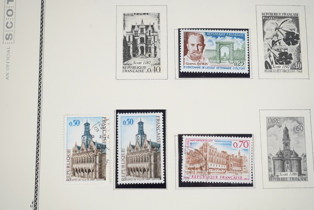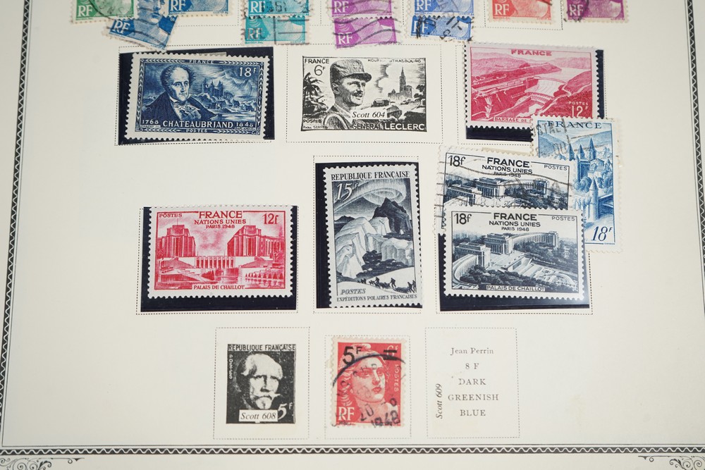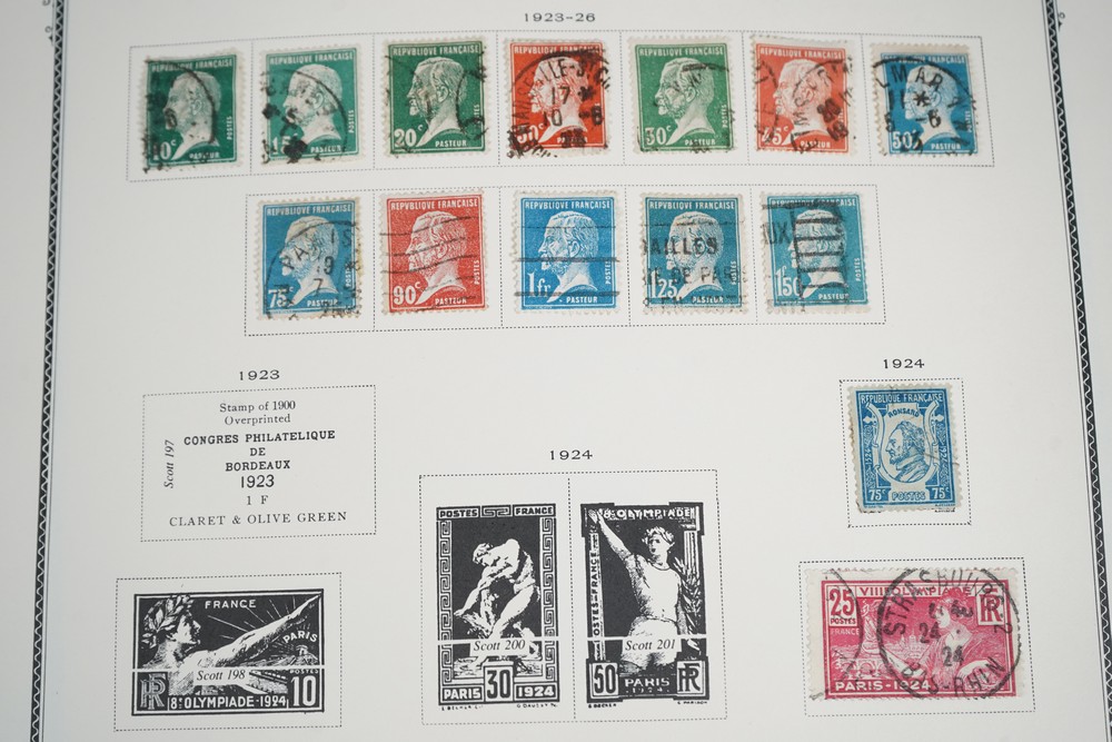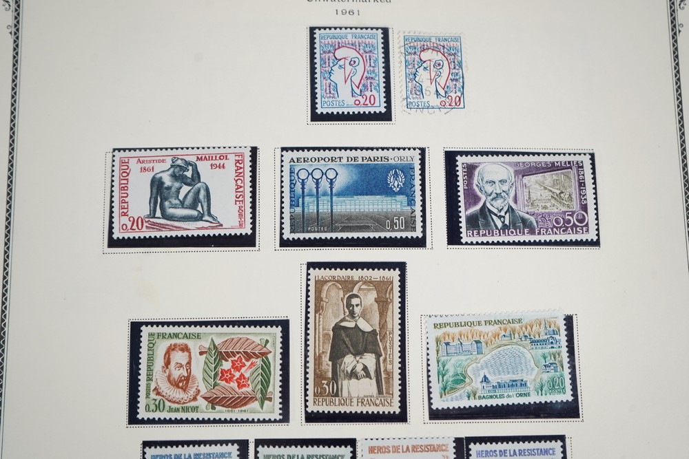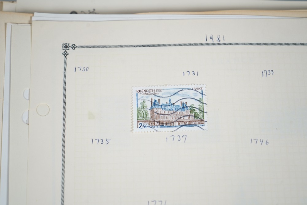 FRANCE 1850s-1970 COLLECTION OF 2,100+ STAMPS MINT & USED STORED ON ALBUM PAGES. INCLUDES SCOTT BINDER BUT THERE ARE NO PINS OR PEGS TO ATTACH PAGES TO.