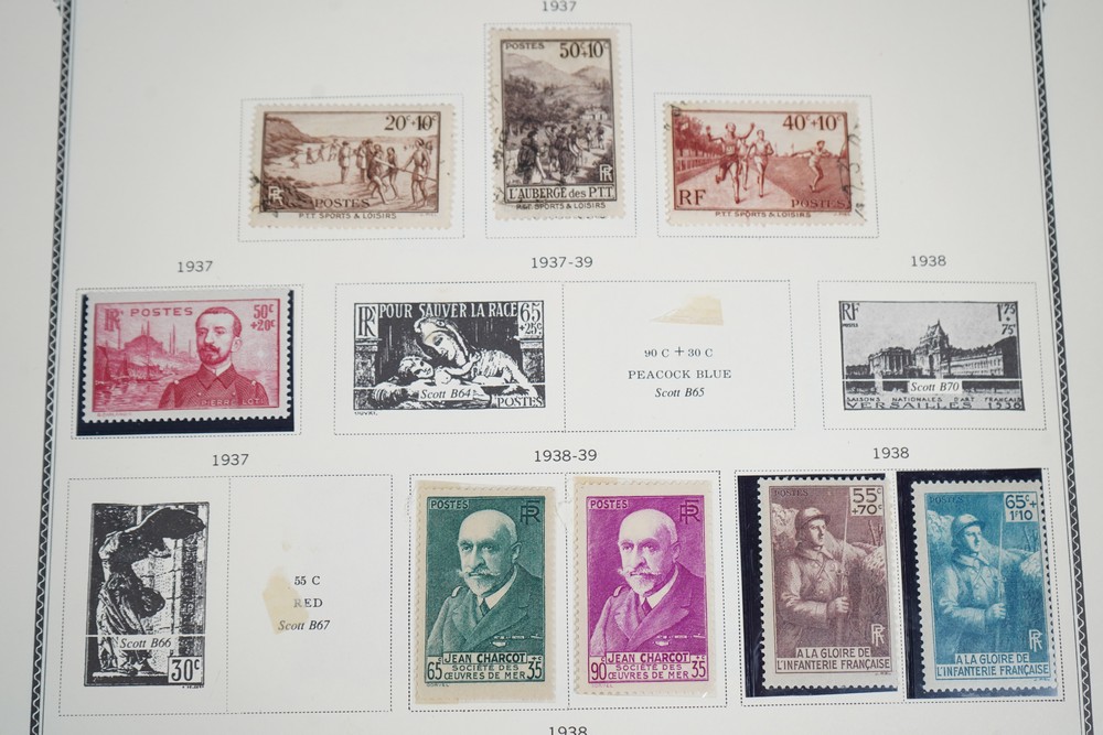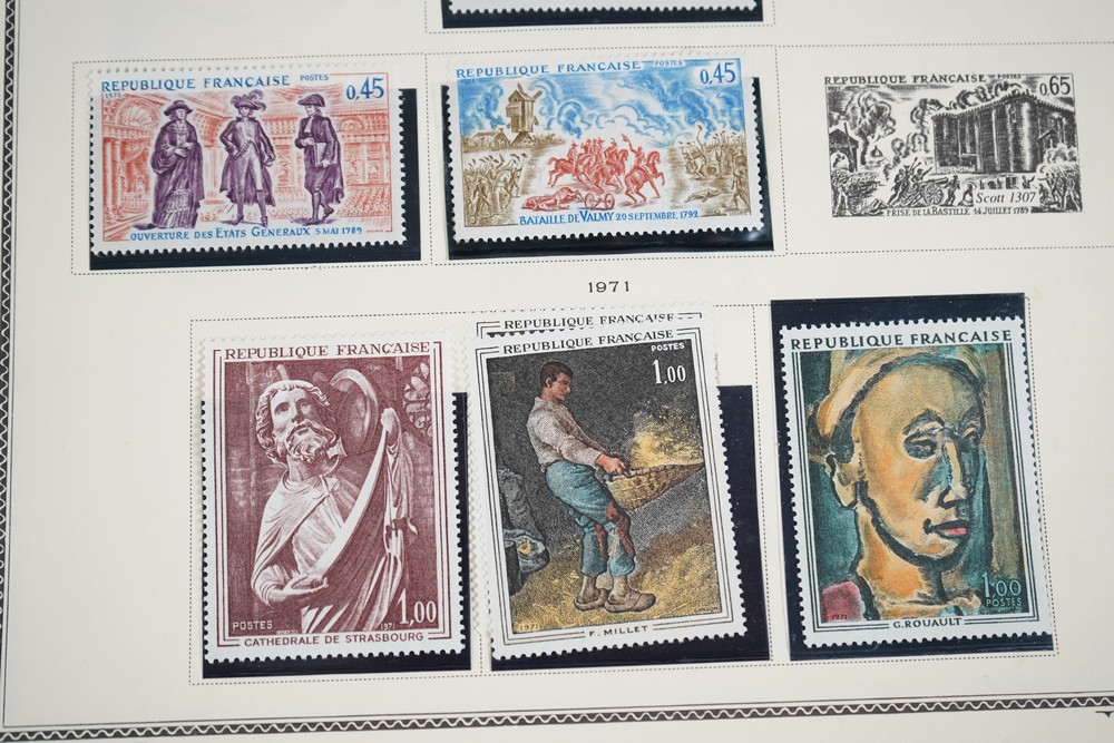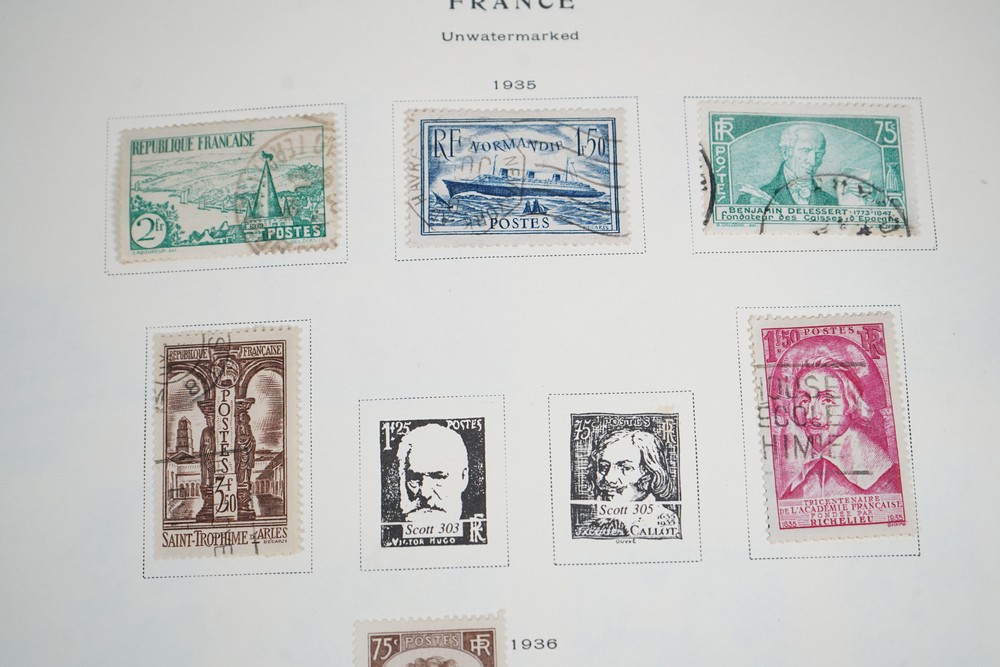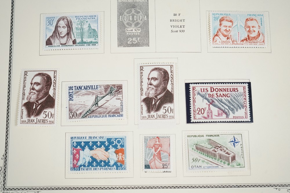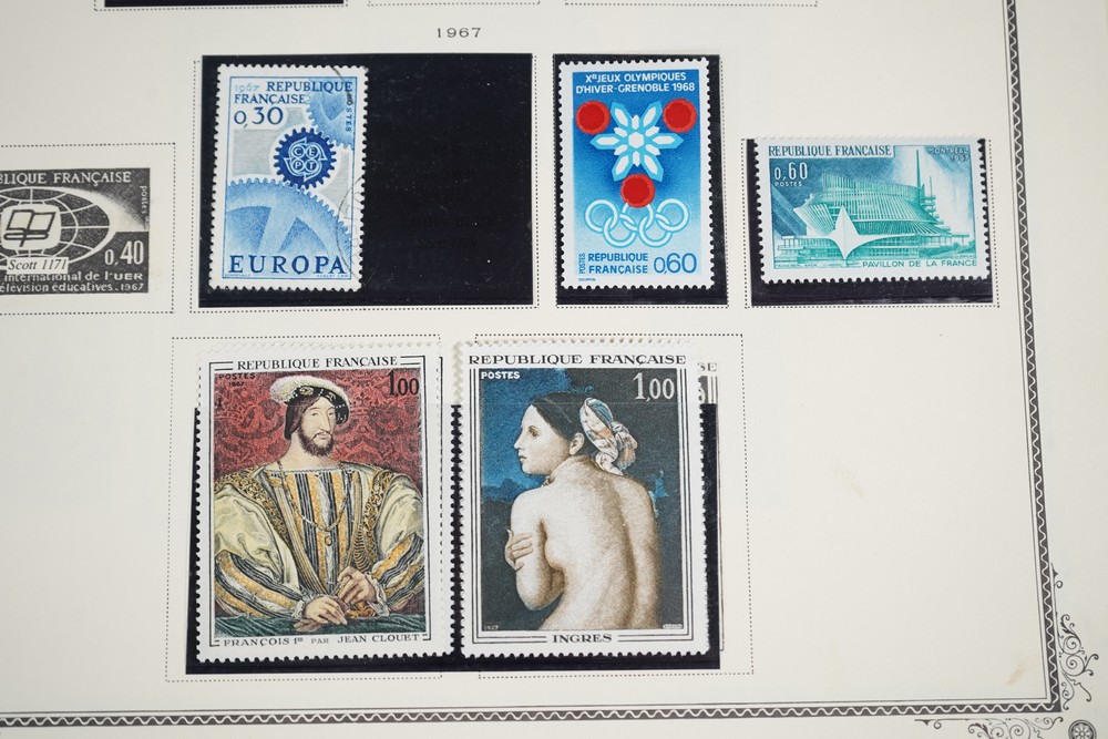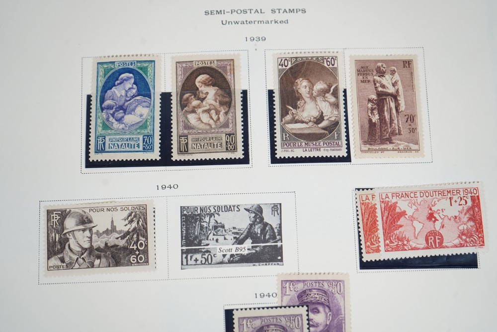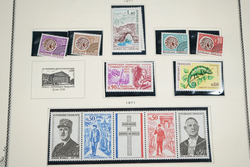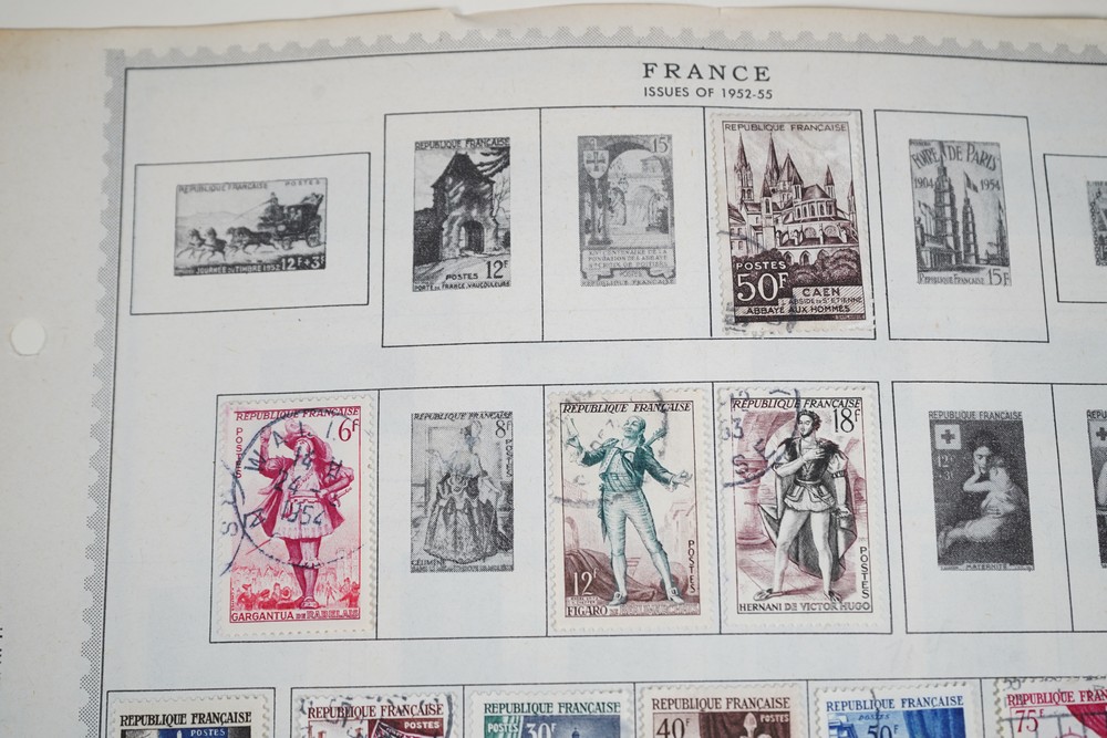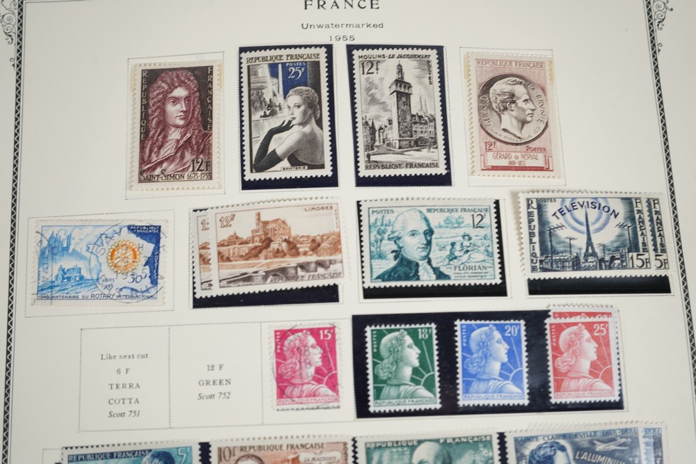 FRANCE 1850s-1970 COLLECTION OF 2,100+ STAMPS MINT & USED STORED ON ALBUM PAGES. INCLUDES SCOTT BINDER BUT THERE ARE NO PINS OR PEGS TO ATTACH PAGES TO.