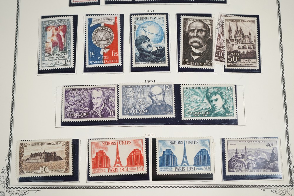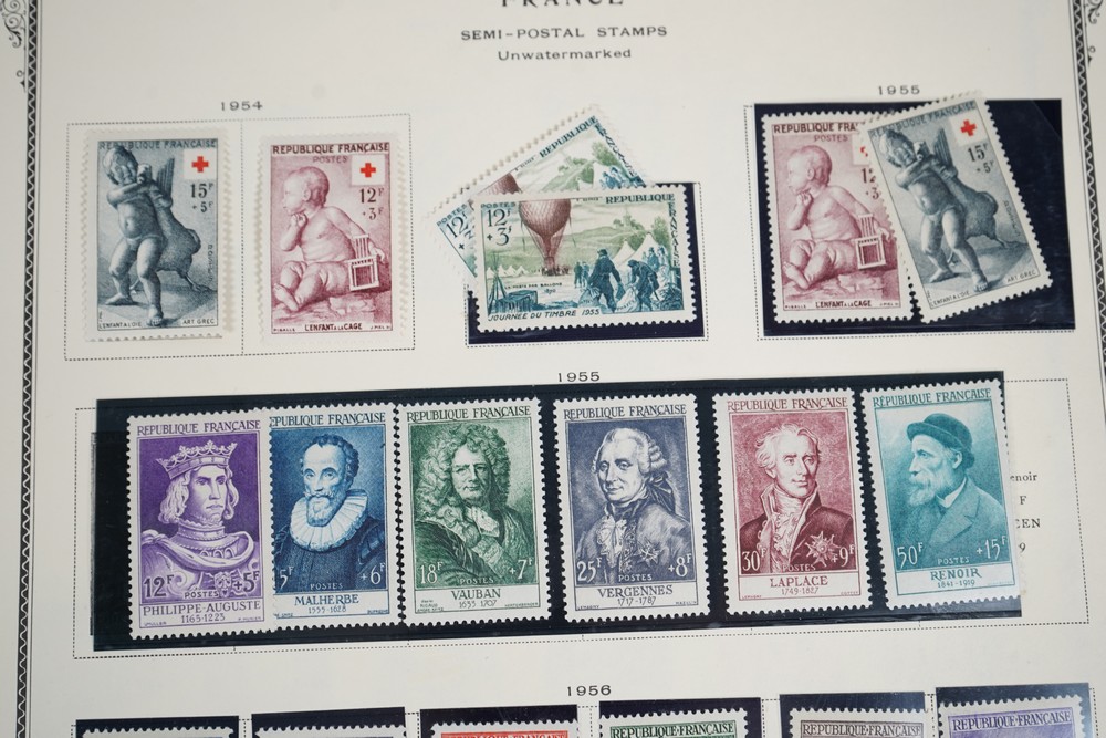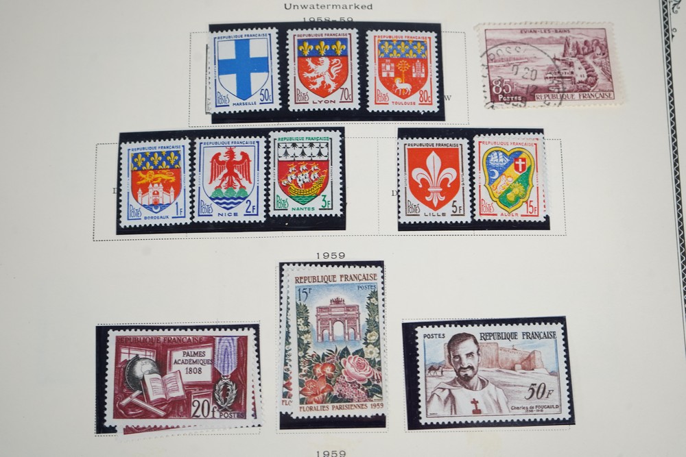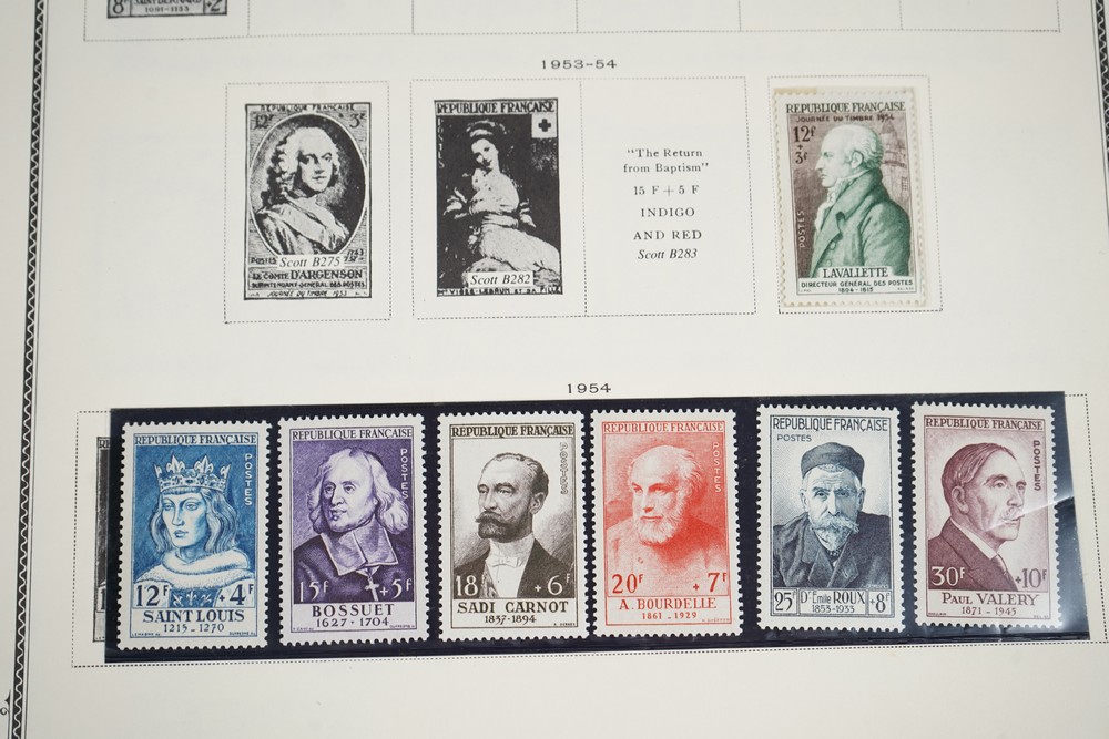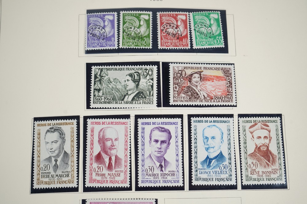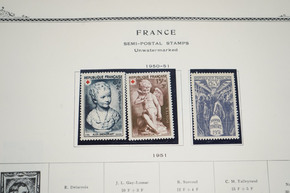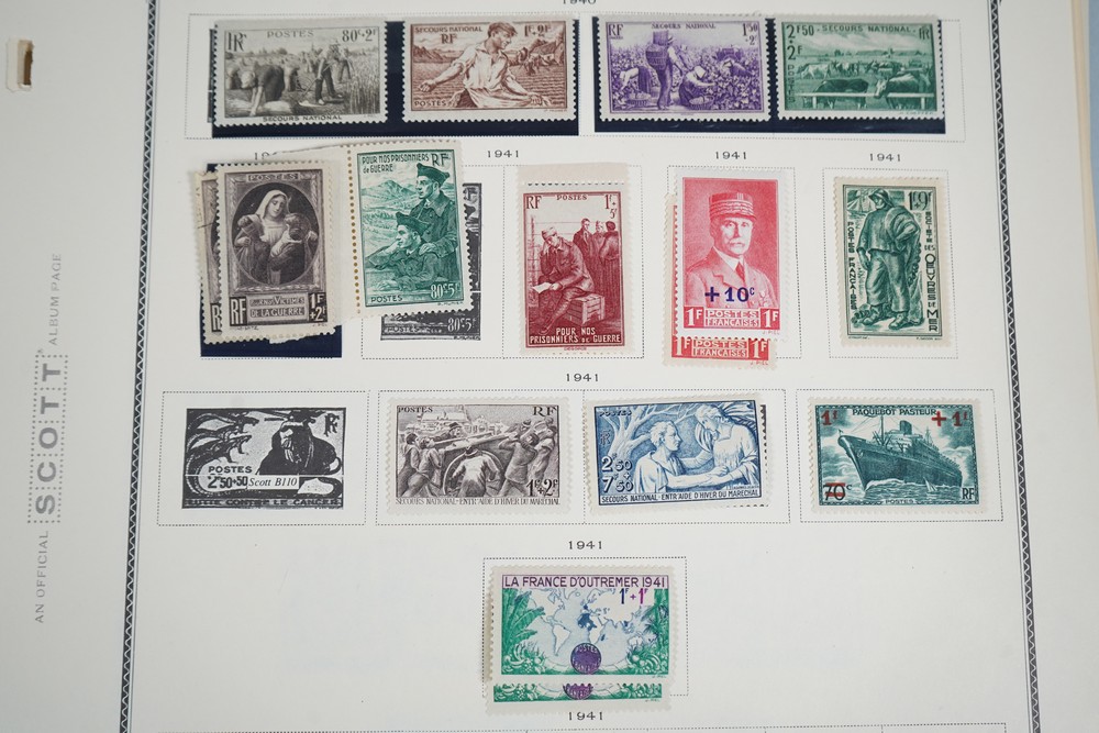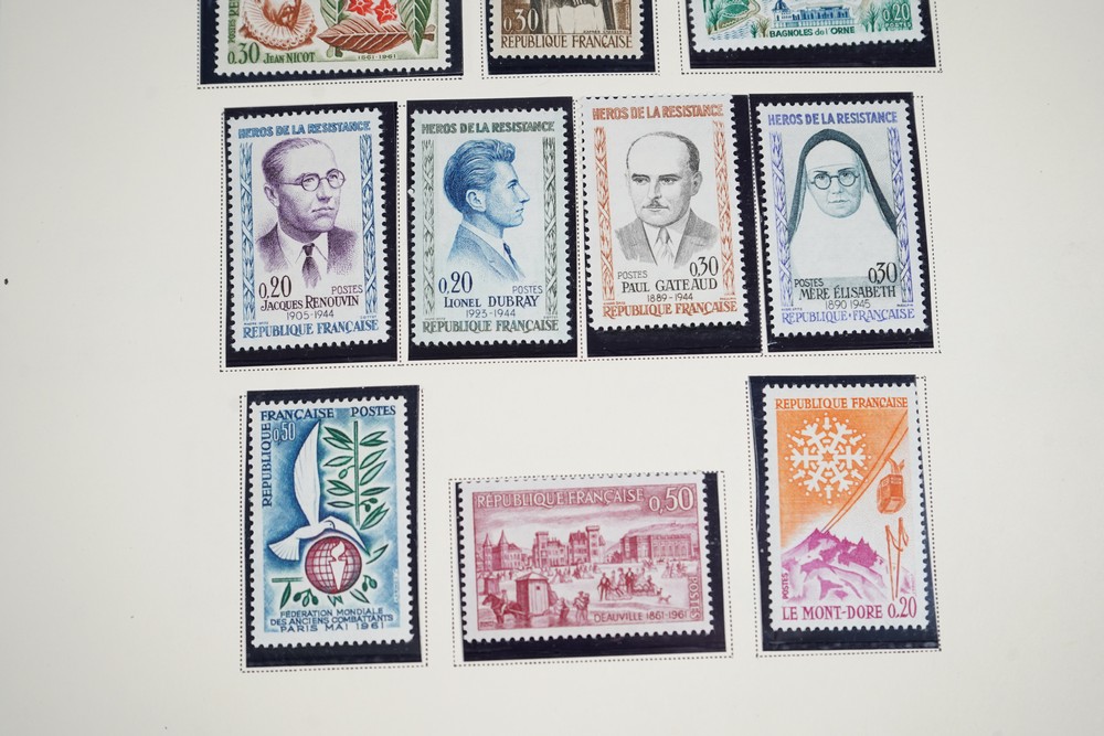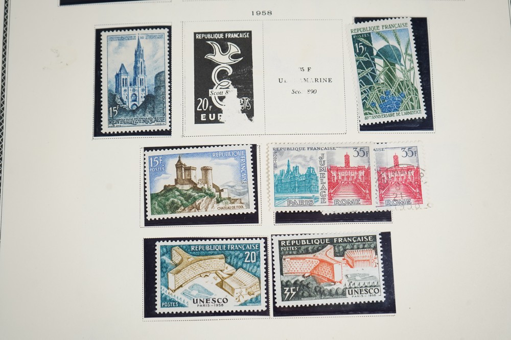 FRANCE 1850s-1970 COLLECTION OF 2,100+ STAMPS MINT & USED STORED ON ALBUM PAGES. INCLUDES SCOTT BINDER BUT THERE ARE NO PINS OR PEGS TO ATTACH PAGES TO.