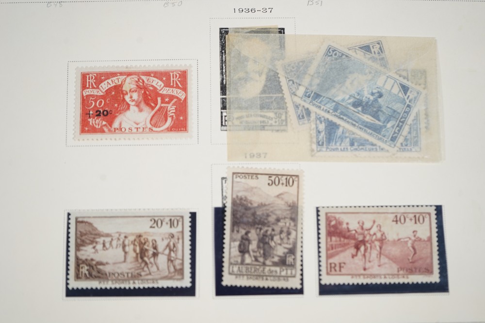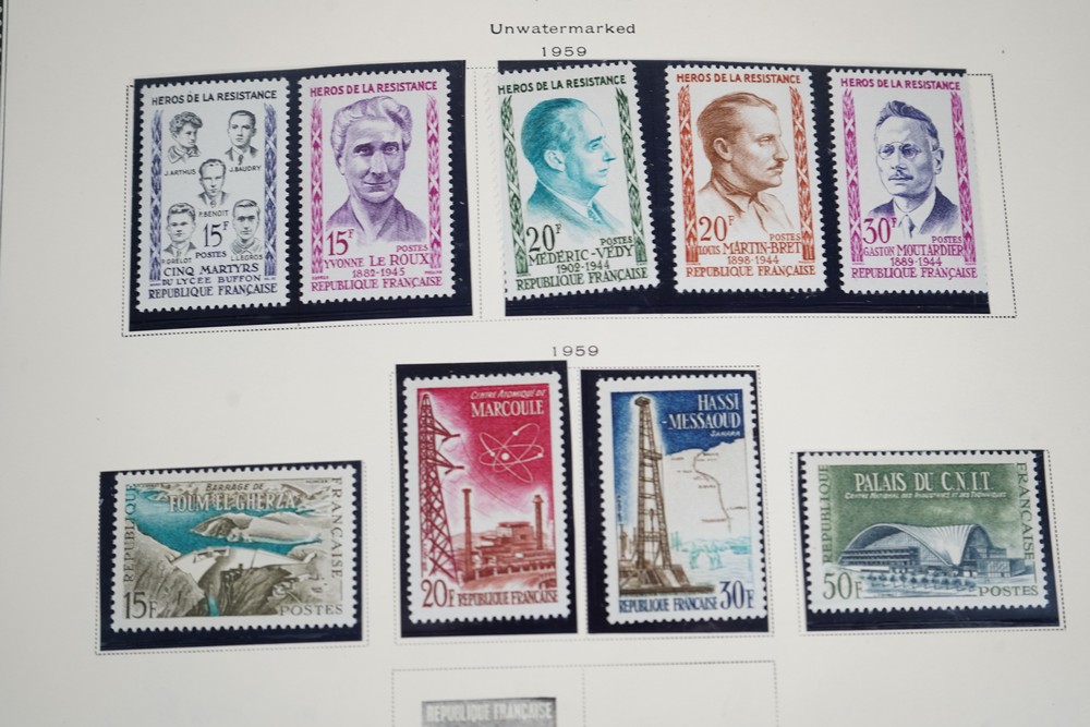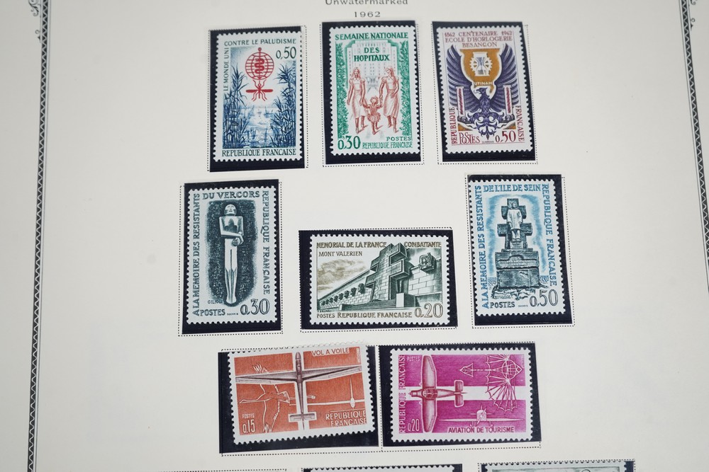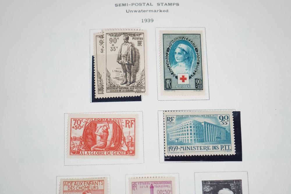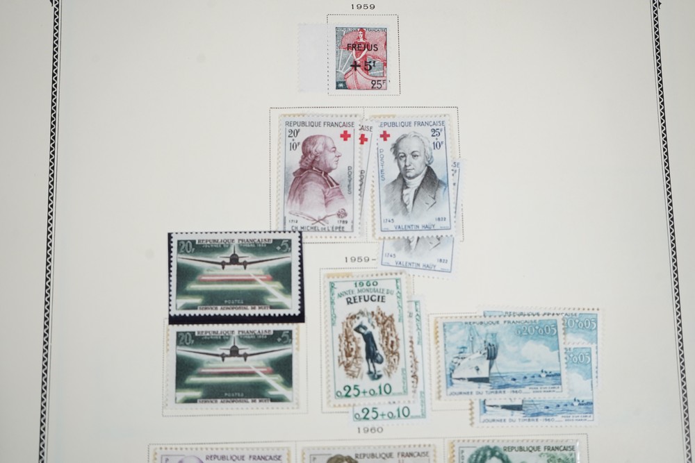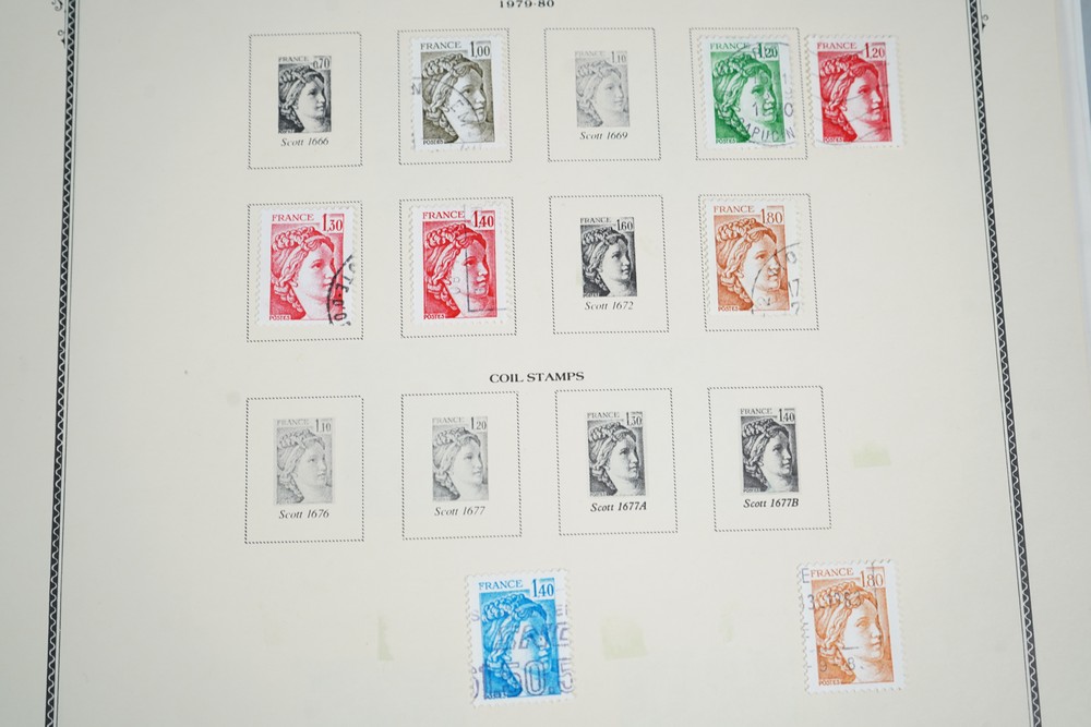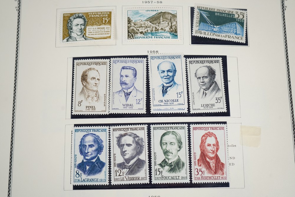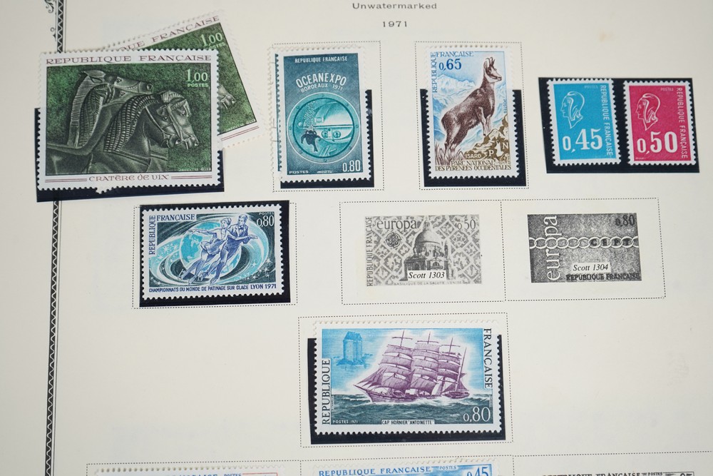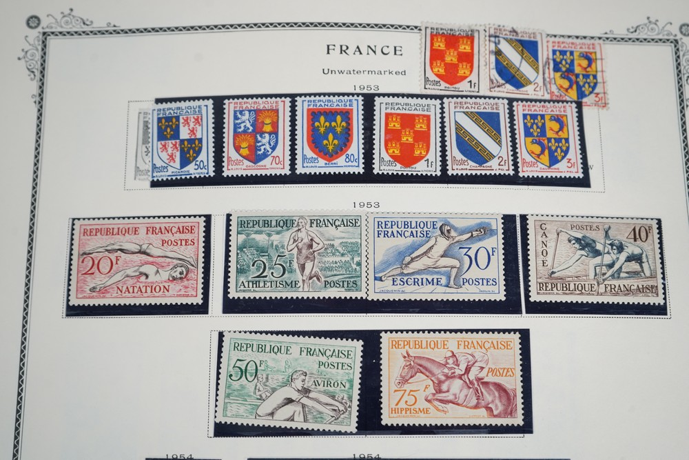 FRANCE 1850s-1970 COLLECTION OF 2,100+ STAMPS MINT & USED STORED ON ALBUM PAGES. INCLUDES SCOTT BINDER BUT THERE ARE NO PINS OR PEGS TO ATTACH PAGES TO.