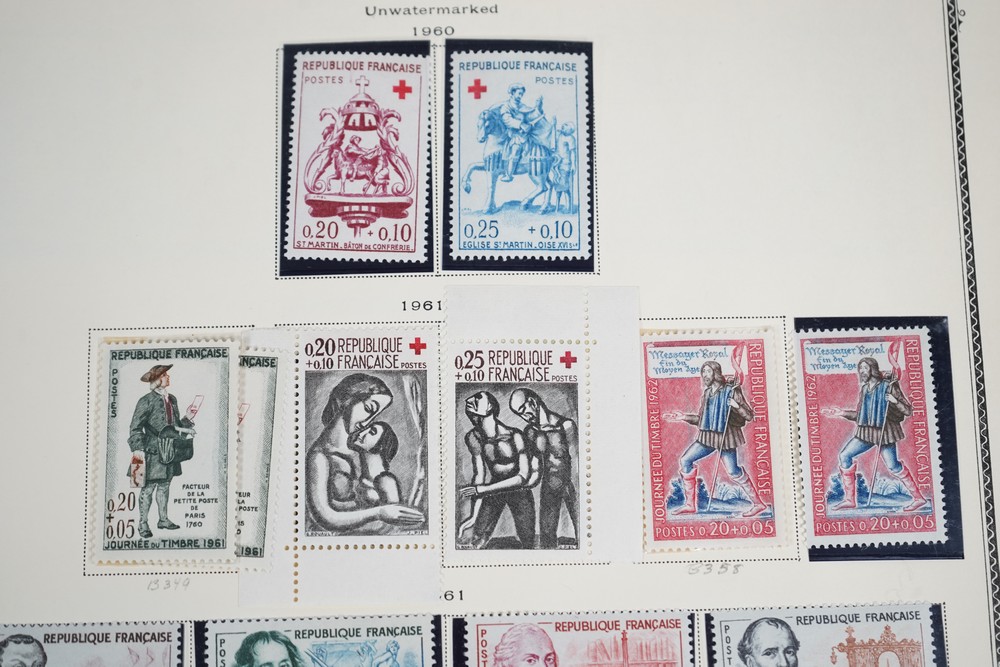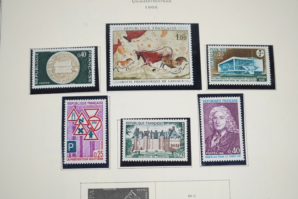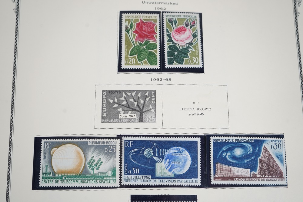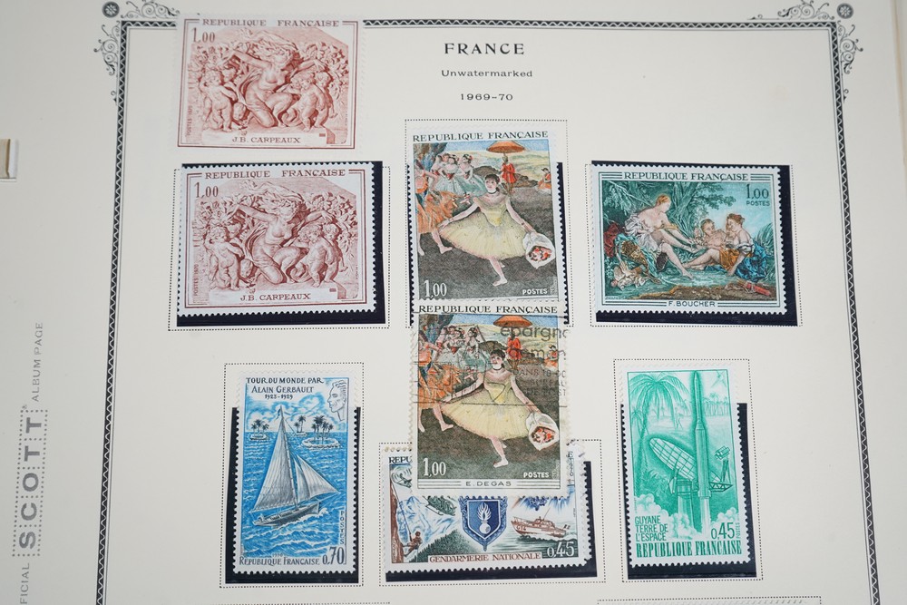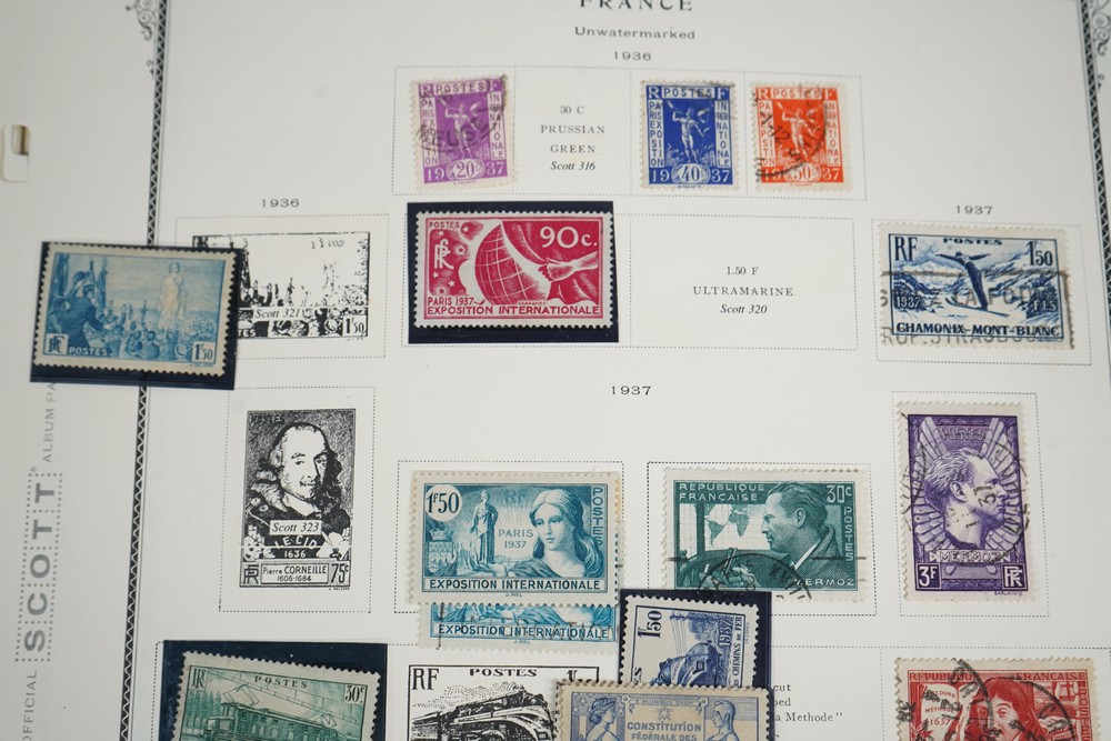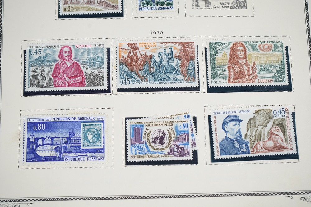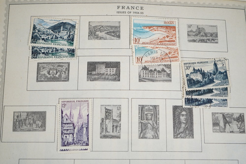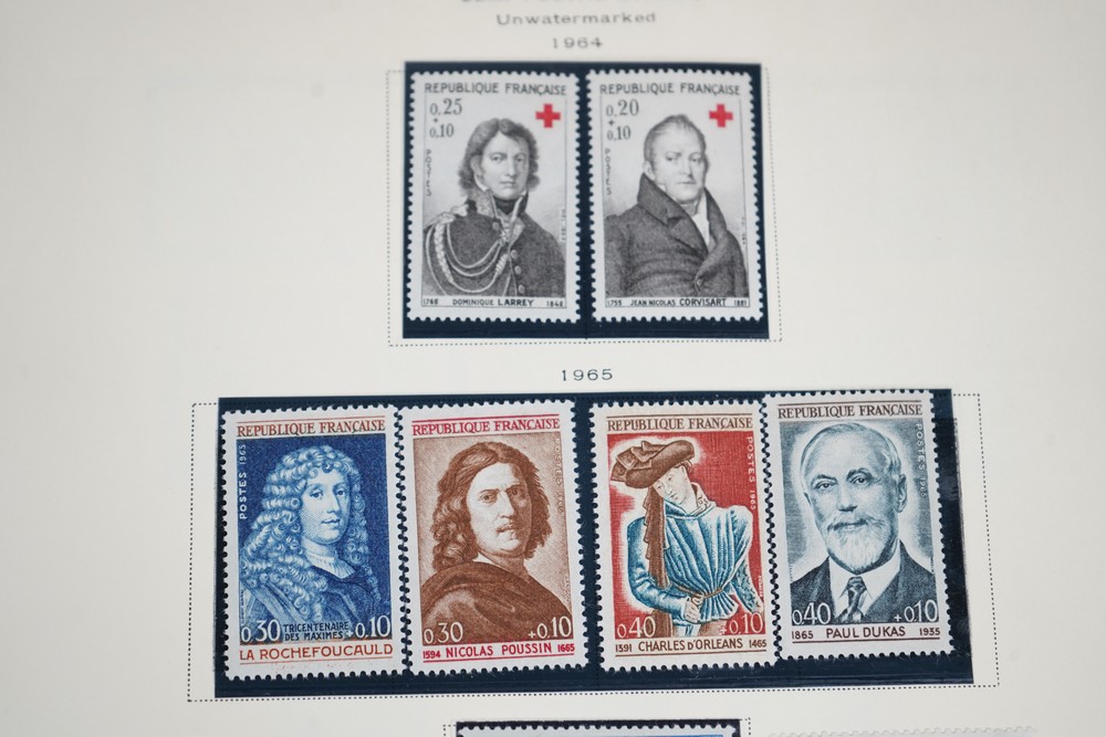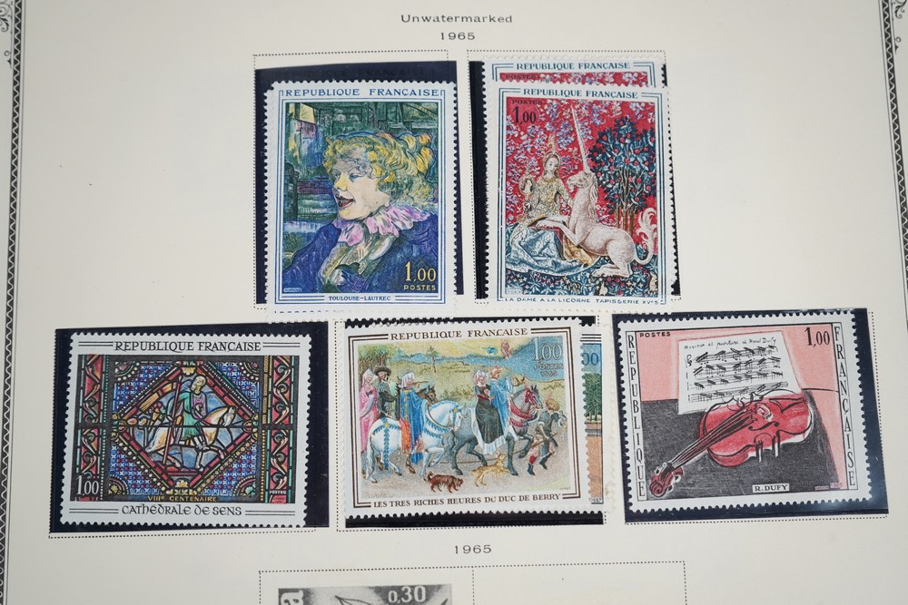 FRANCE 1850s-1970 COLLECTION OF 2,100+ STAMPS MINT & USED STORED ON ALBUM PAGES. INCLUDES SCOTT BINDER BUT THERE ARE NO PINS OR PEGS TO ATTACH PAGES TO.