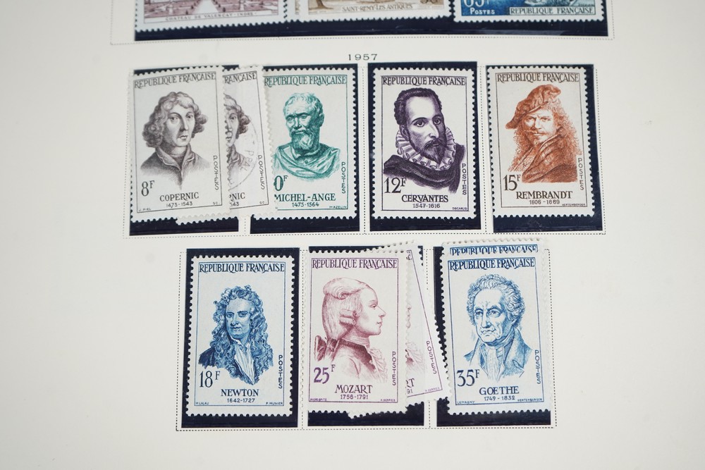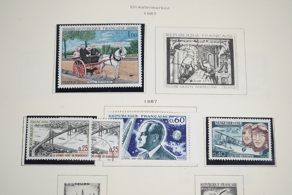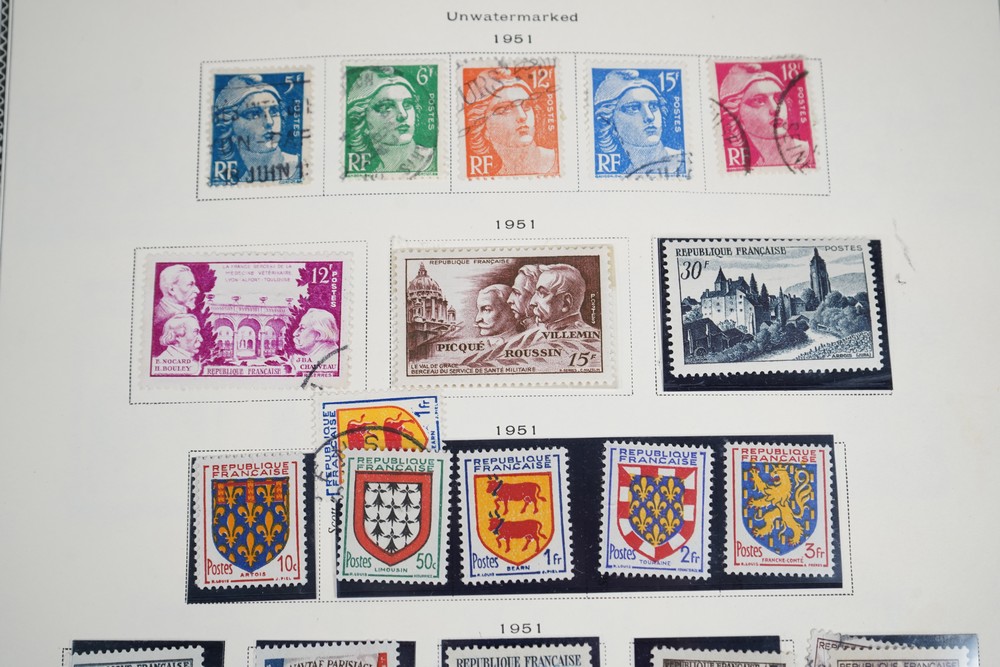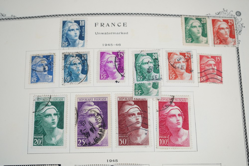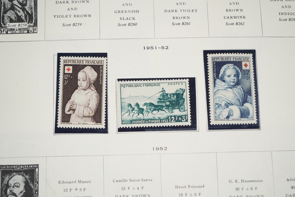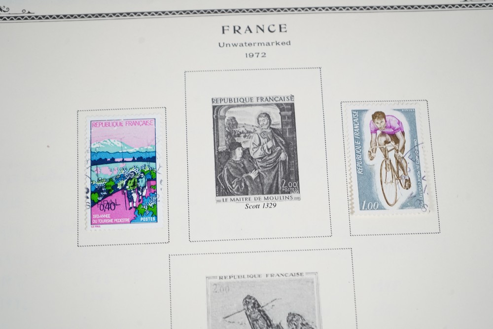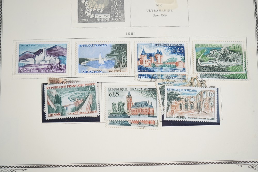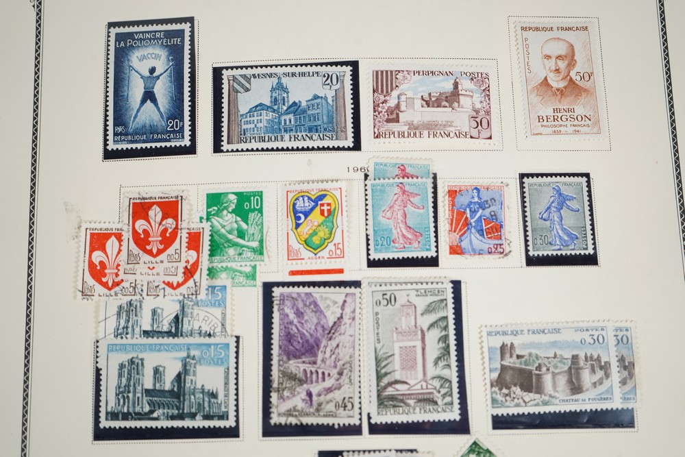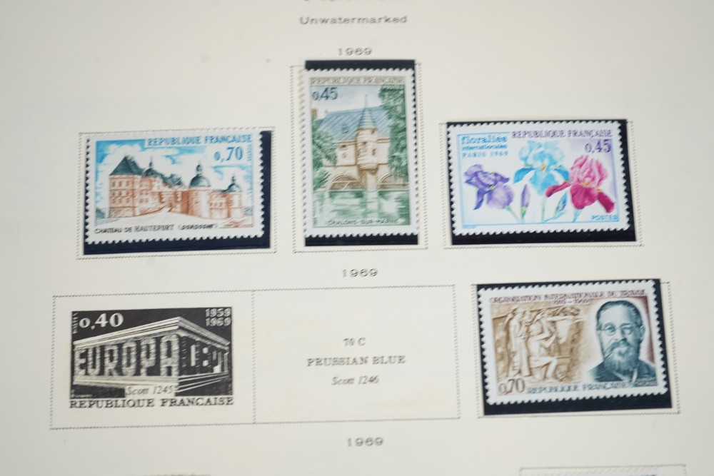 FRANCE 1850s-1970 COLLECTION OF 2,100+ STAMPS MINT & USED STORED ON ALBUM PAGES. INCLUDES SCOTT BINDER BUT THERE ARE NO PINS OR PEGS TO ATTACH PAGES TO.