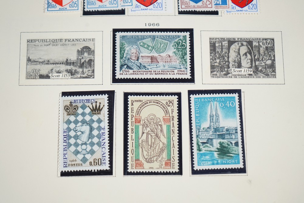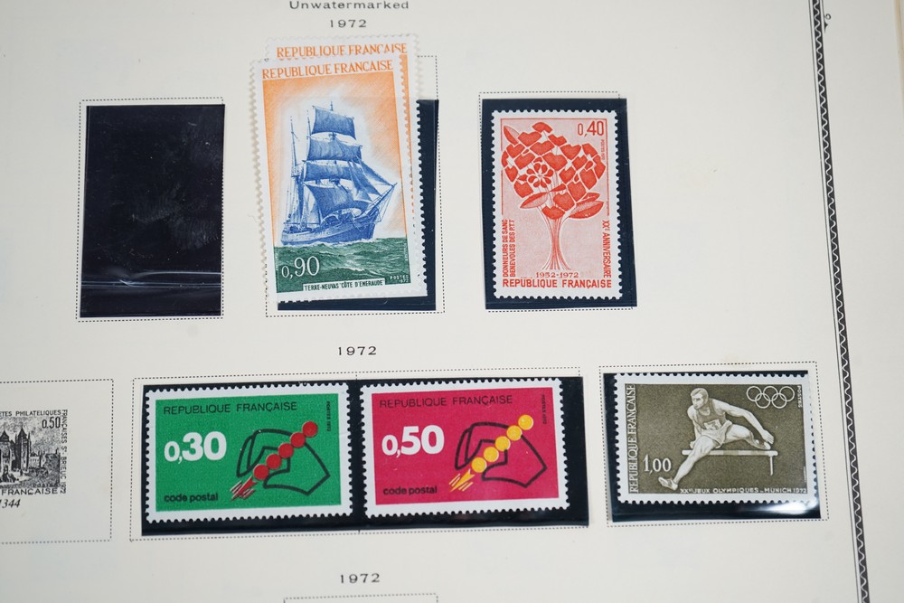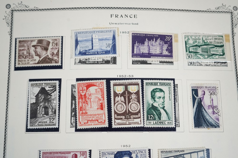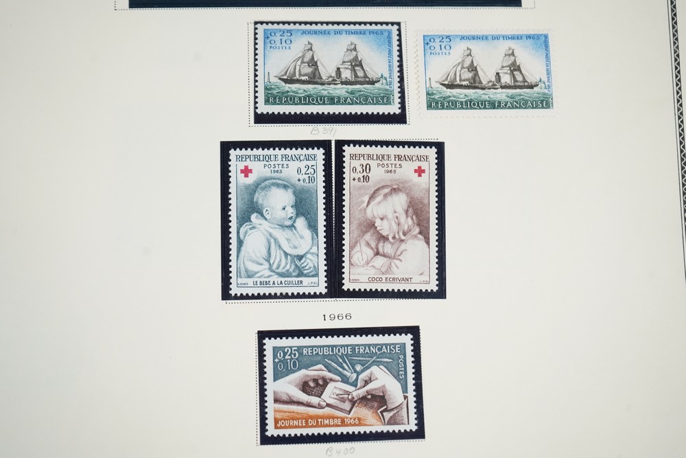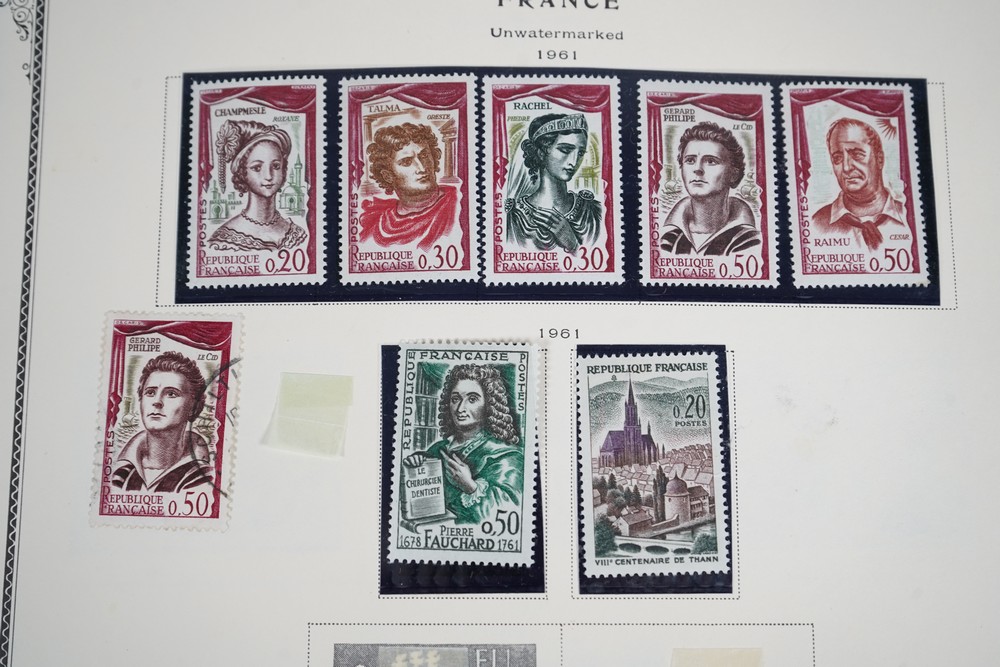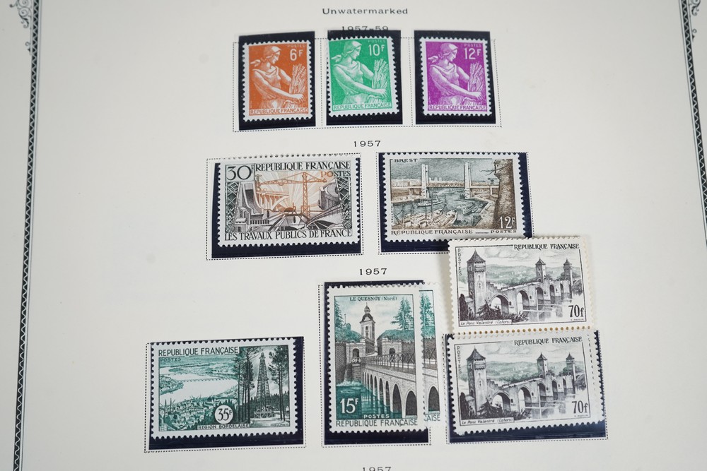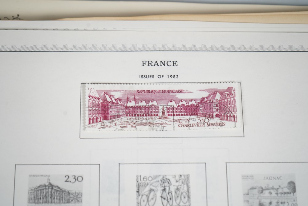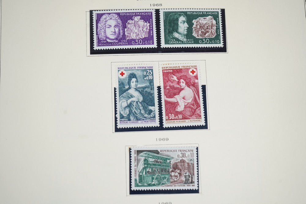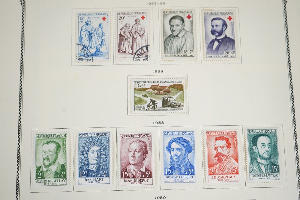 FRANCE 1850s-1970 COLLECTION OF 2,100+ STAMPS MINT & USED STORED ON ALBUM PAGES. INCLUDES SCOTT BINDER BUT THERE ARE NO PINS OR PEGS TO ATTACH PAGES TO.