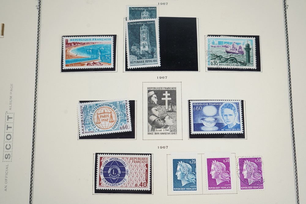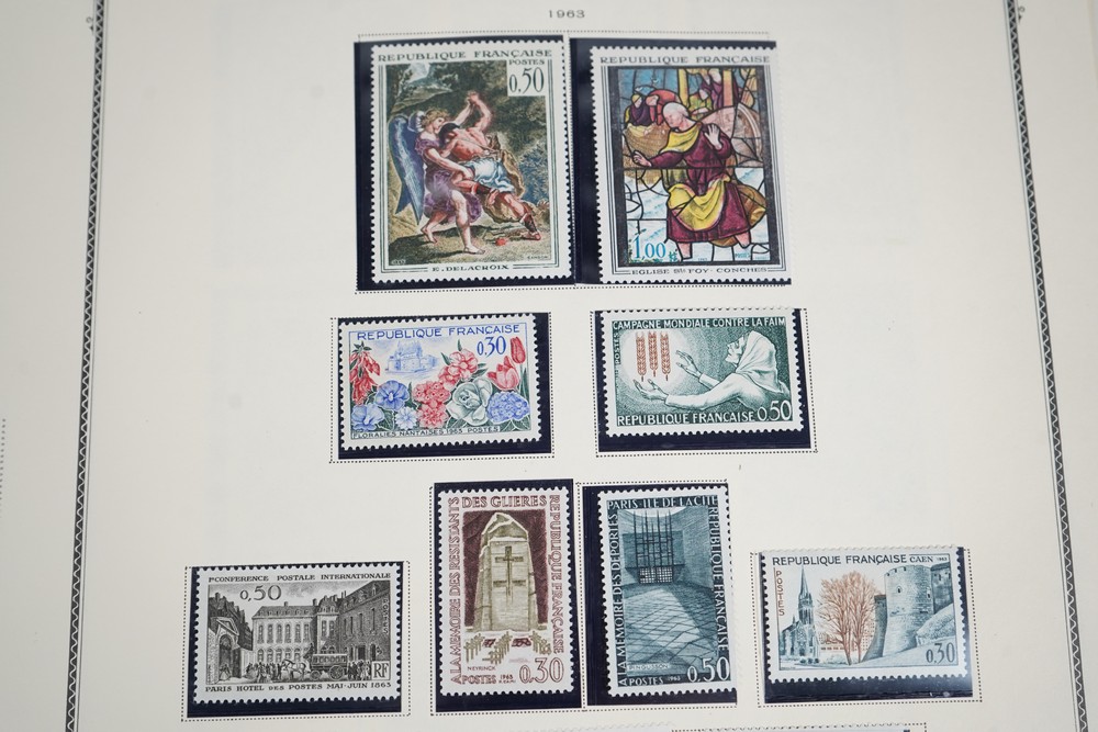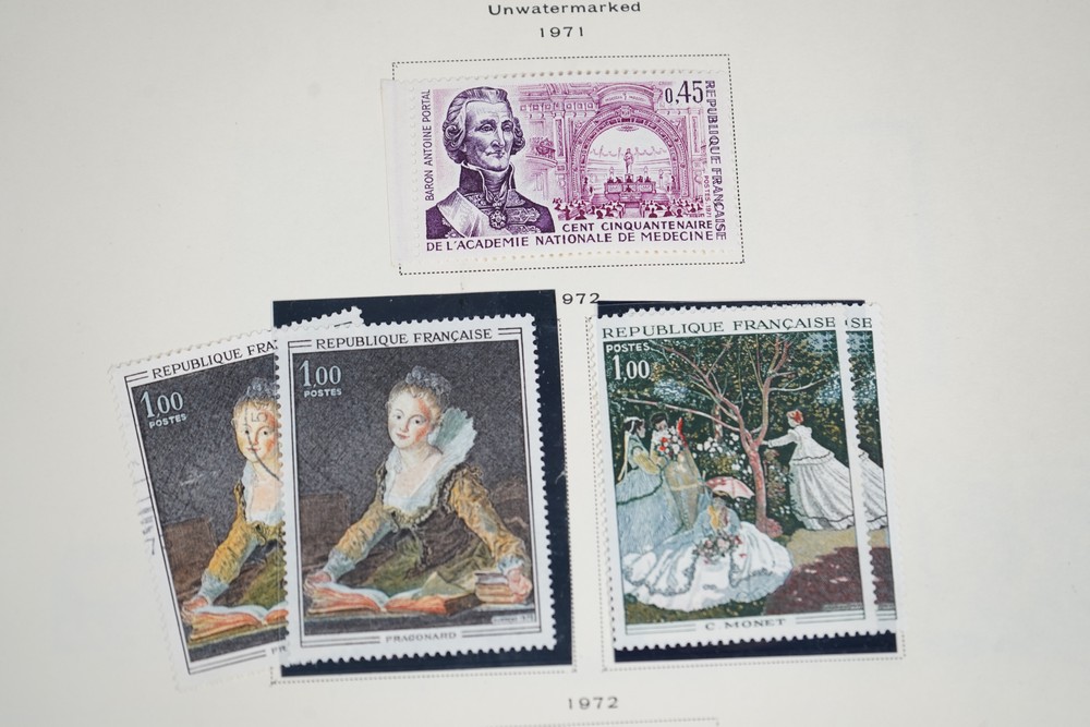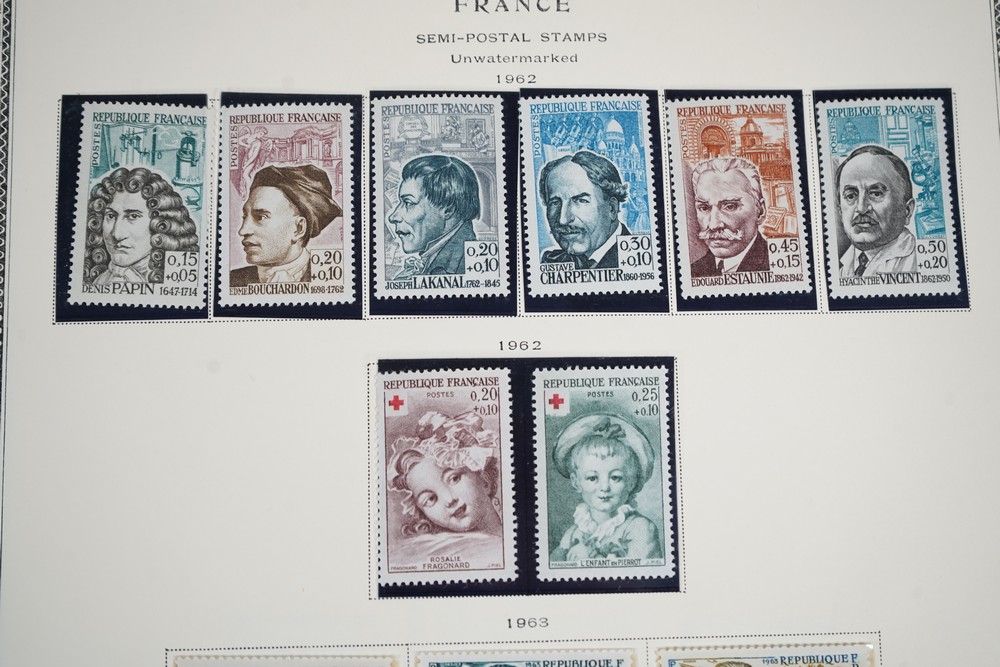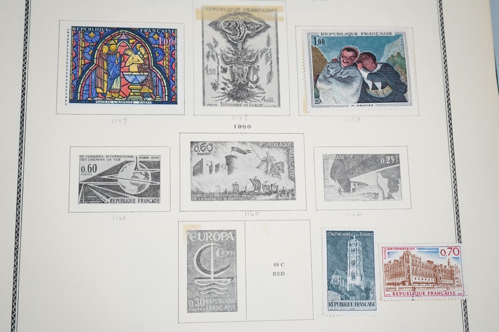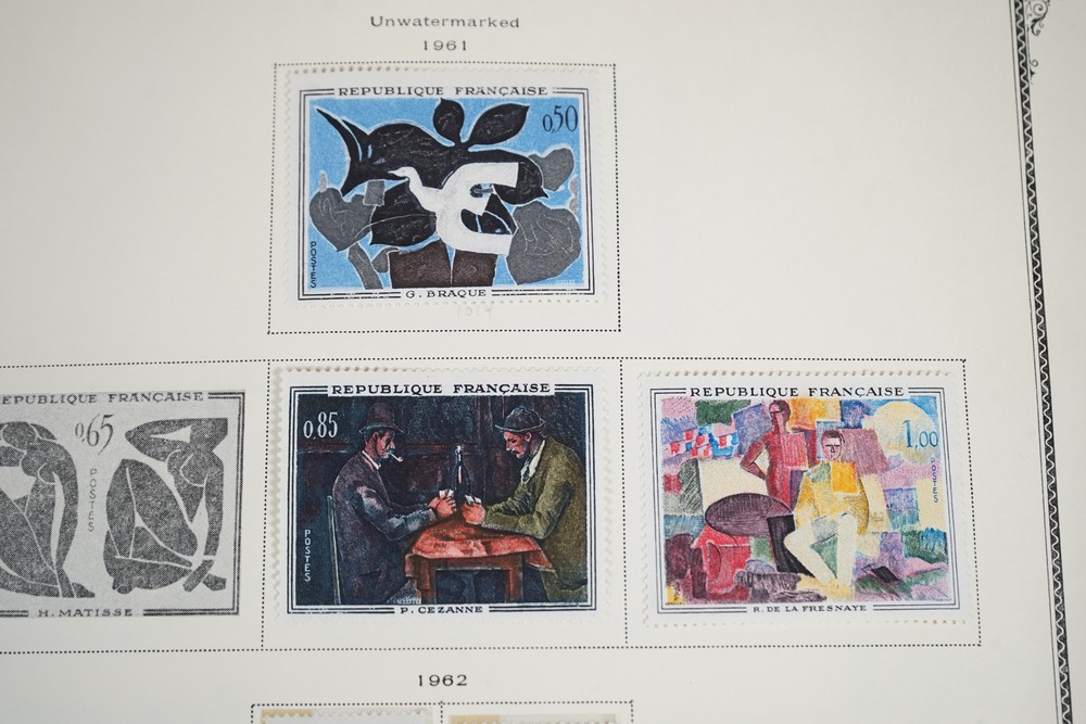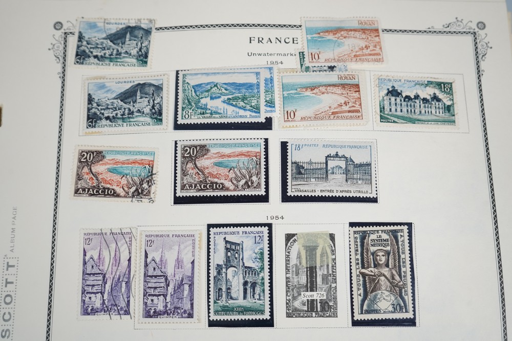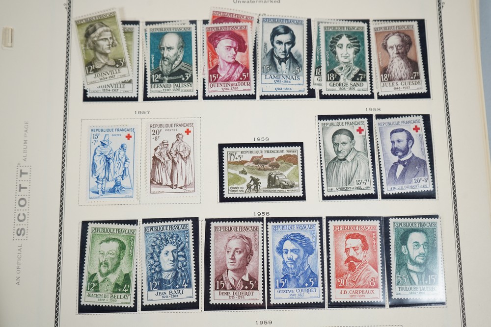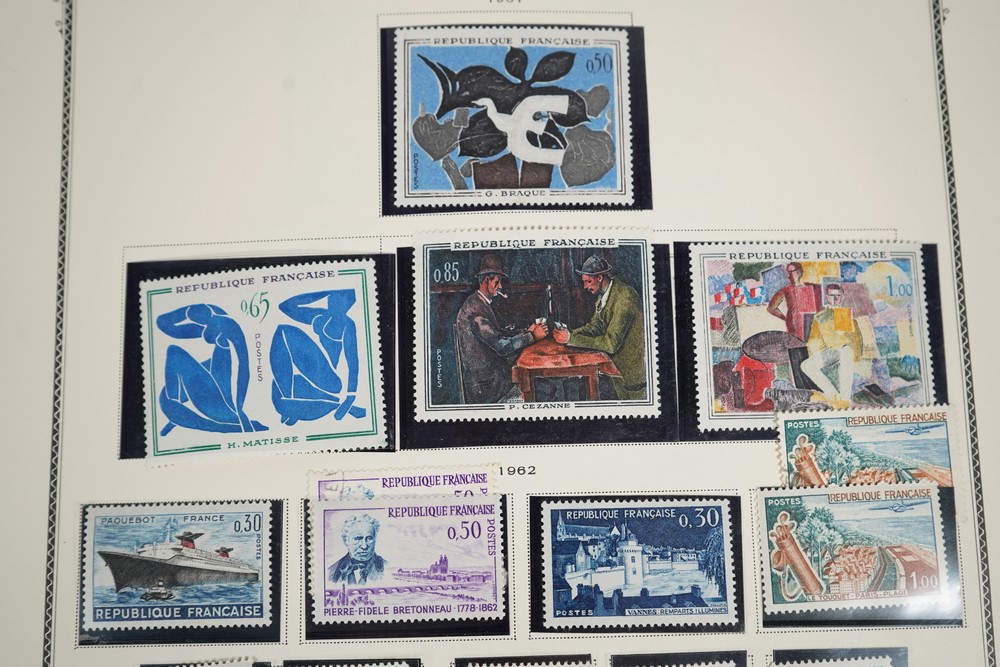 FRANCE 1850s-1970 COLLECTION OF 2,100+ STAMPS MINT & USED STORED ON ALBUM PAGES. INCLUDES SCOTT BINDER BUT THERE ARE NO PINS OR PEGS TO ATTACH PAGES TO.