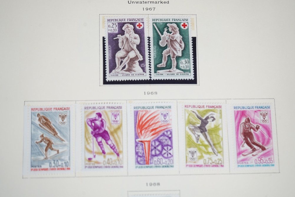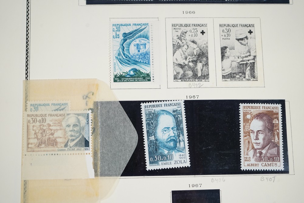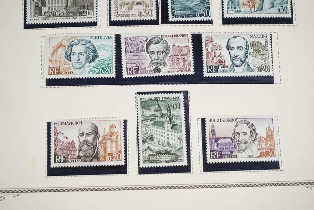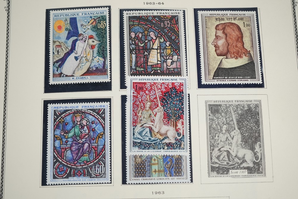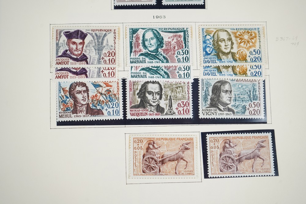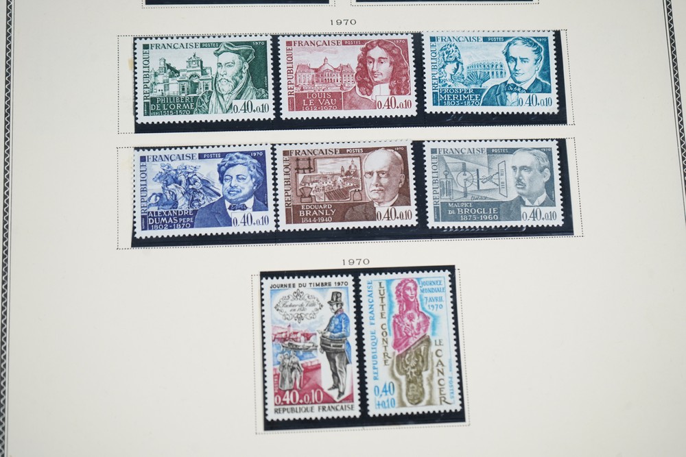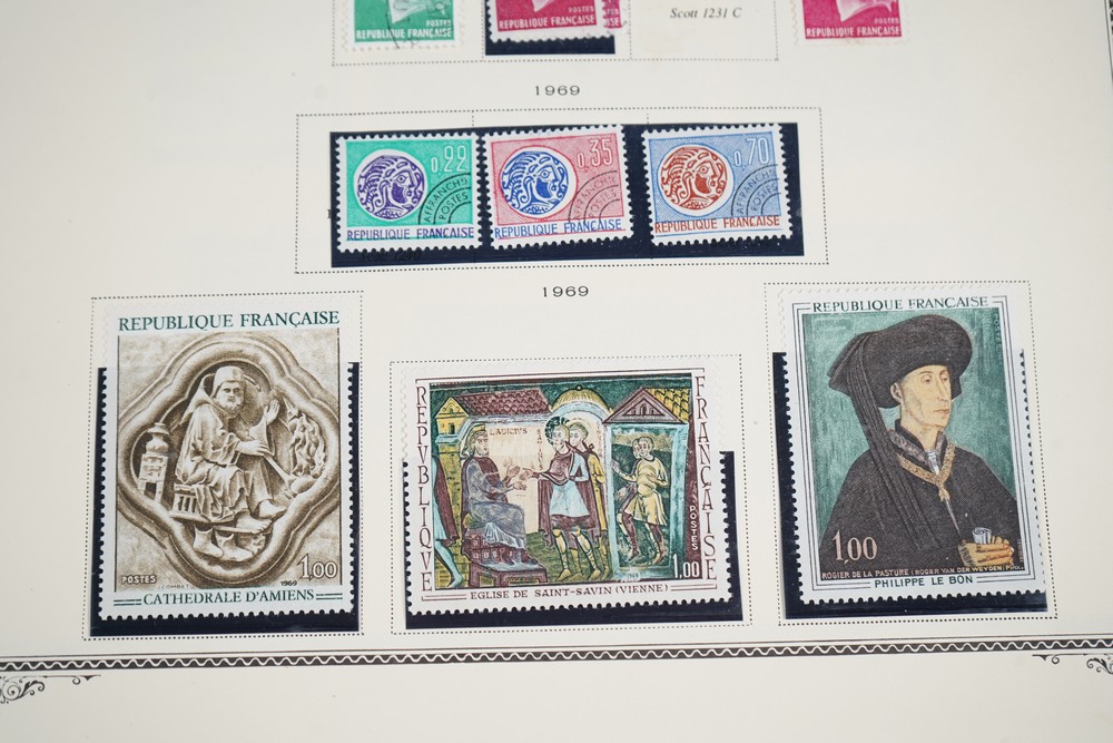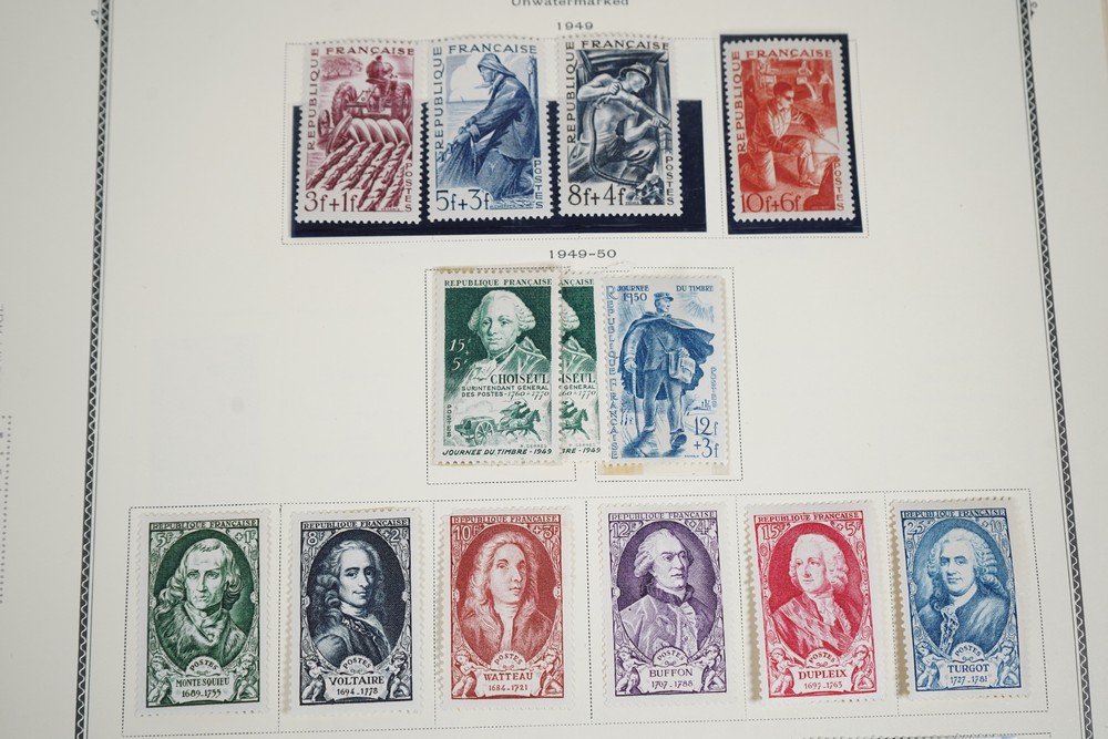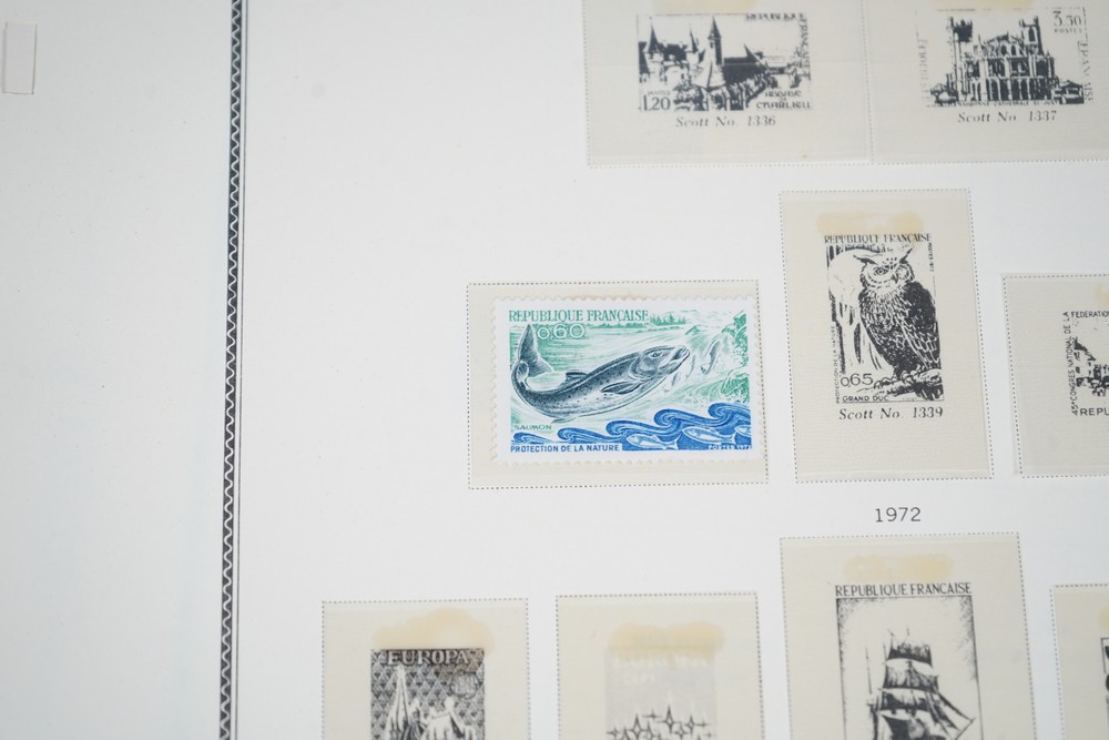 FRANCE 1850s-1970 COLLECTION OF 2,100+ STAMPS MINT & USED STORED ON ALBUM PAGES. INCLUDES SCOTT BINDER BUT THERE ARE NO PINS OR PEGS TO ATTACH PAGES TO.