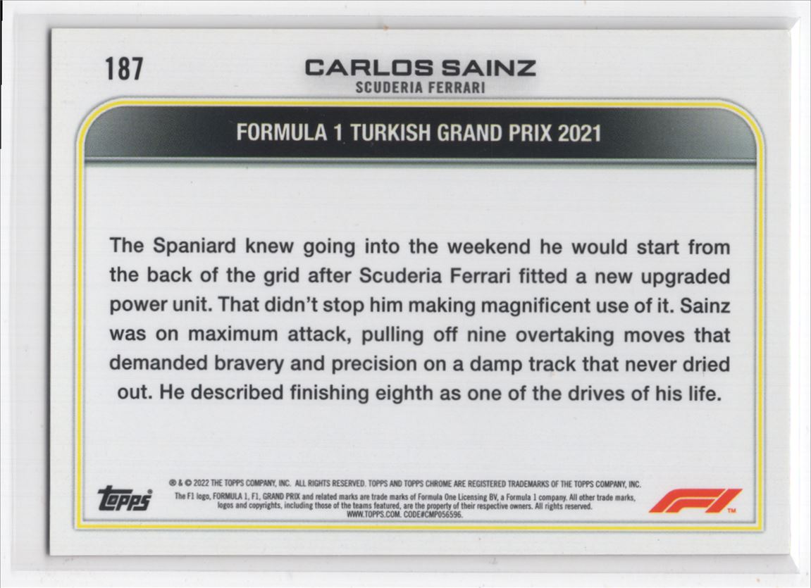 #187 2022 Topps Chrome F1 Carlos Sainz Scuderia Ferrari
