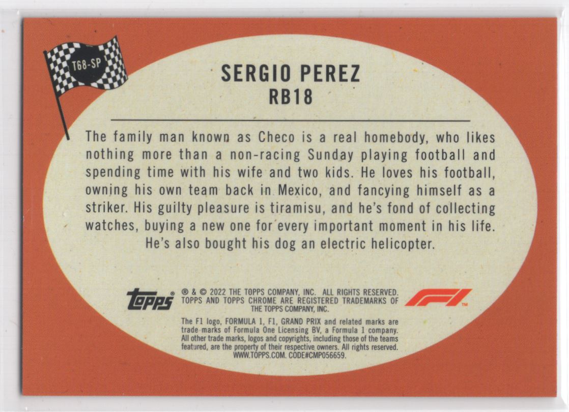 #T68-SP 2022 Topps Chrome F1 1968 Hot Rods Sergio Perez Oracle Red Bull Racing