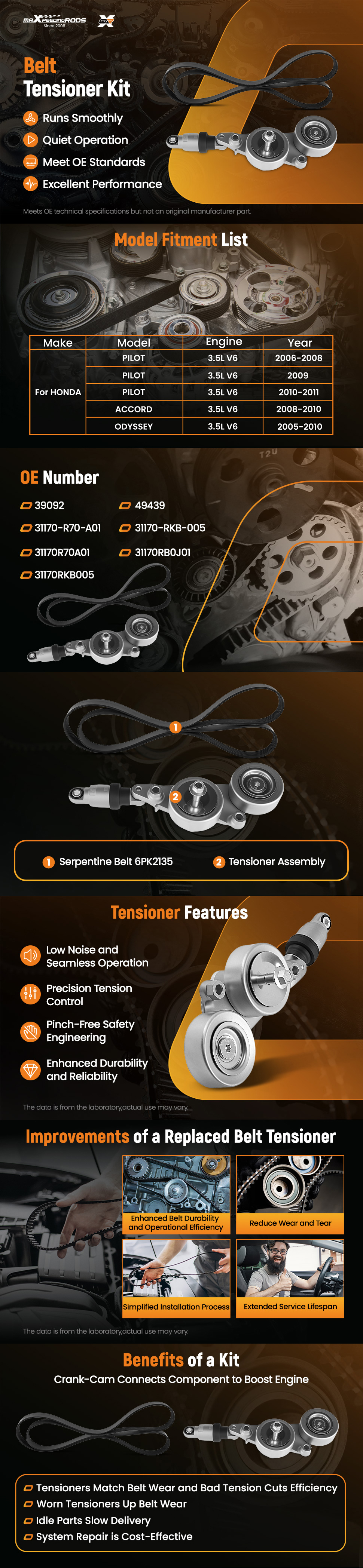 for Honda Odyssey 3.5L 3471CC V6 GAS SOHC Naturally Aspirated - Main Drive; Engine Code J35A7; i-VTEC Engine 2005-2010