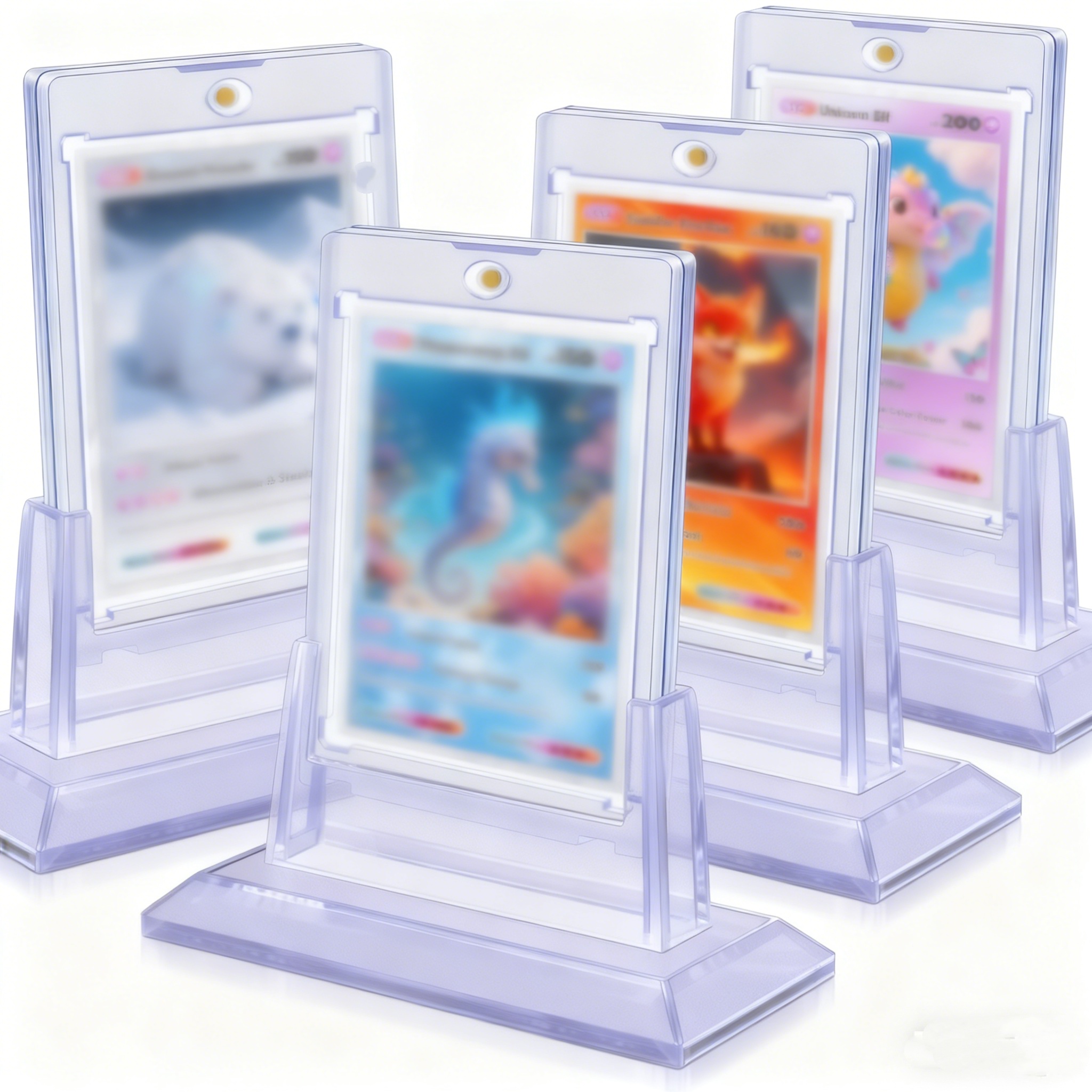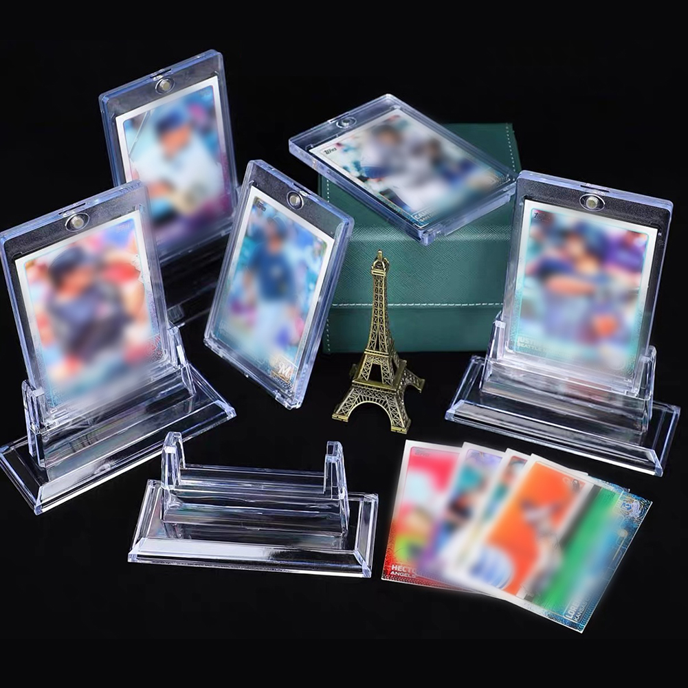 Card Holder with Stand Combo: Package includes 2-30 magnetic card holders and 2-30 acrylic card stands, paired together for secure storage and better display for trading cards(cards Not Included).