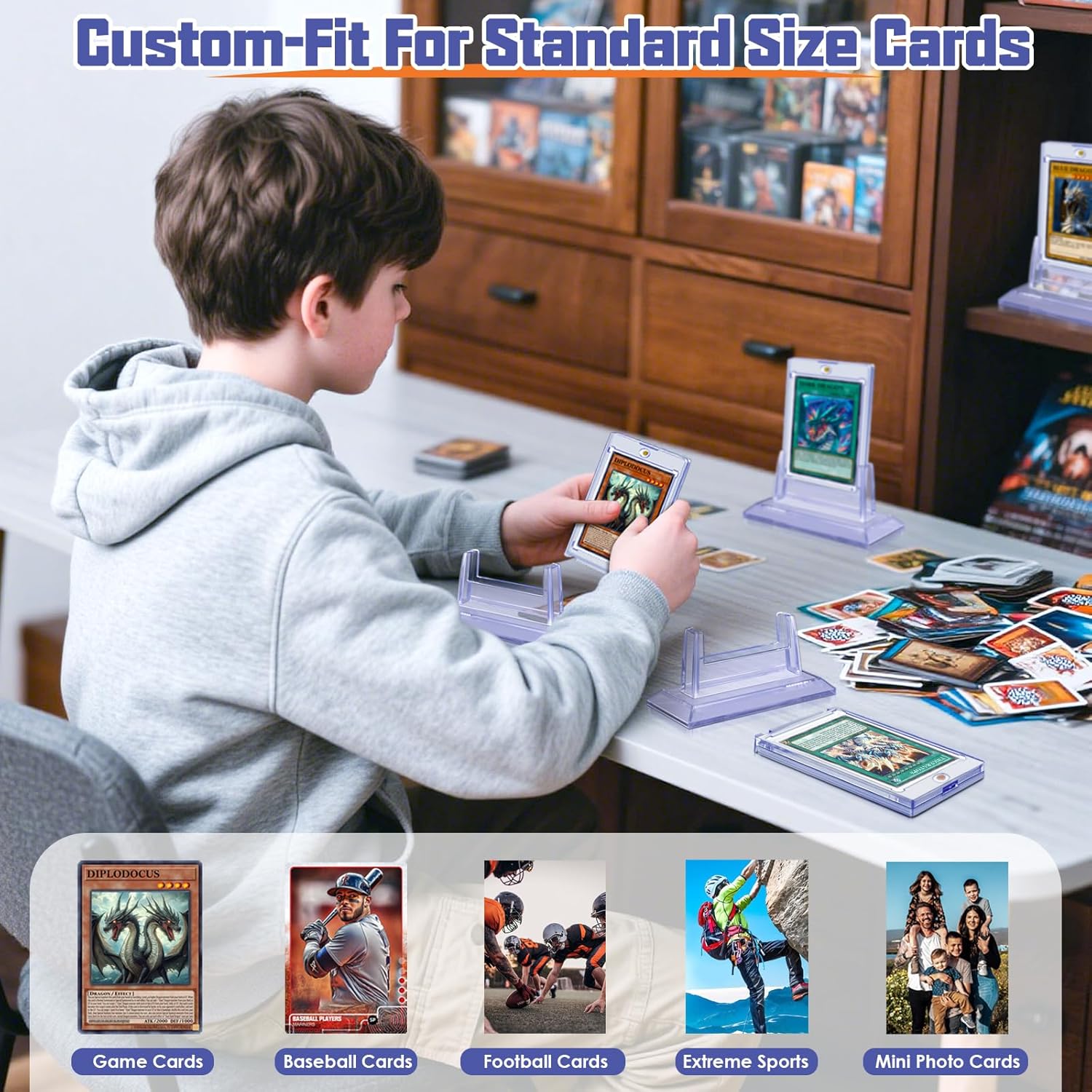 Great Compatibility: The magnetic card holder is widely compatible with standard-sized cards, trading cards, baseball cards, football cards, hockey cards, game cards and more, making itself a reliable protector for your collectibles.