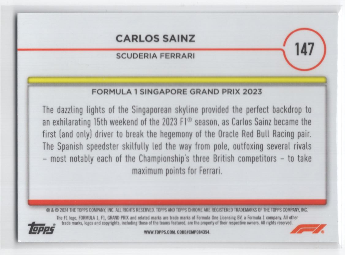 #147 2024 Topps Chrome Formula 1 BASE > Carlos Sainz Scuderia Ferrari
